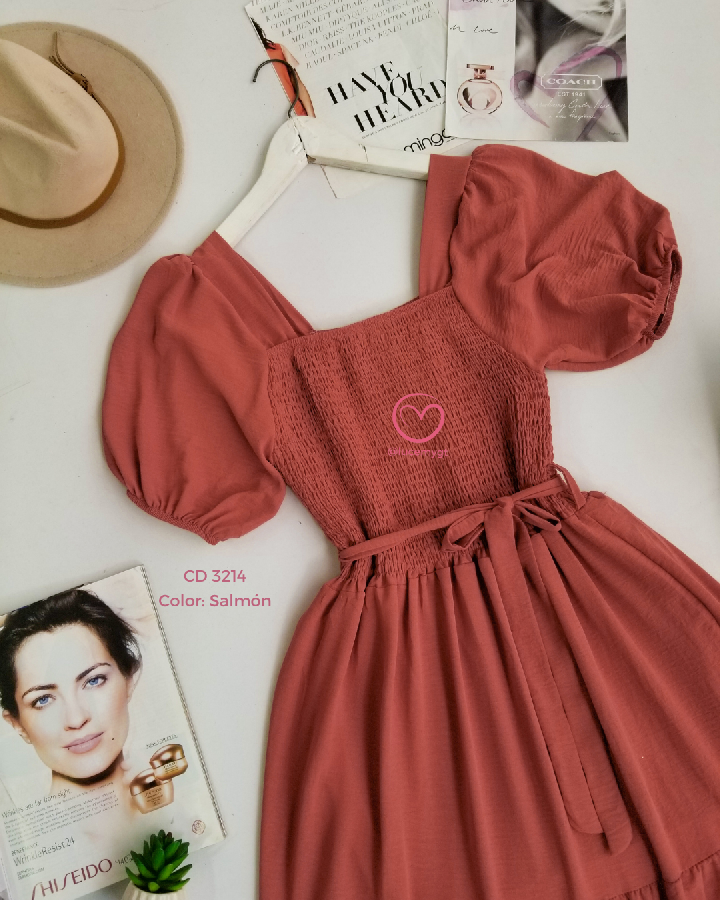 Descripción: escote cuadrado, manga corta, fruncido en la parte de arriba, de tres tiempos, incluye agujeta.