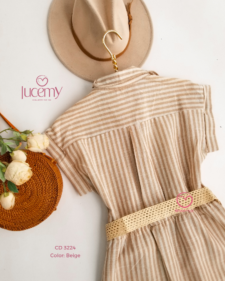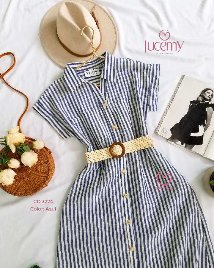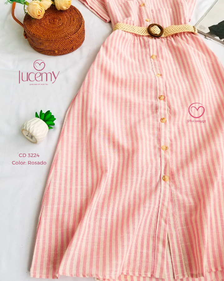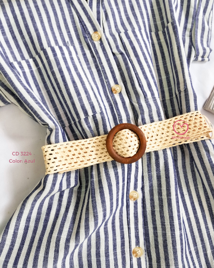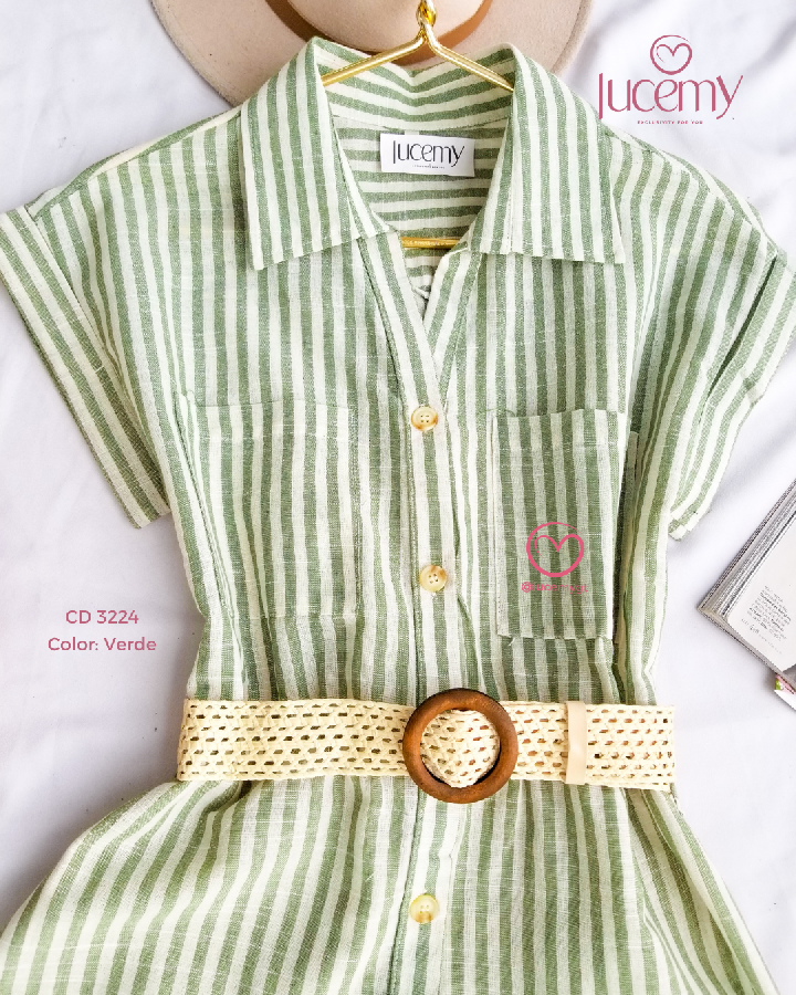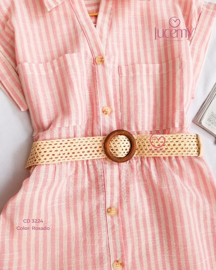 Descripción: Cuello camisero, manga corta, botones en la parte enfrente, incluye su cincho