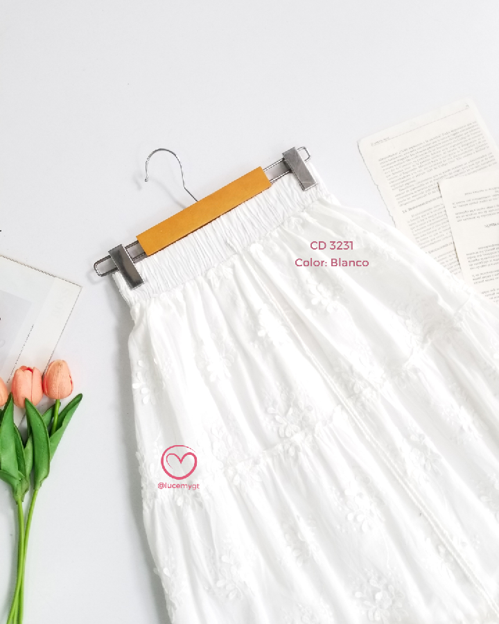 Descripción: Falda calada, con elástico en la cintura, forro en la parte de abajo