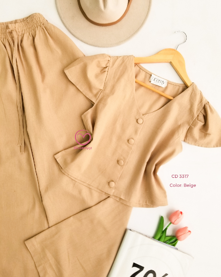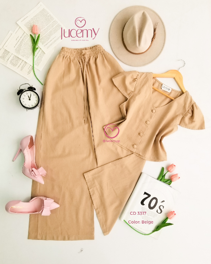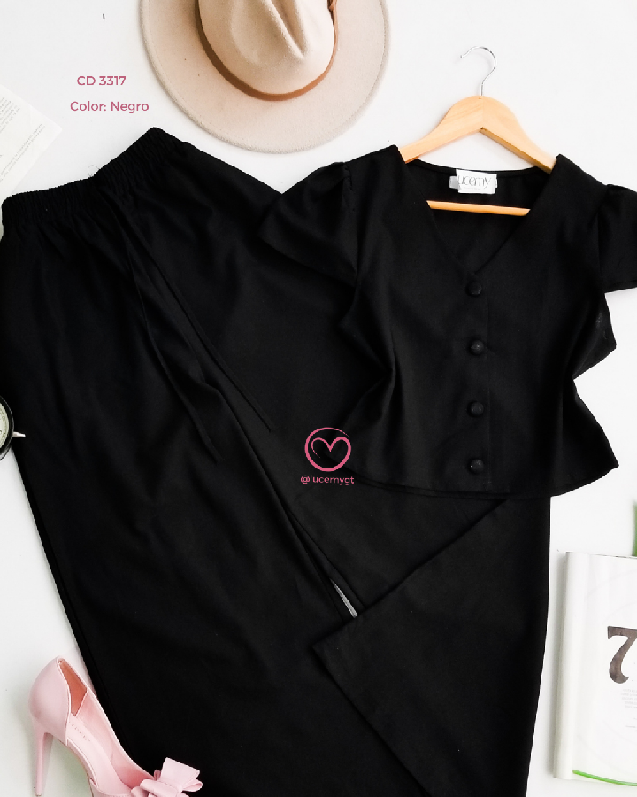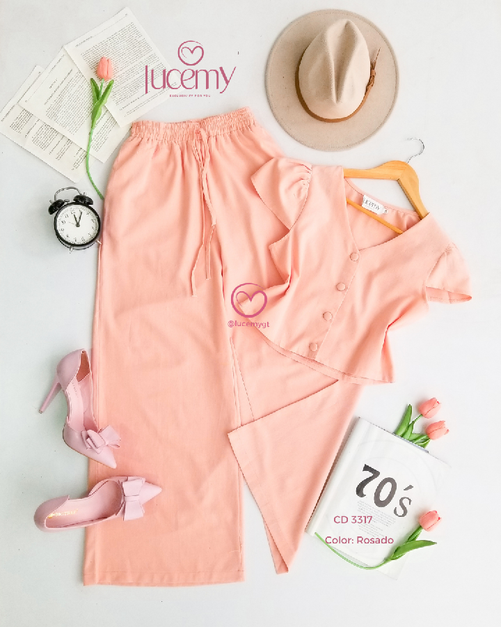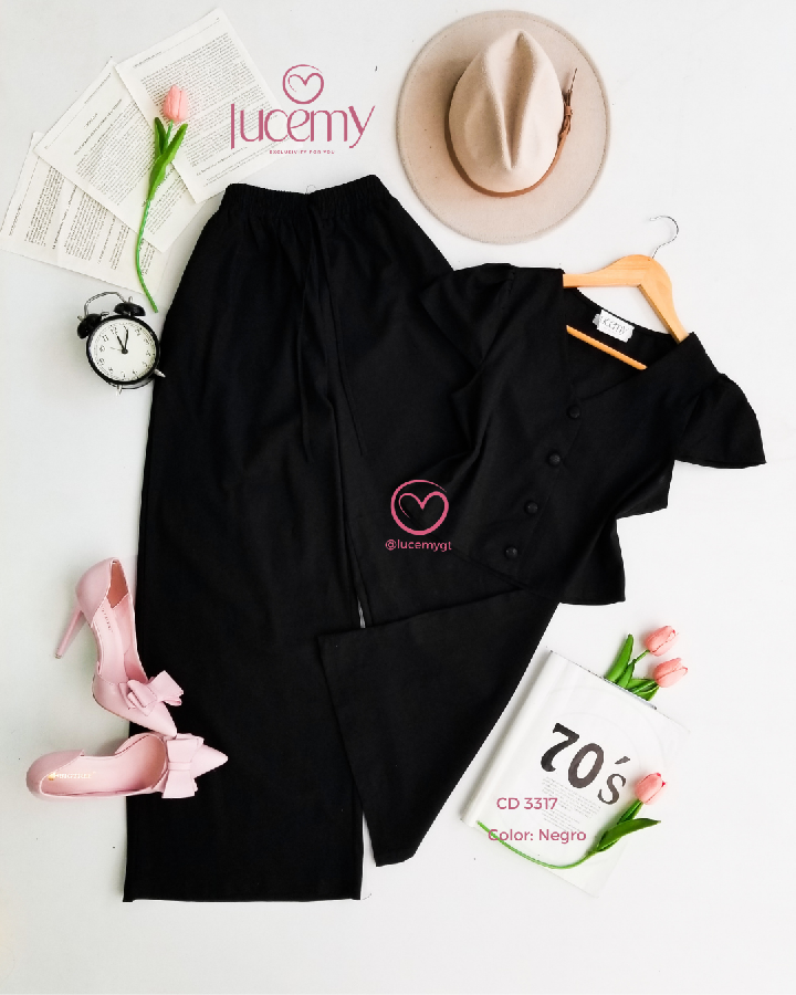 Descripción: Conjunto femenino que combina elegancia y comodidad, ideal para un look fresco y sofisticado.