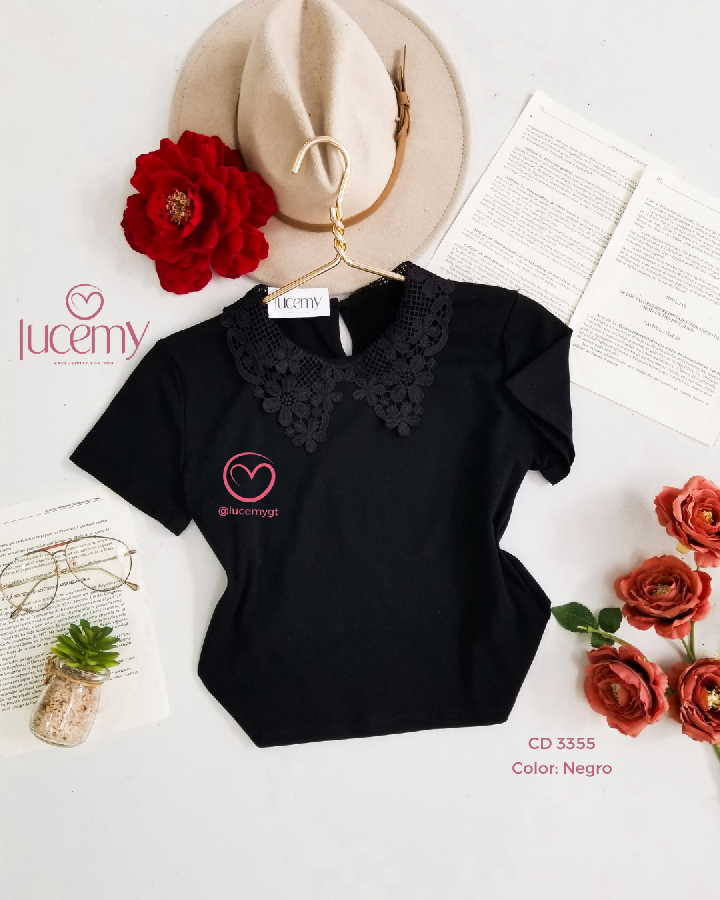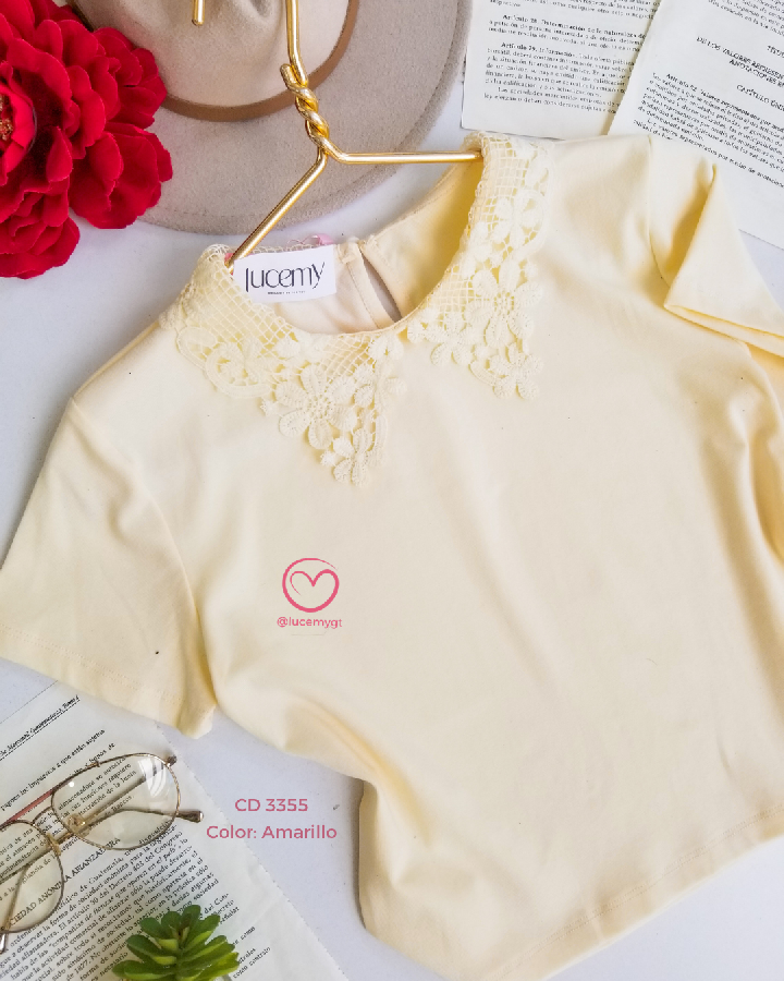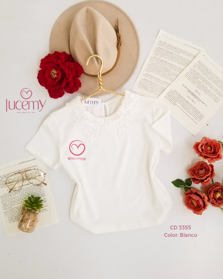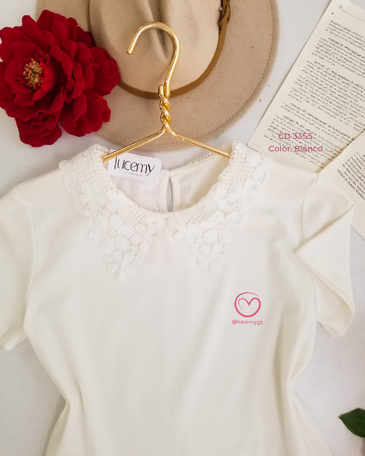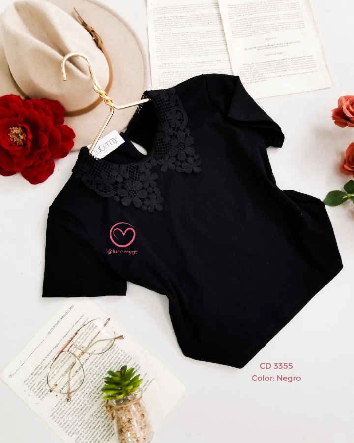 Descripción: Cuello redondo: clásico y cómodo Detalle de encaje/bordado en el cuello: le da un toque delicado y femenino Manga corta: ideal para un look fresco Corte recto: sencilla y fácil de combinar Es una blusa básica con un toque elegante, perfecta para looks casuales o semi formales Promoción 2xQ139.00