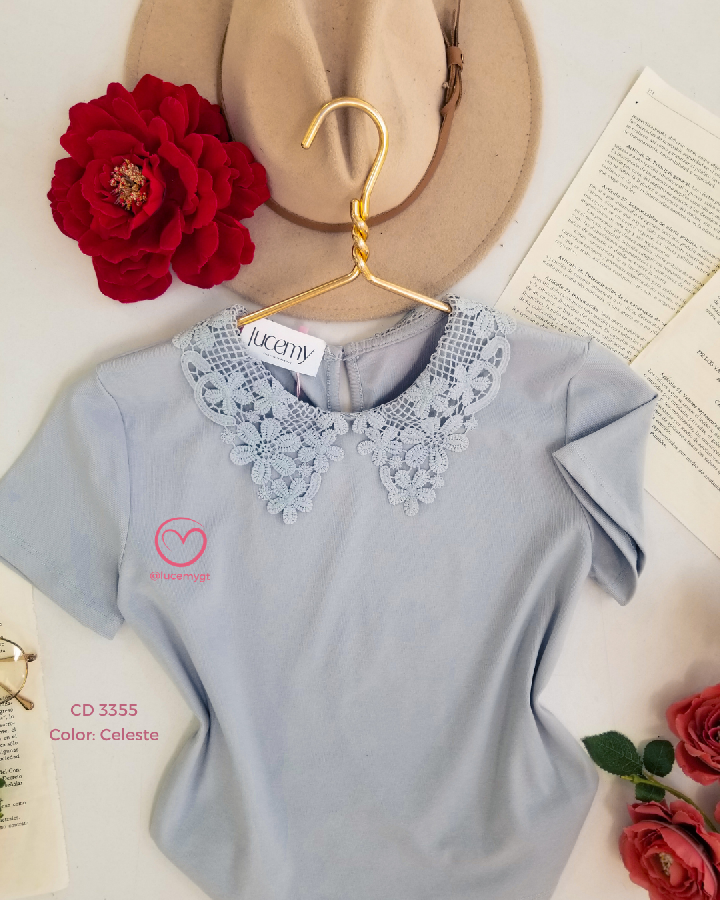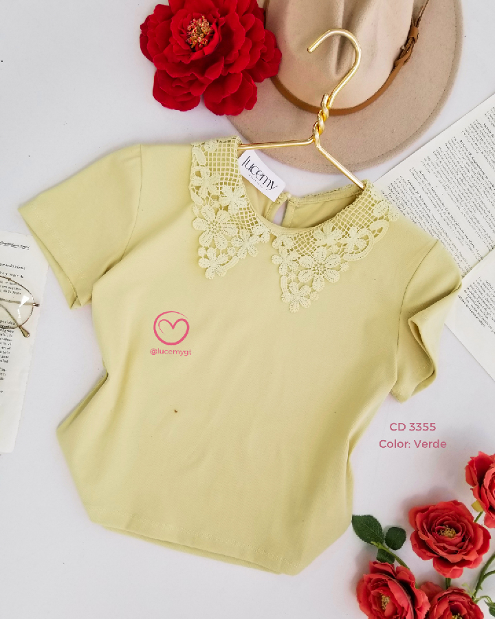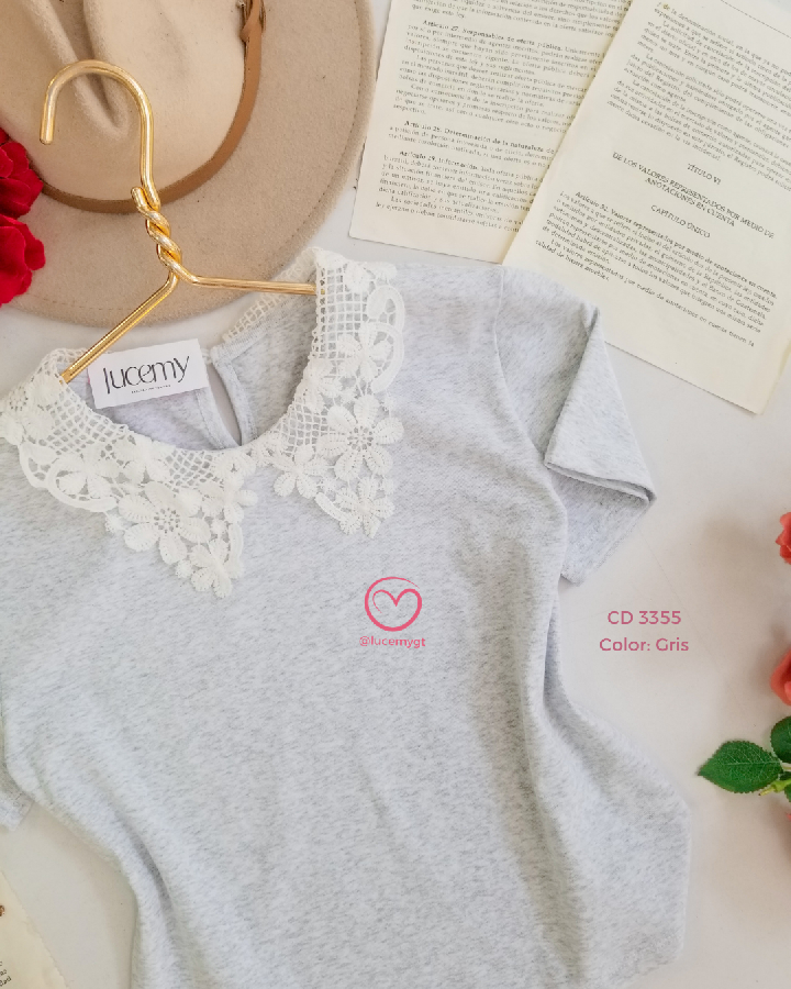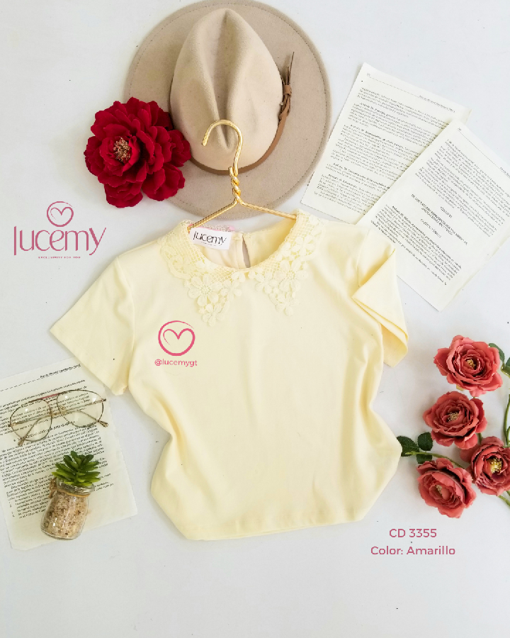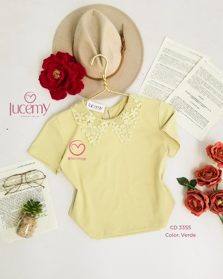 Descripción: Cuello redondo: clásico y cómodo Detalle de encaje/bordado en el cuello: le da un toque delicado y femenino Manga corta: ideal para un look fresco Corte recto: sencilla y fácil de combinar Es una blusa básica con un toque elegante, perfecta para looks casuales o semi formales Promoción 2xQ139.00
