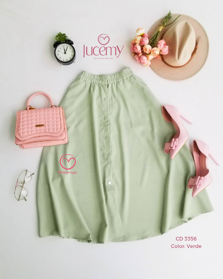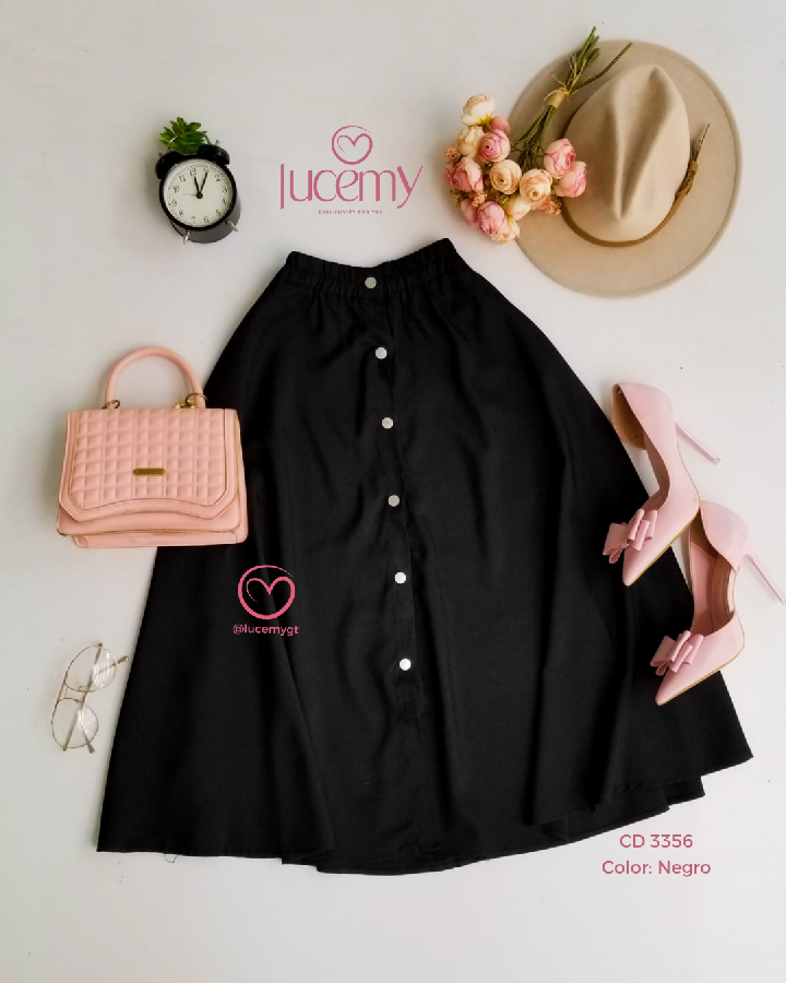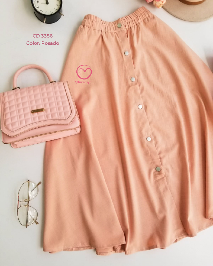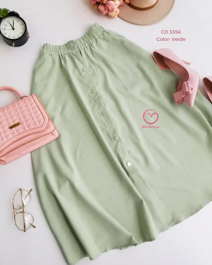 Descripción: Corte en A: se ajusta en la cintura y se abre suavemente hacia abajo Largo midi: cae debajo de la rodilla (aprox.) Botones al frente: estilo tipo “button front”, que le da un toque moderno y decorativo Tela fluida: ideal para un look femenino y elegante promoción 2xQ200.00