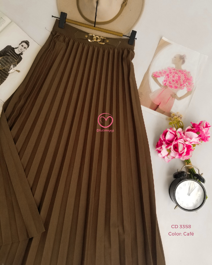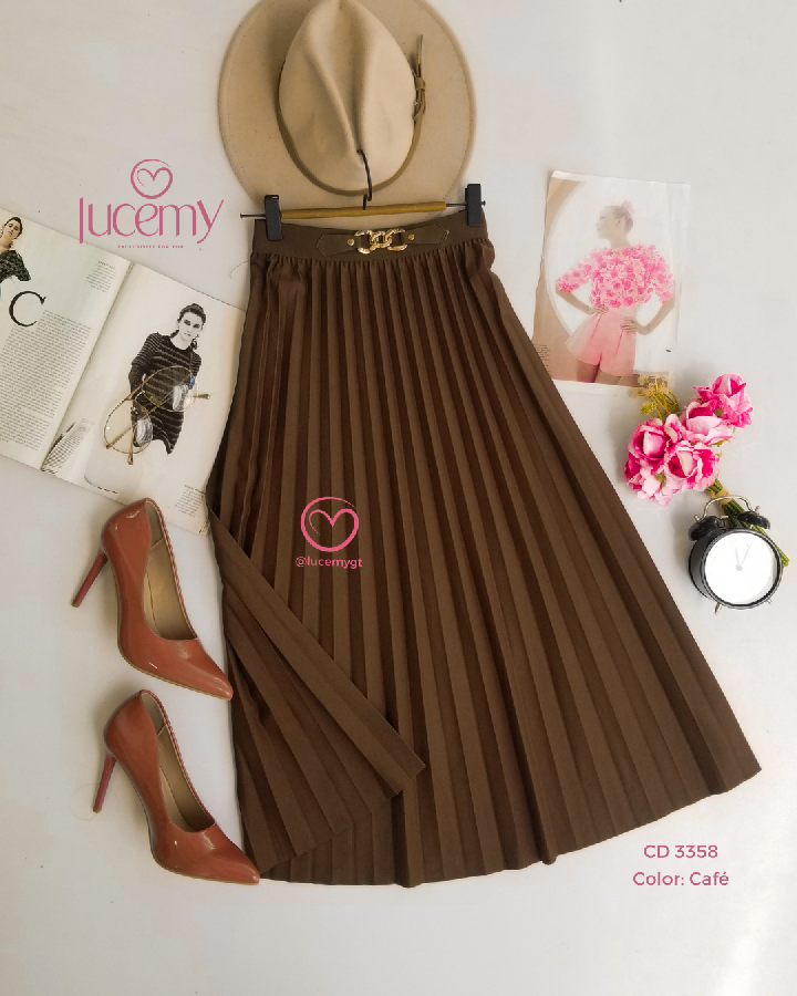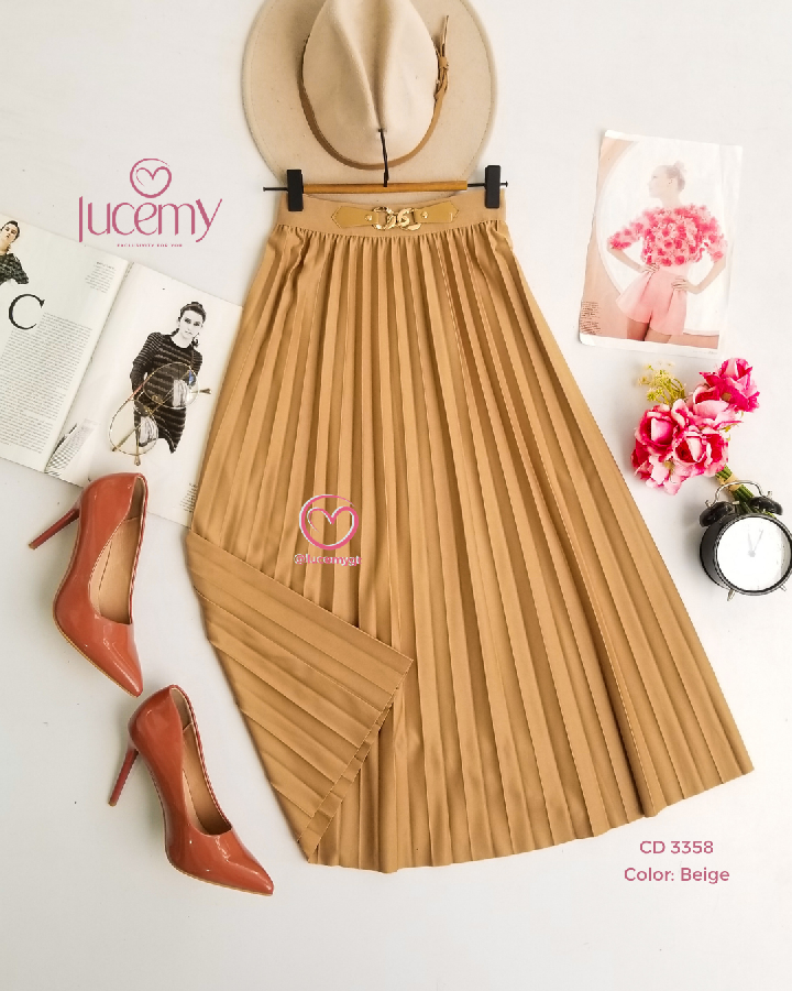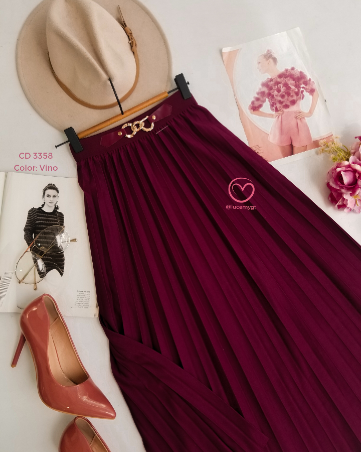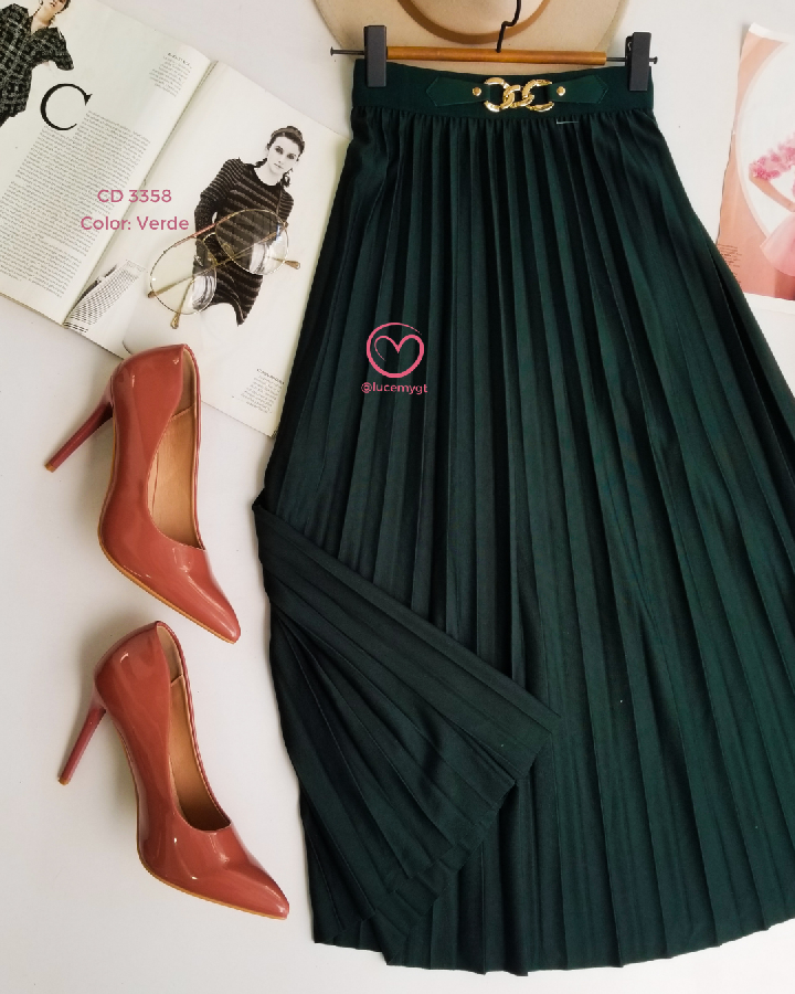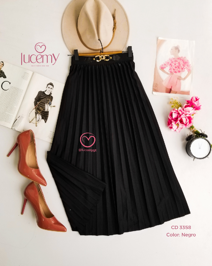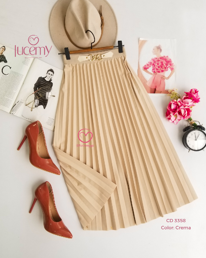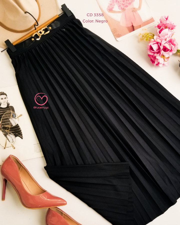 Descripción: Es una falda midi plisada Plisado: tiene pliegues marcados en toda la falda Largo midi: cae debajo de la rodilla Tiro alto: ajusta en la cintura y estiliza la figura Caída fluida: da movimiento y un look elegante Promoción 2xQ185.00