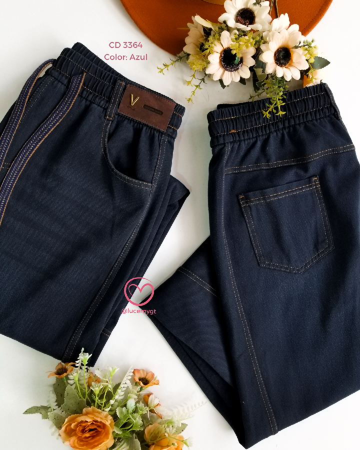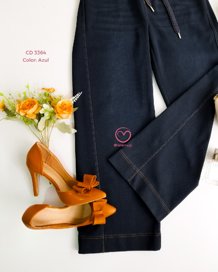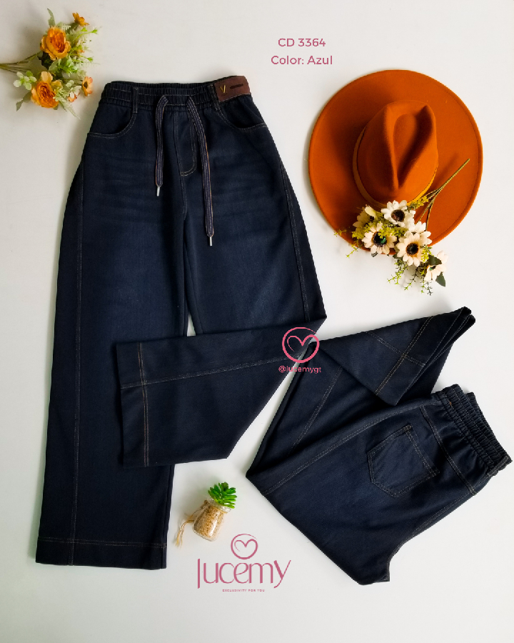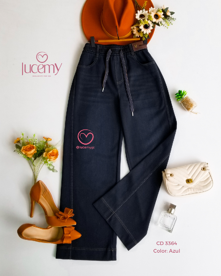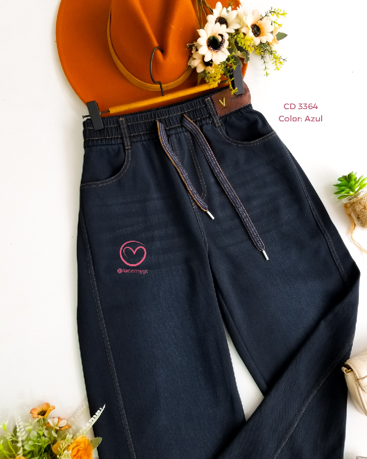 Descripción: jeans wide leg de cintura elástica pantalón de mezclilla corte amplio y cómodo Pierna amplia y recta (desde la cadera hacia abajo) Pretina elástica con cordón Estilo cómodo tipo relajado/athleisure en denim Promoción 2xQ285.00