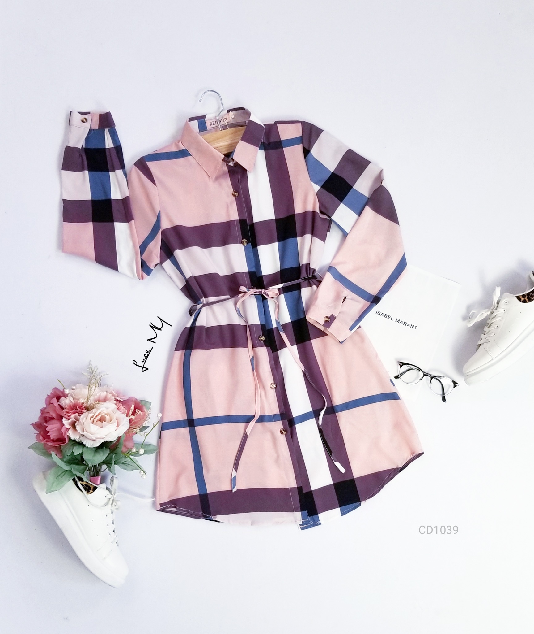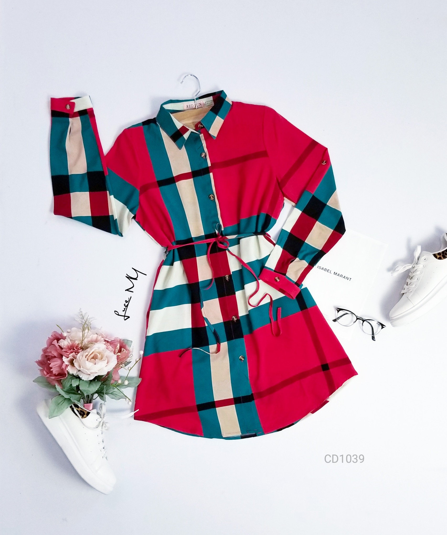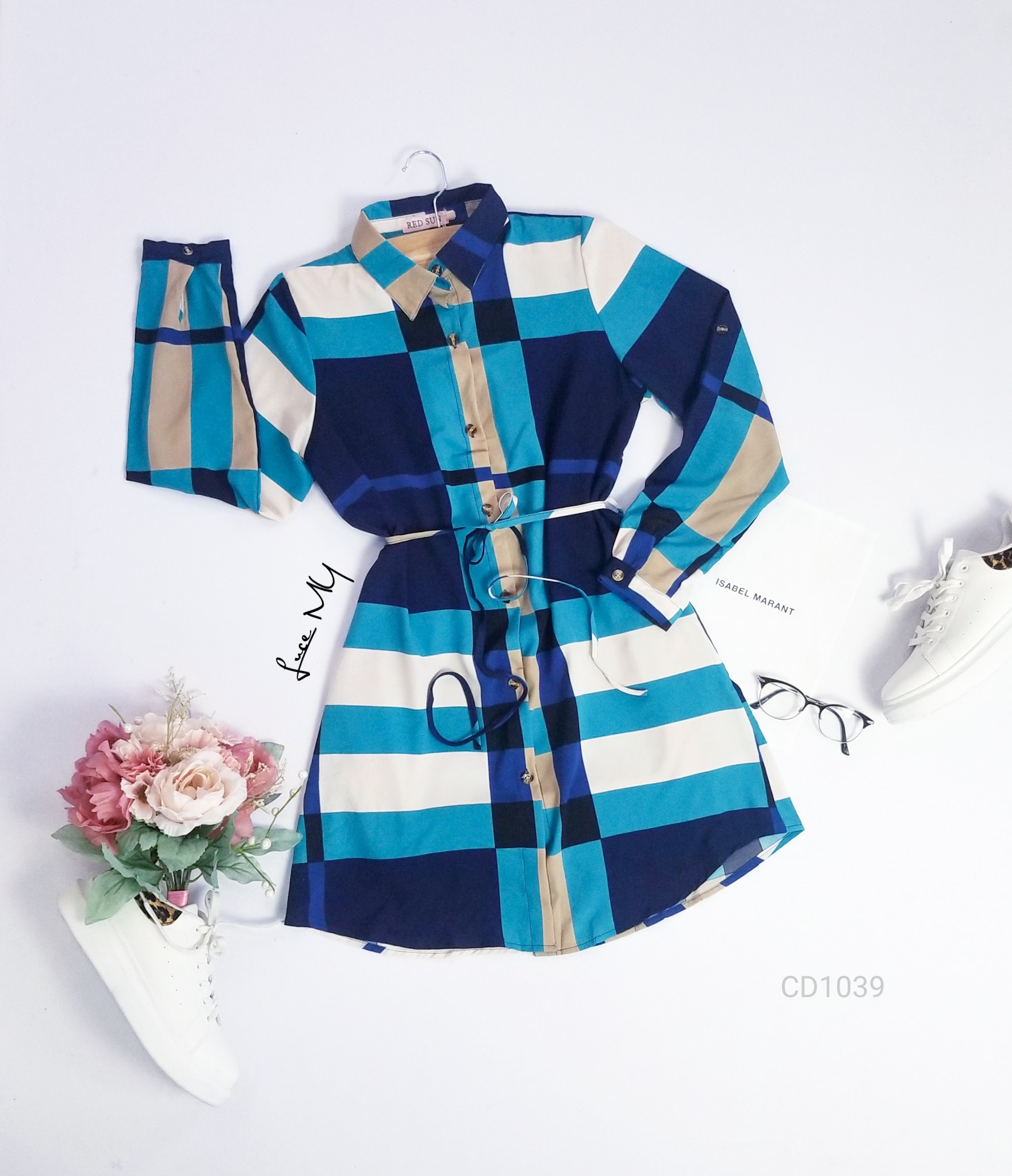 Descripción: Vestido Camisero a cuadros, botones en la parte de enfrente, tiene agujeta ajustable en la cintura