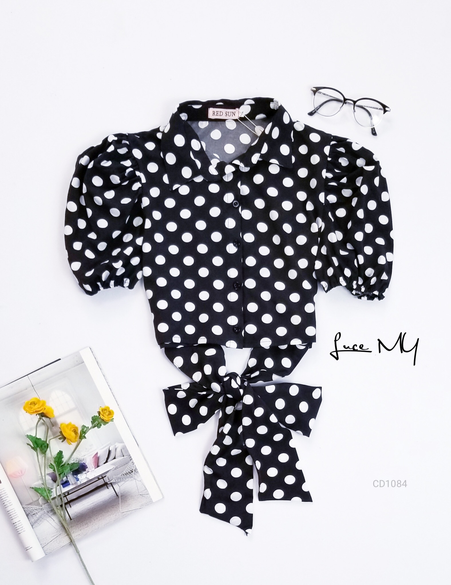 Descripción: Blusa de Lunares, cuello tipo camisa, botones en la parte de enfrente, manga corta de puff. Promoción si llevas dos blusas a solo por Q175.00