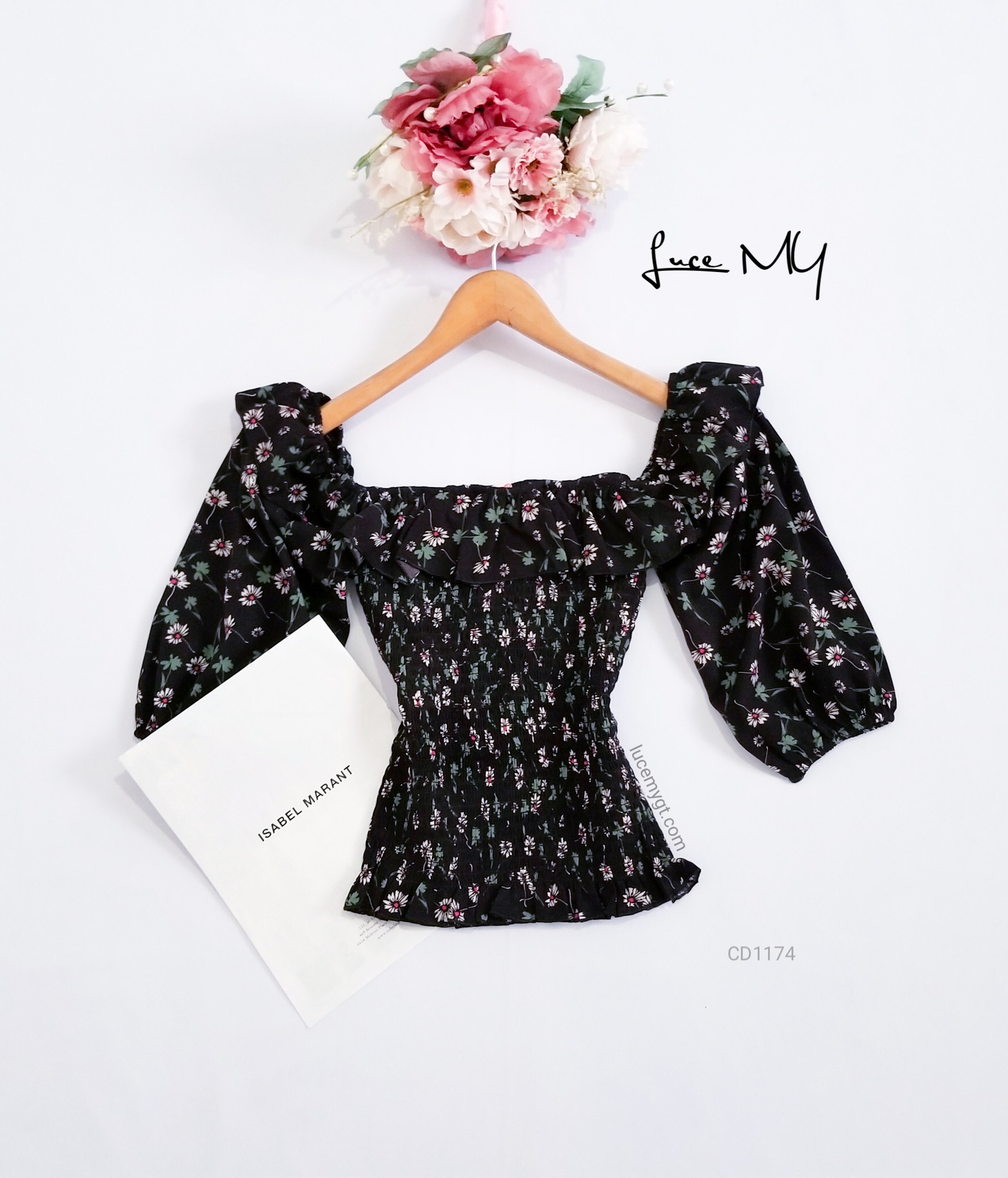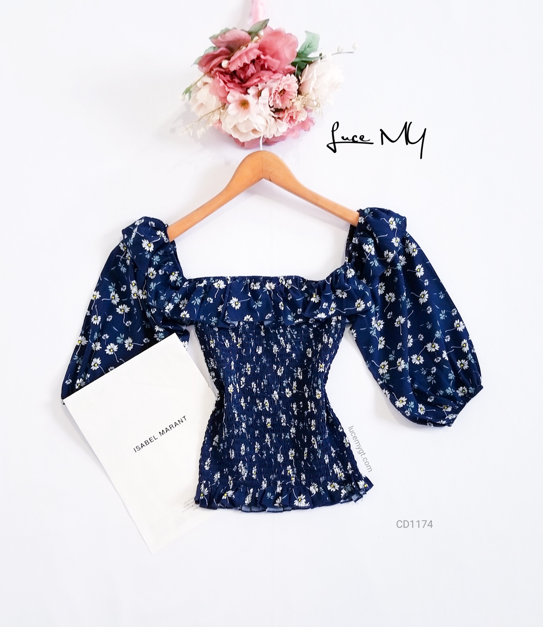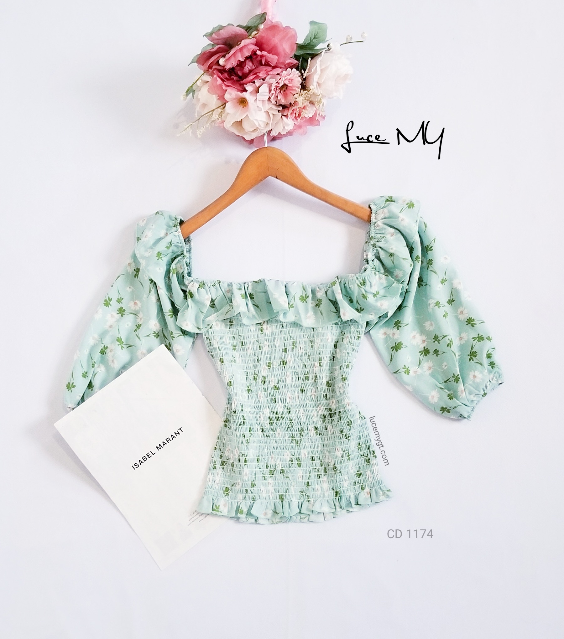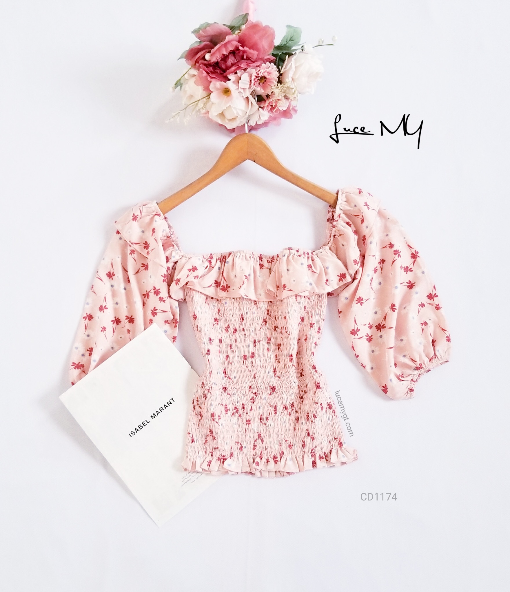 Descripción: Blusa Floral fruncida, escote cuadrado, mangas de farol, vuelito en la parte de arriba