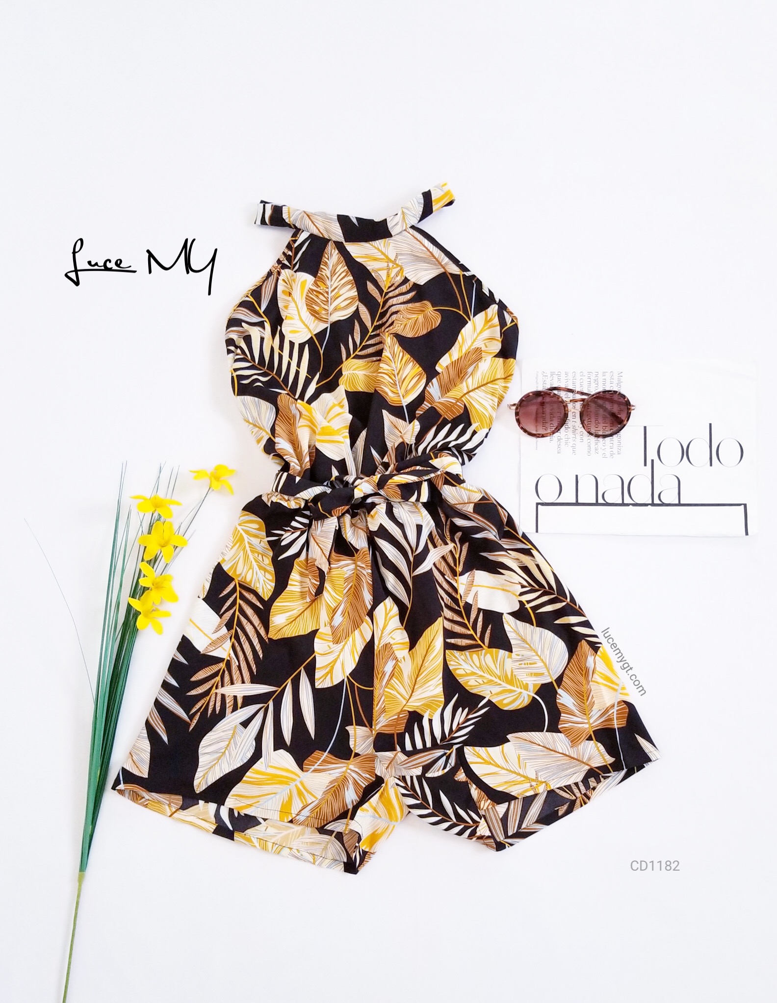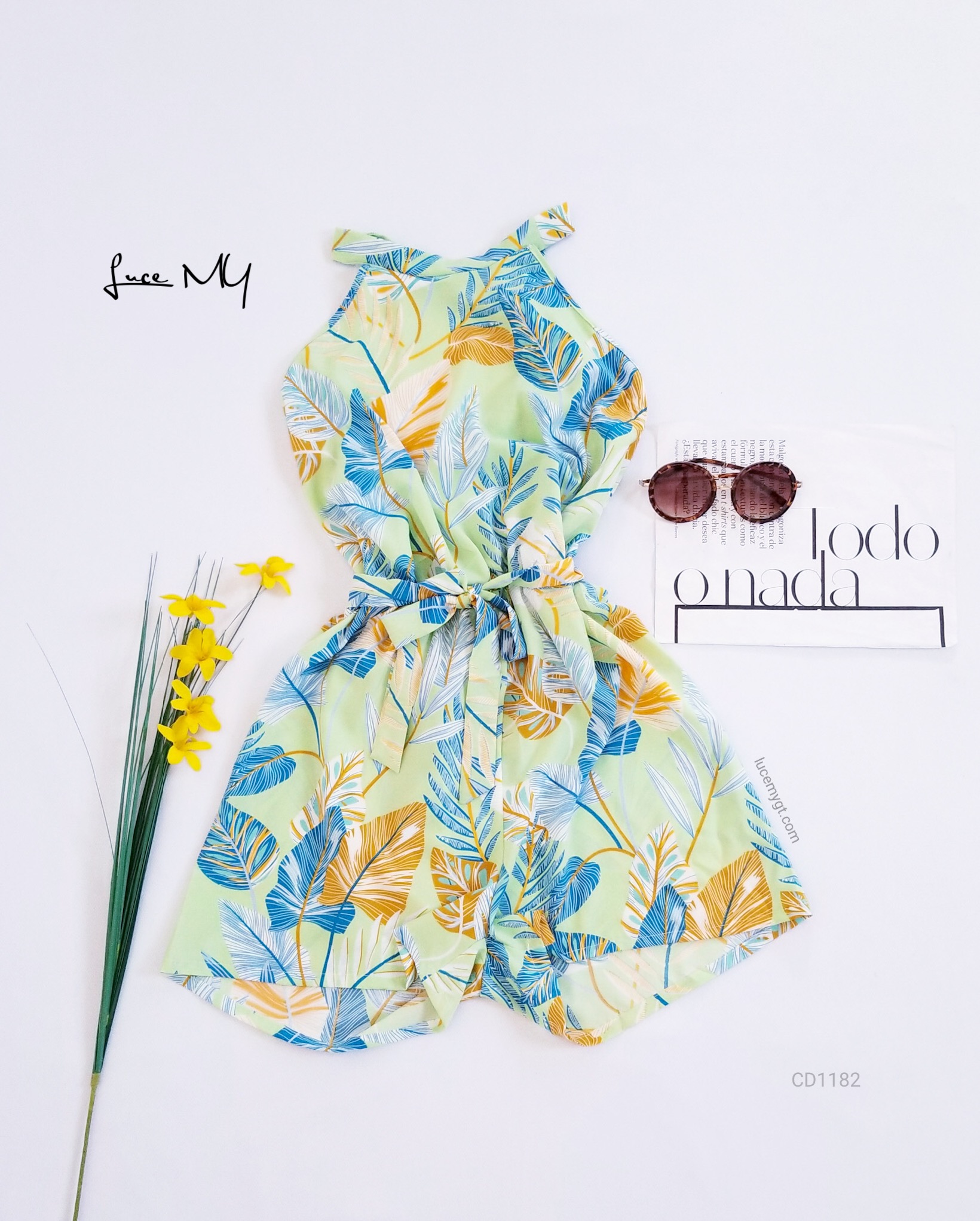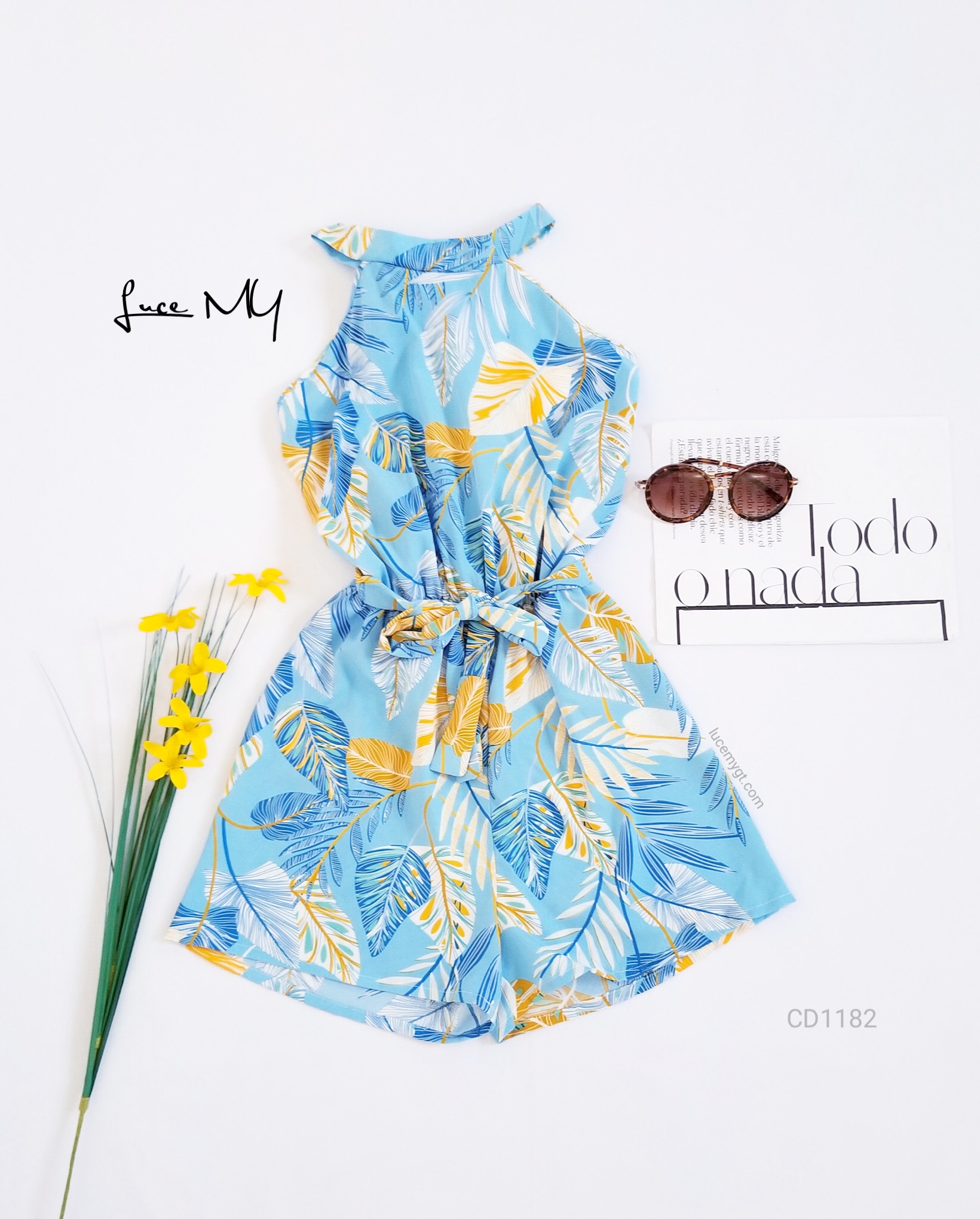 Descripción: Romper Halter, cuello con agujeta en la parte de atrás, elástico en la parte de atrás y en la cintura