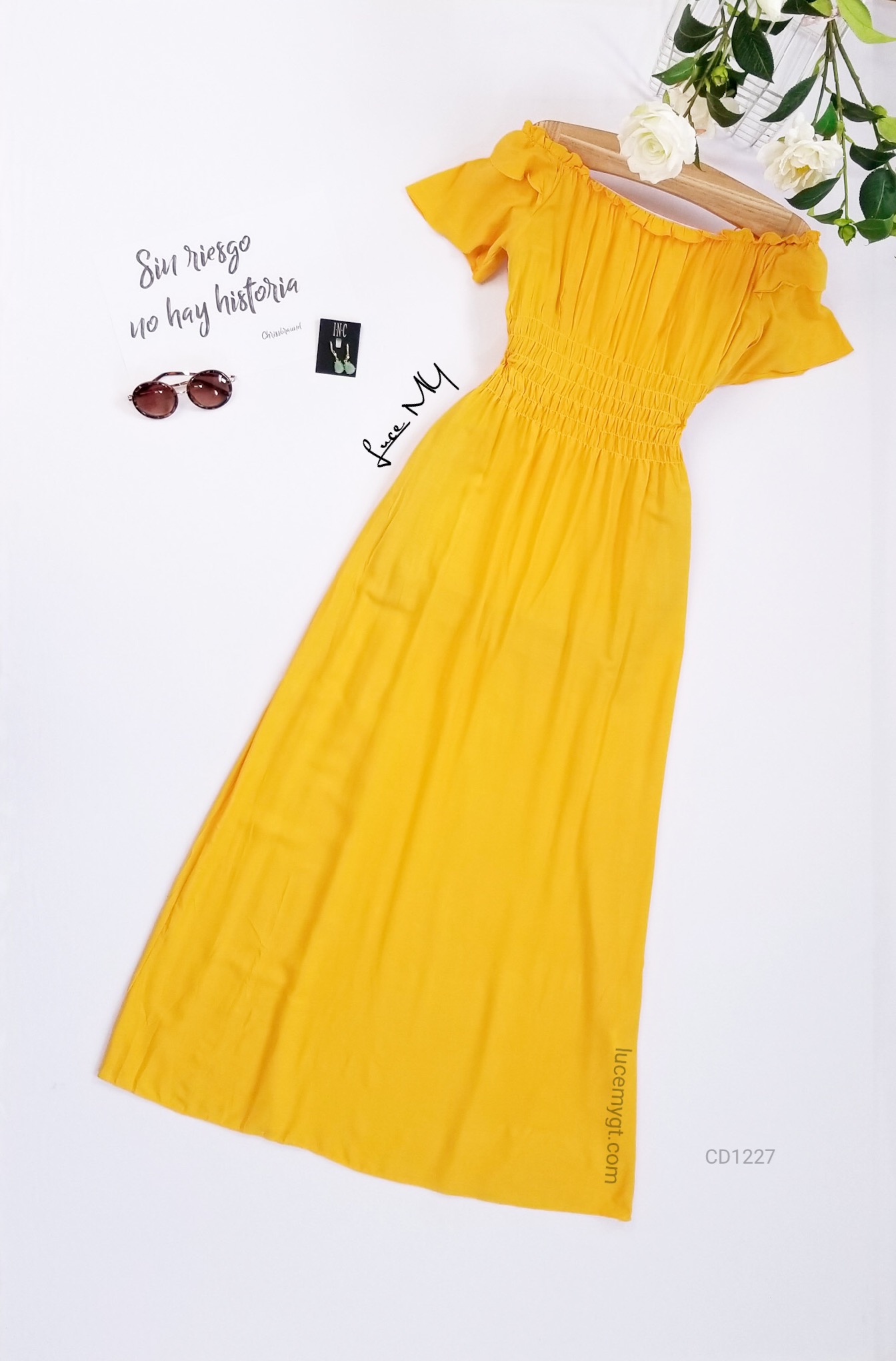 Descripción: Off Shoulder Maxi, manga corta, fruncido en la parte de arriba, material 80% algodón y 20% poliéster. Promoción Si llevas dos vestidos a solo por Q250.00
