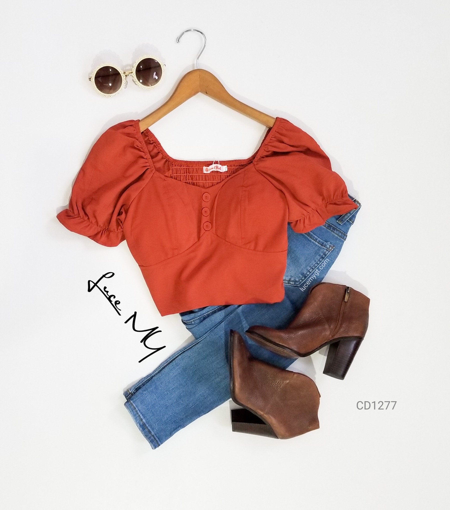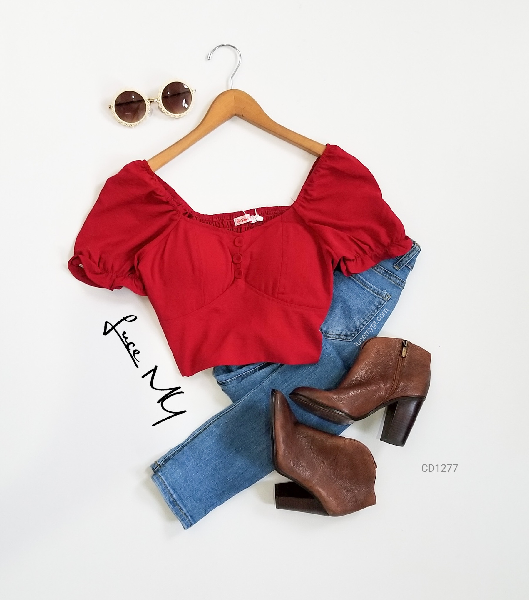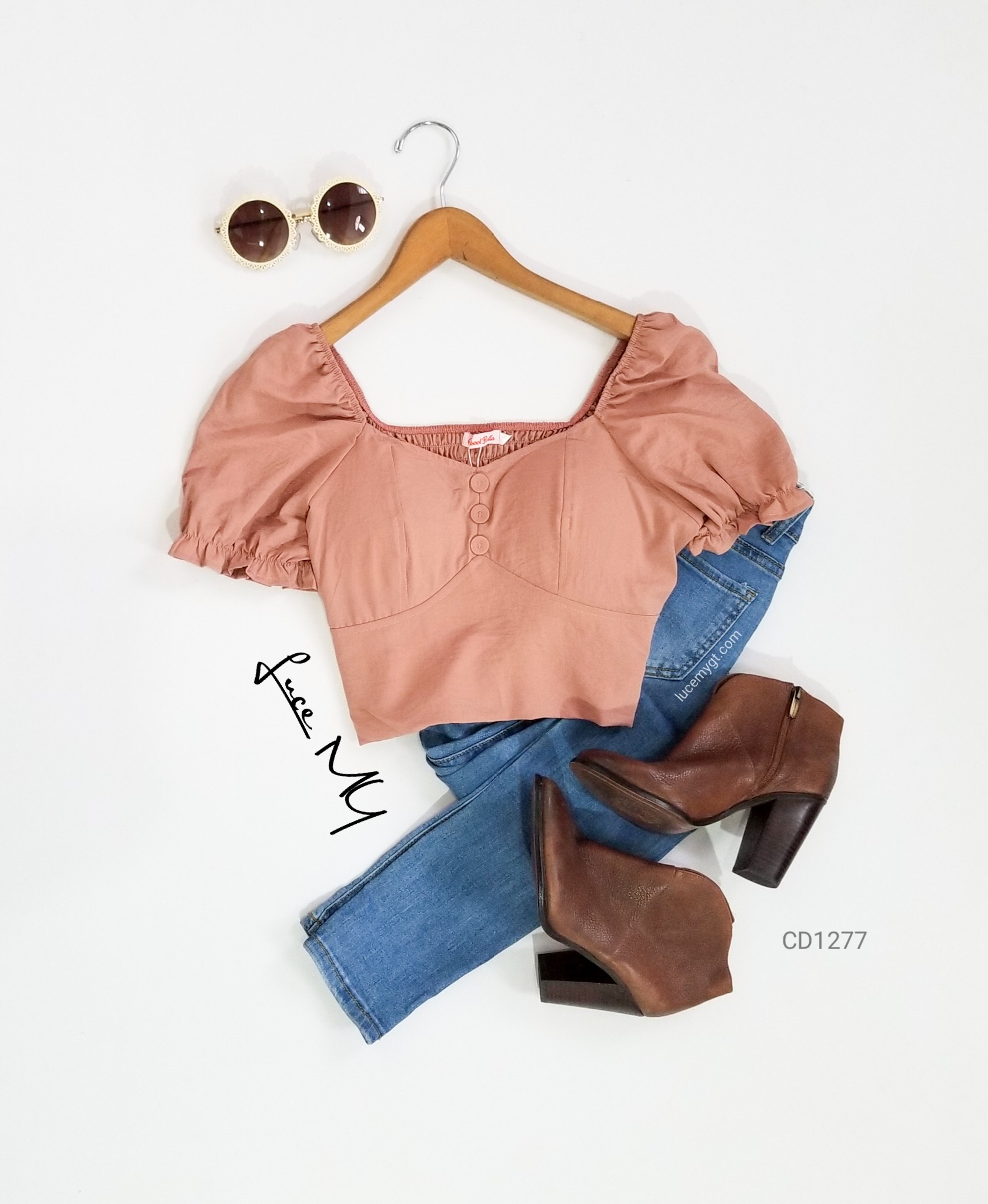 Descripción: Blusa Top Crop, escote corazón, botones forrados de la misma tela en la parte de enfrente, manga corta, y en la parte de atrás es fruncida. Promoción si llevas dos blusas a solo por Q155.00