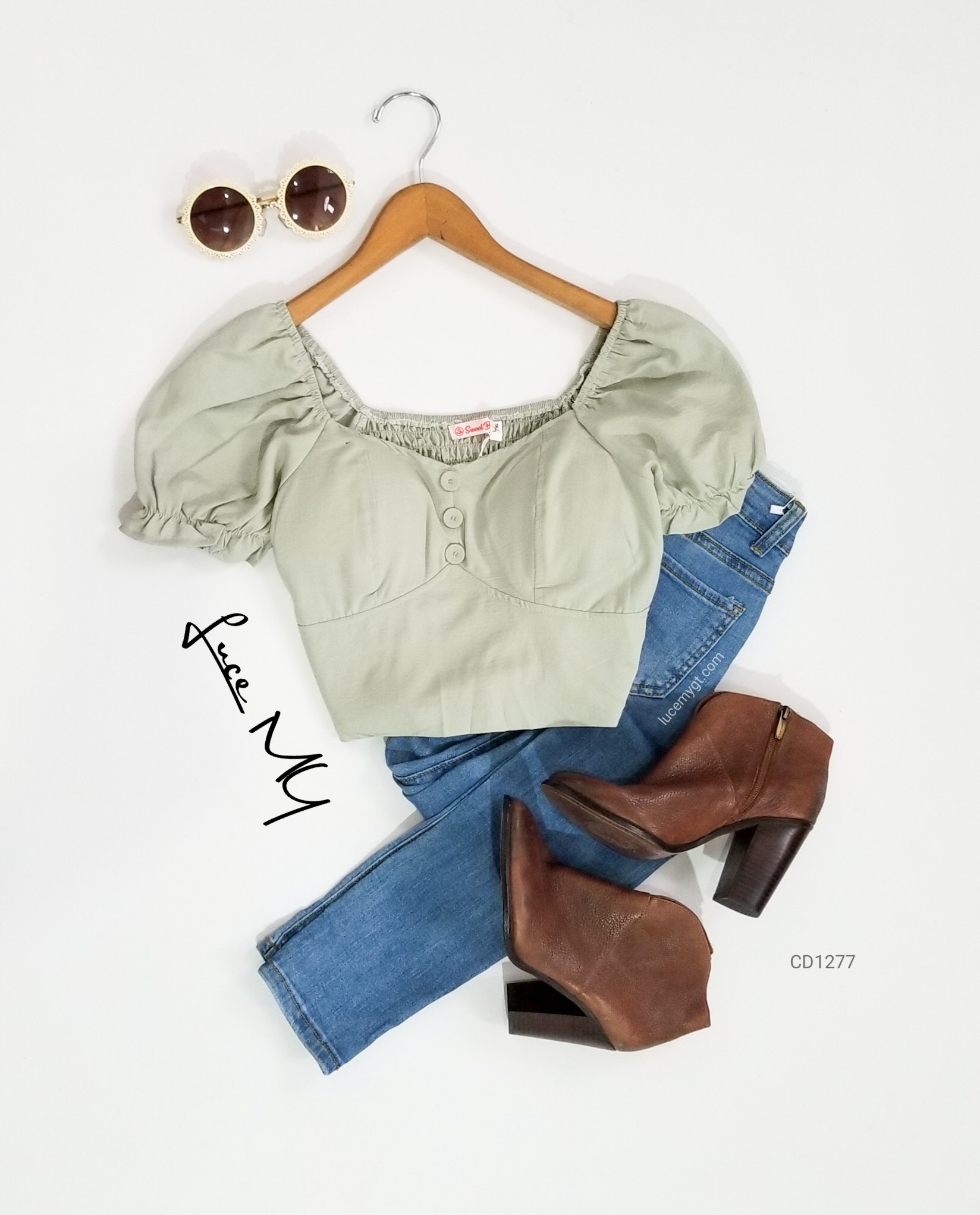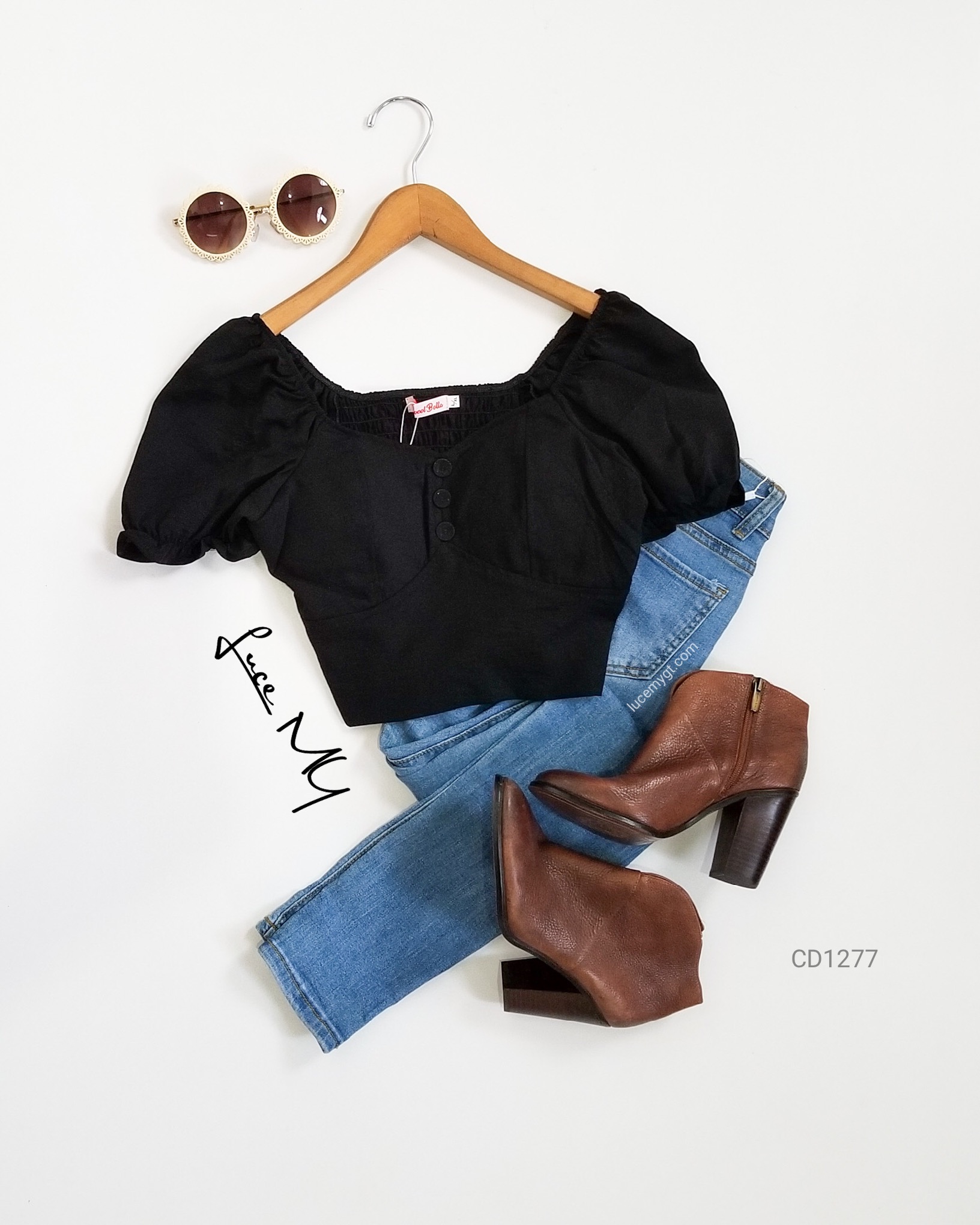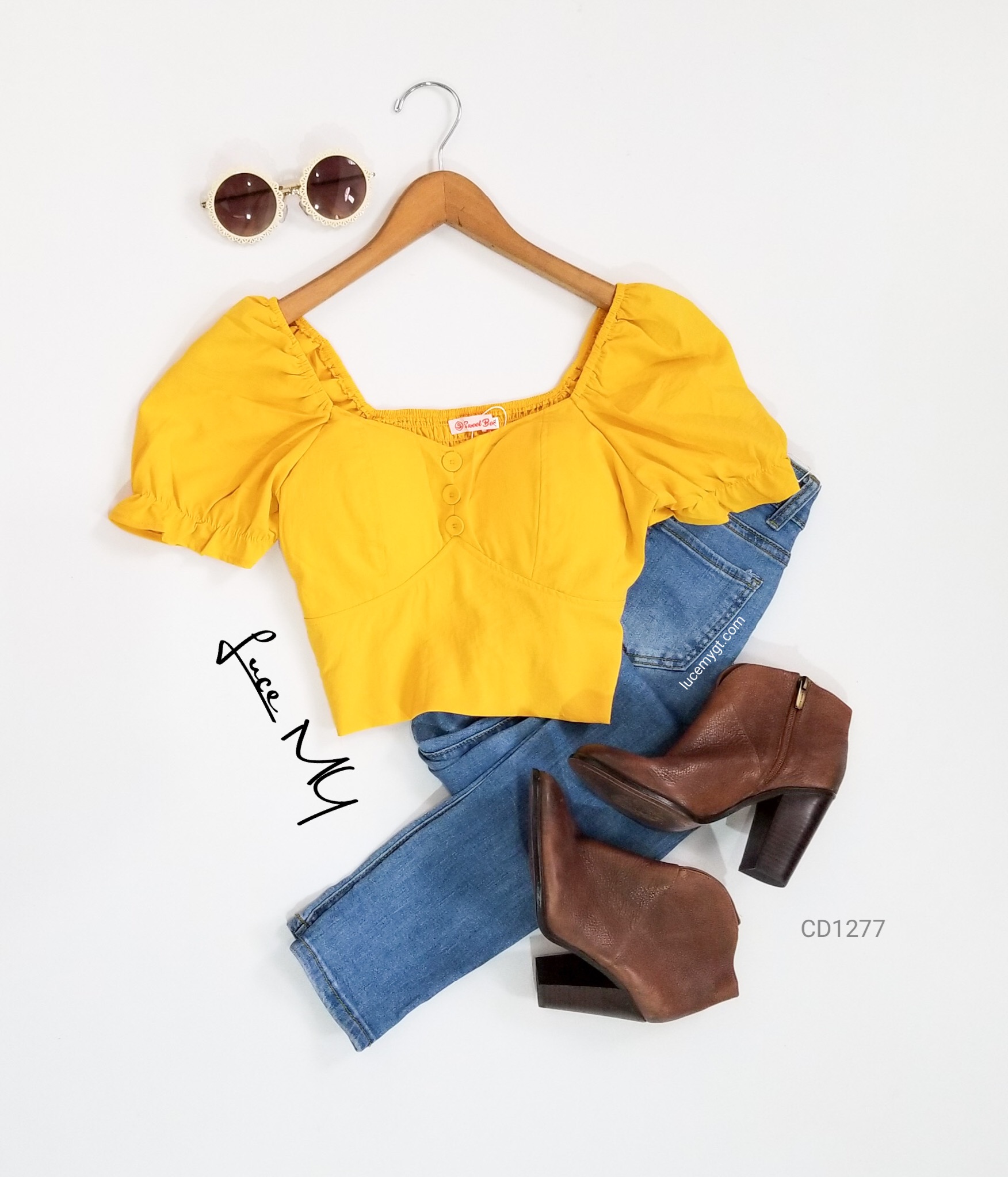 Descripción: Blusa Top Crop, escote corazón, botones forrados de la misma tela en la parte de enfrente, manga corta, y en la parte de atrás es fruncida. Promoción si llevas dos blusas a solo por Q155.00