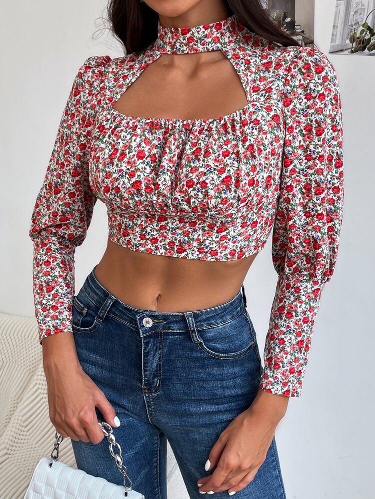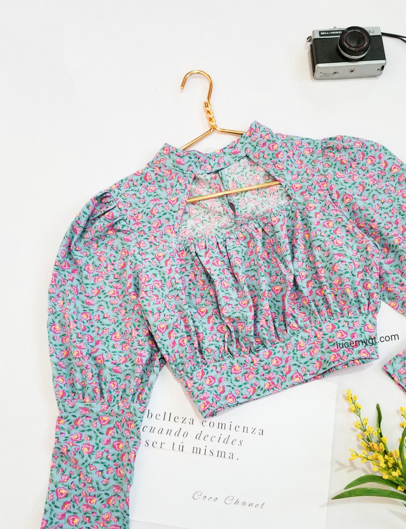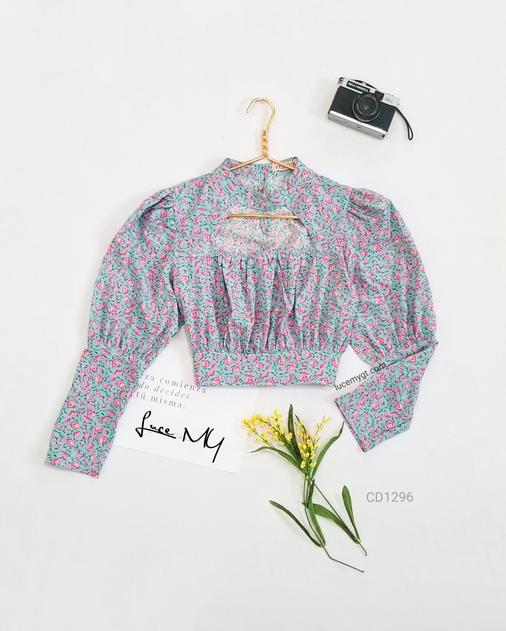 Descripción: Blusa Top Floral, cuello medio alto abertura en la parte de enfrente con elástico, manga larga y el la parte de atrás tiene un botón en la parte de arriba. Promoción si llevas dos blusas a solo por Q185.00