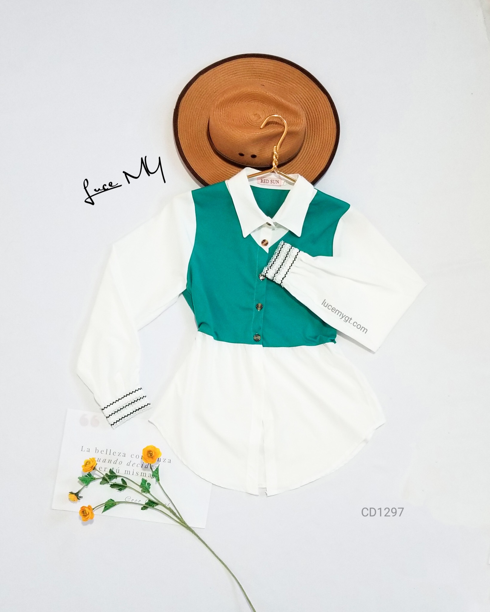 Descripción: Blusa Chaleco, cuello camisero, botones en la parte de enfrente, manga larga en la muñecas fruncidas muy chic para combinar con tus prendas favoritas.