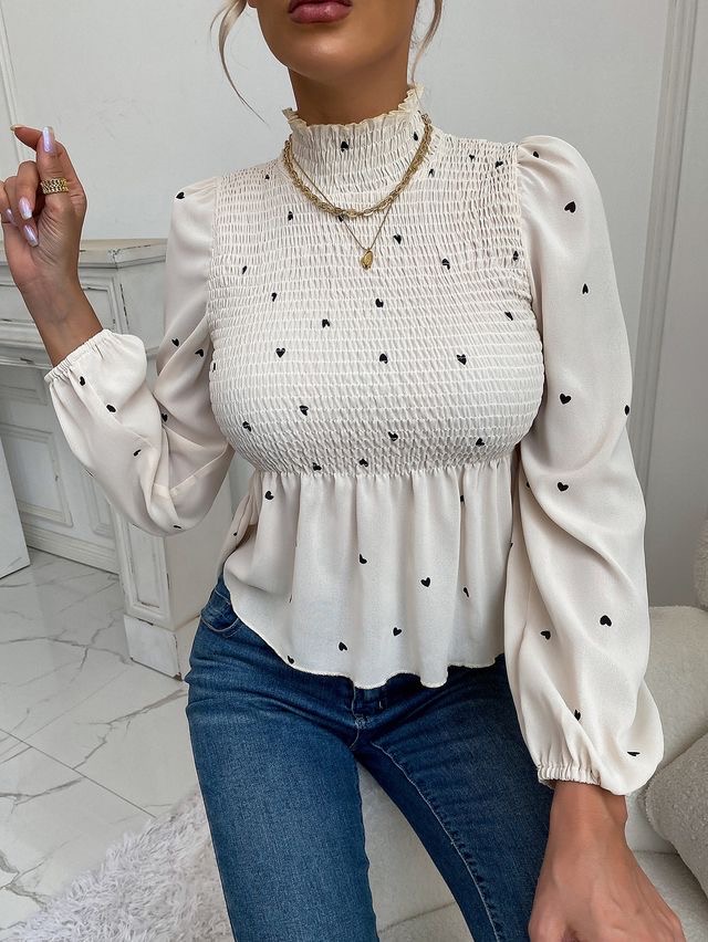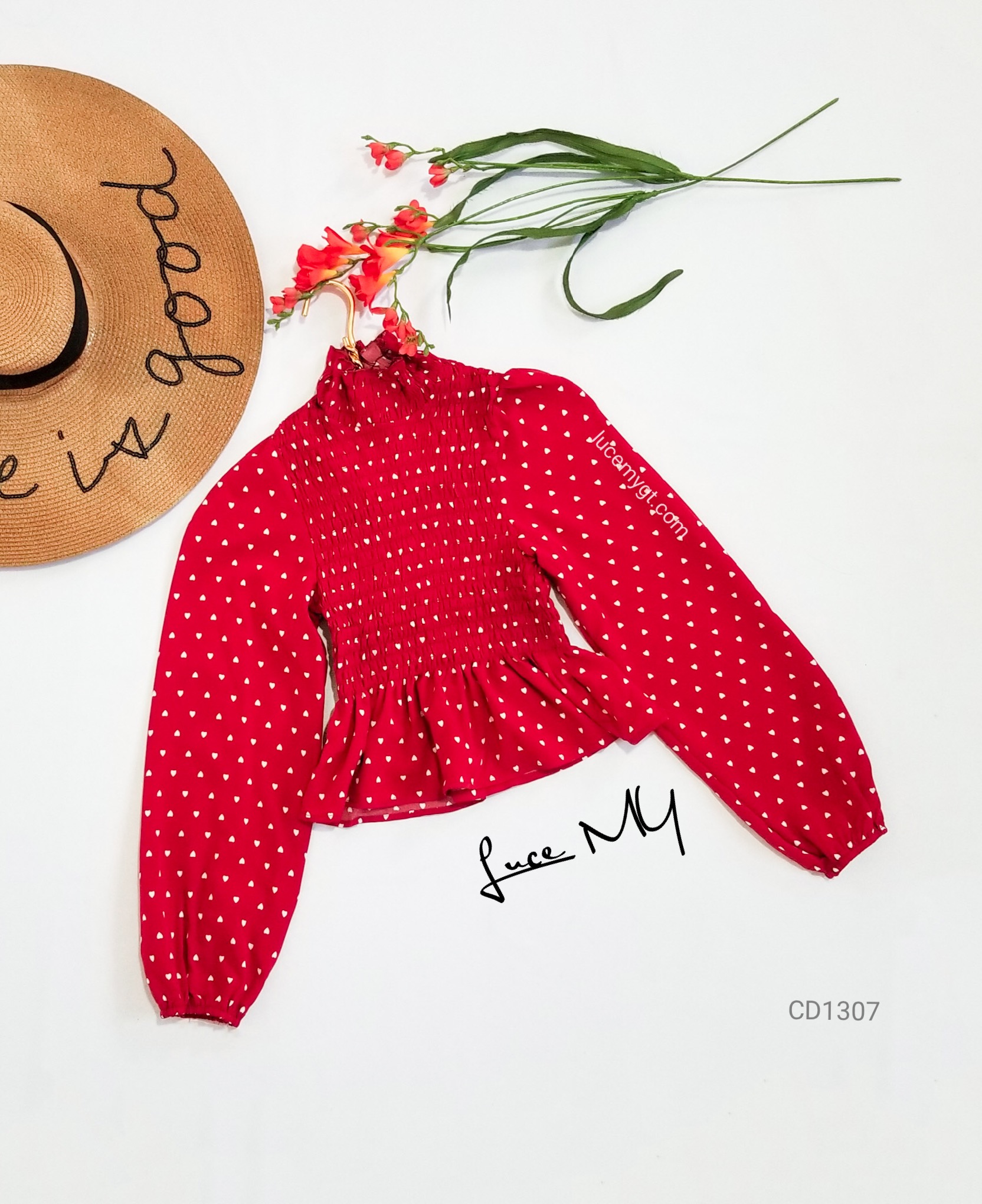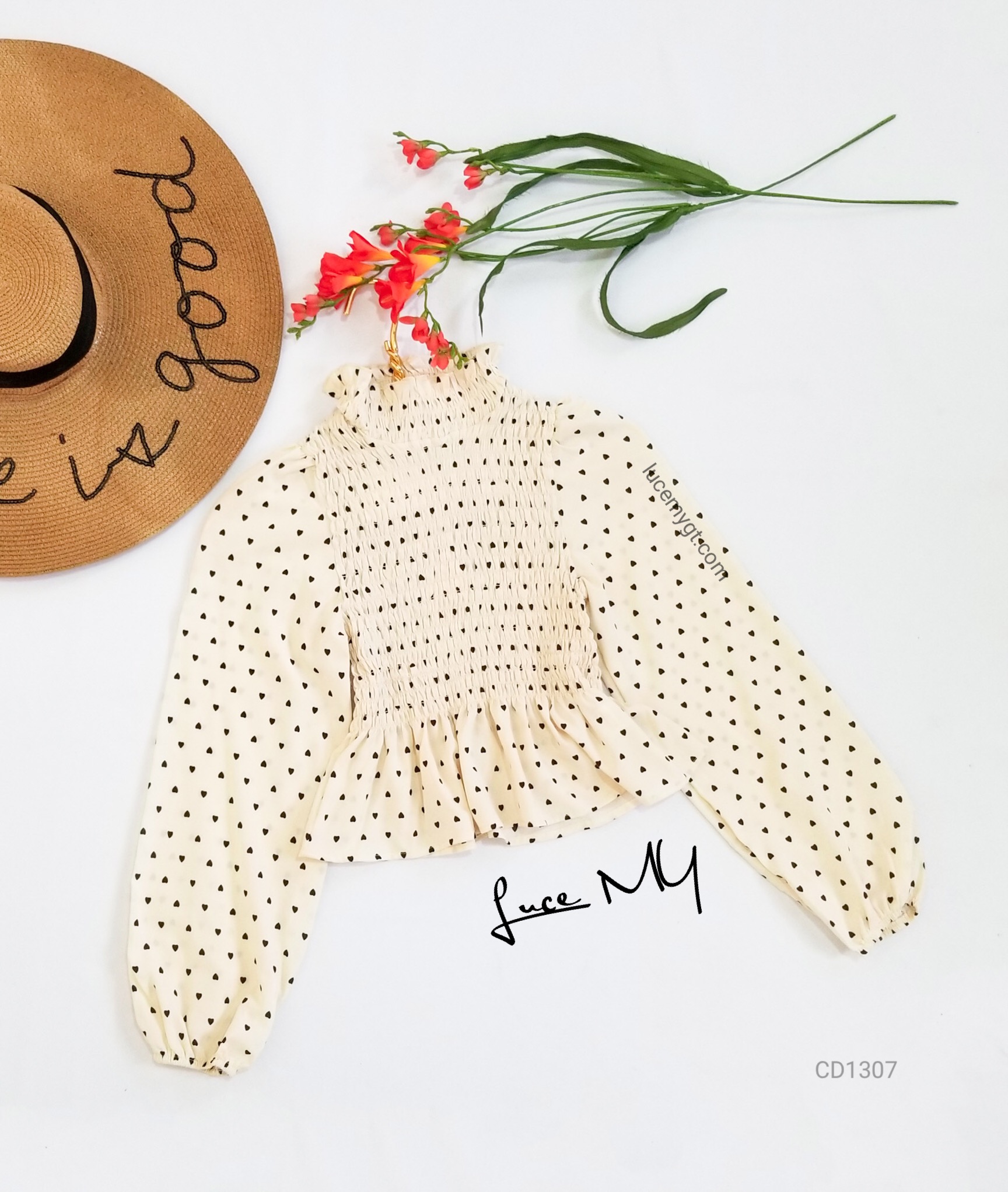 Descripción: Blusa Fruncida, cuello semi alto, manga larga de puff. Promocion si llevas