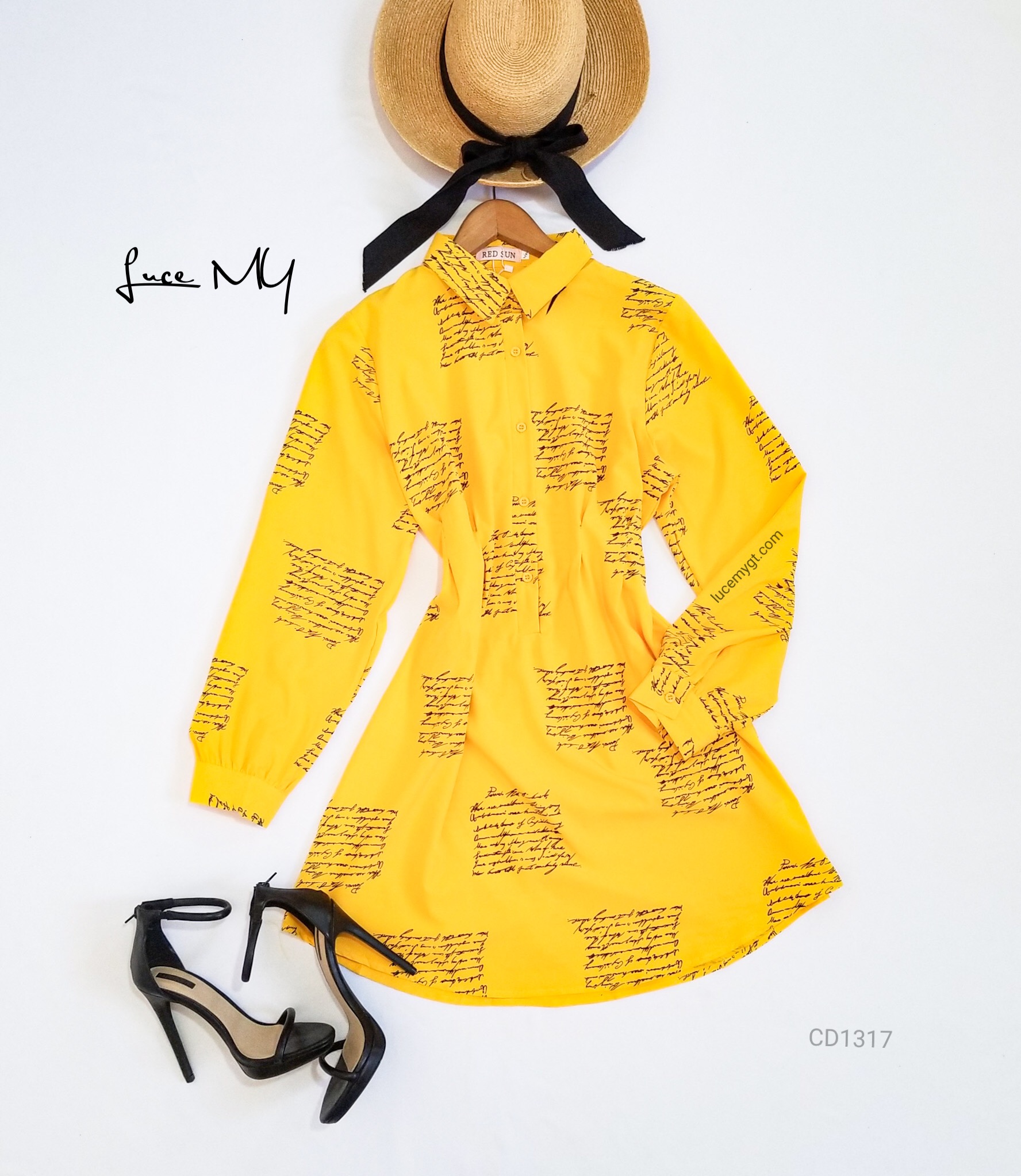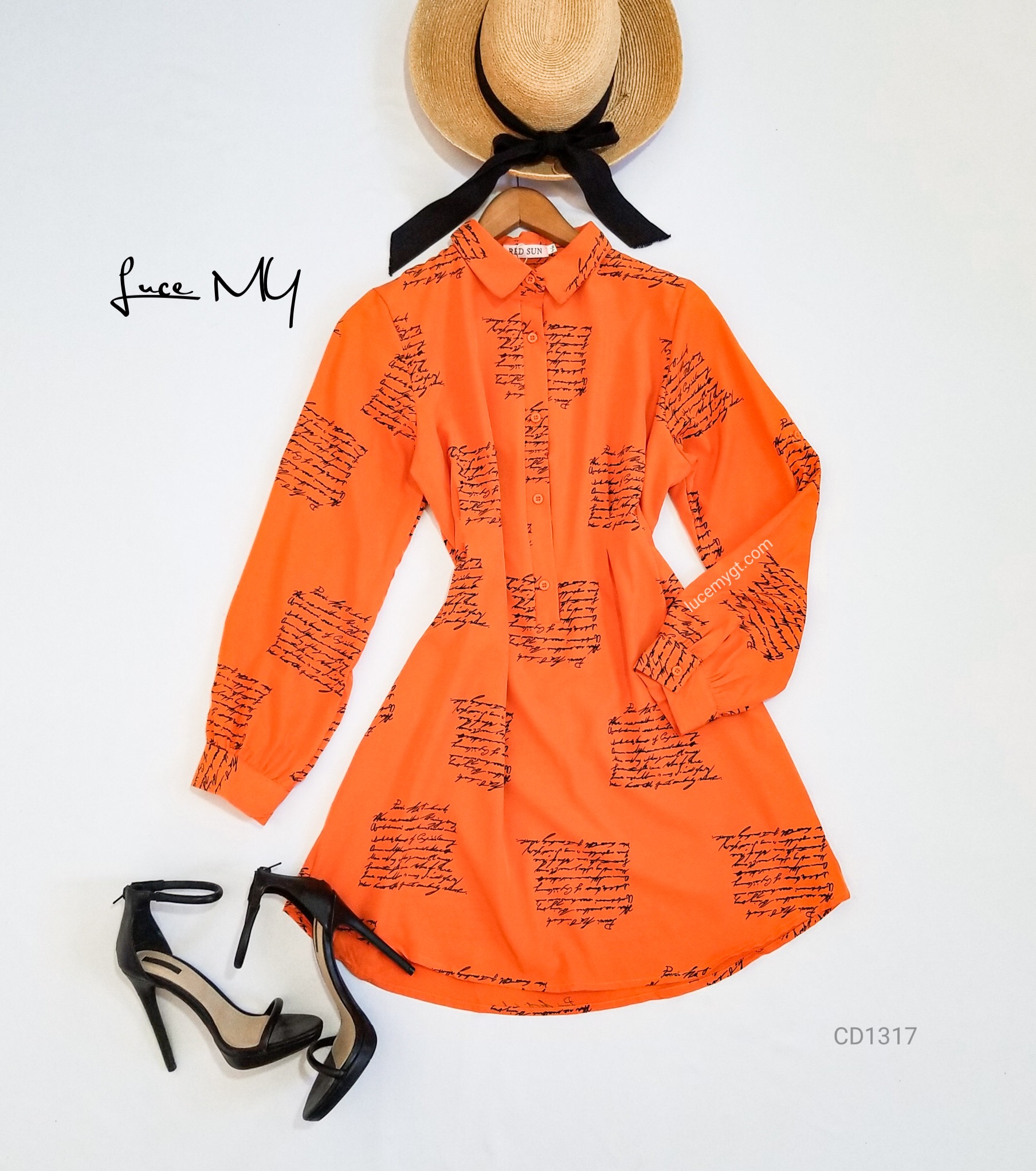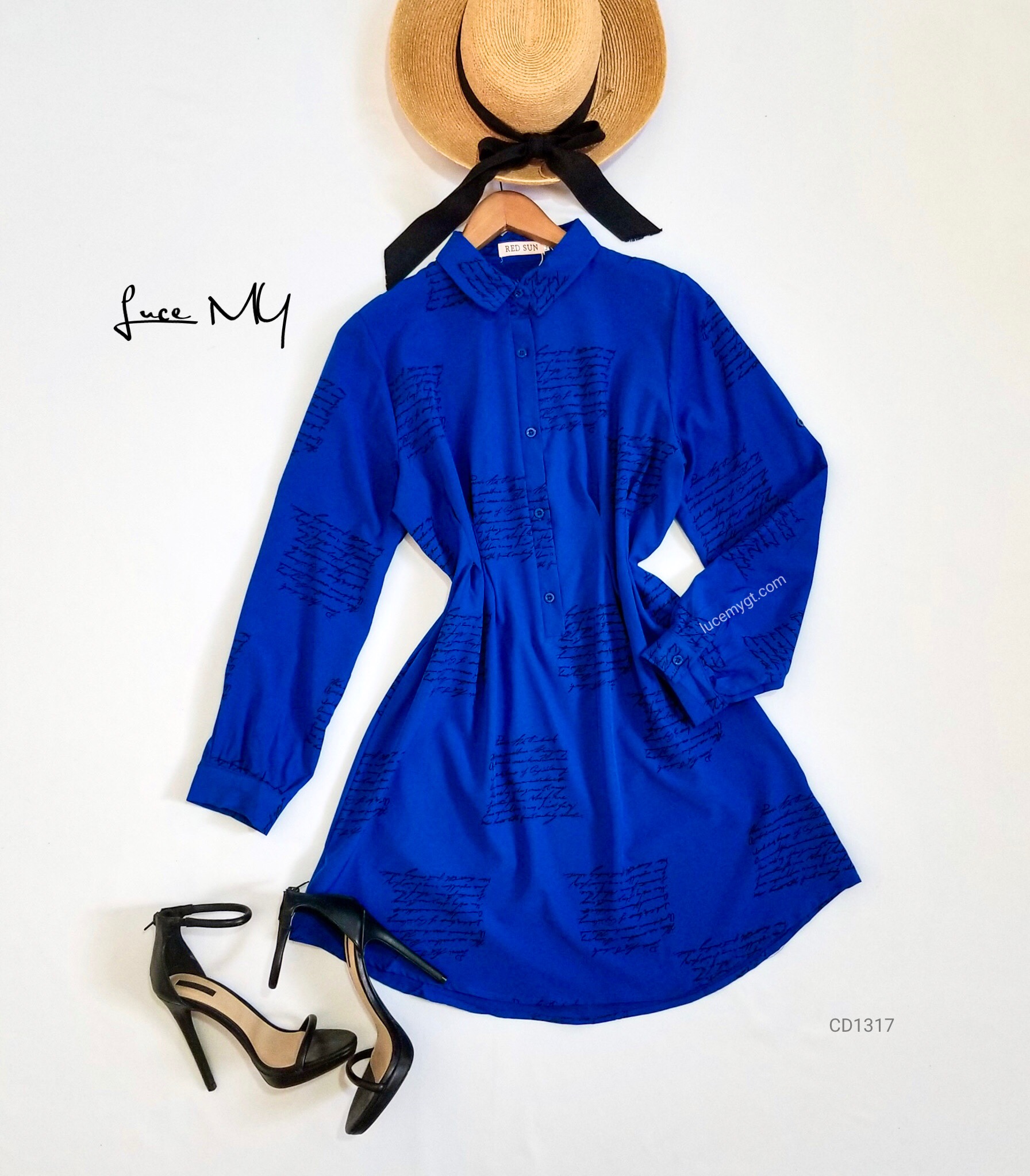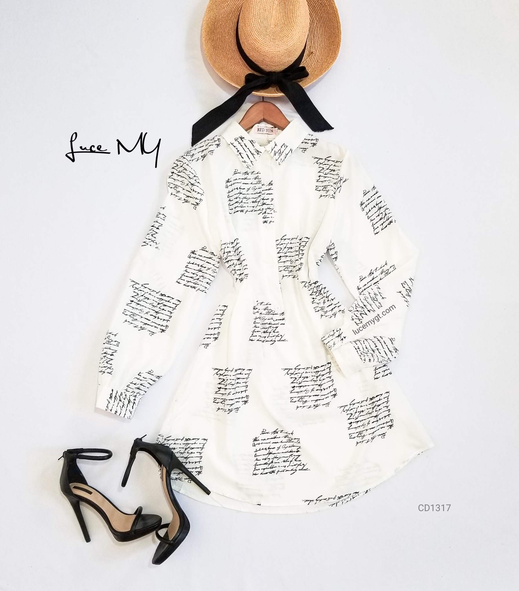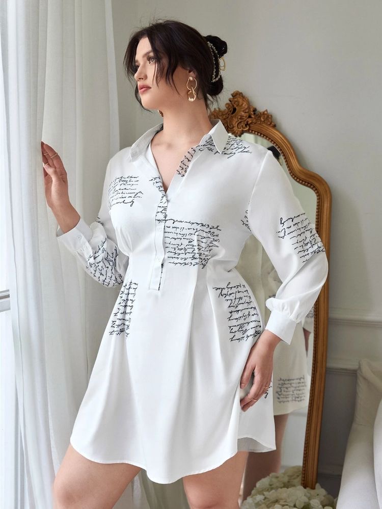Descripción: Blusa Vestido, tipo camisero con diseño de letras en carta, botones en la parte de enfrente, manga larga.