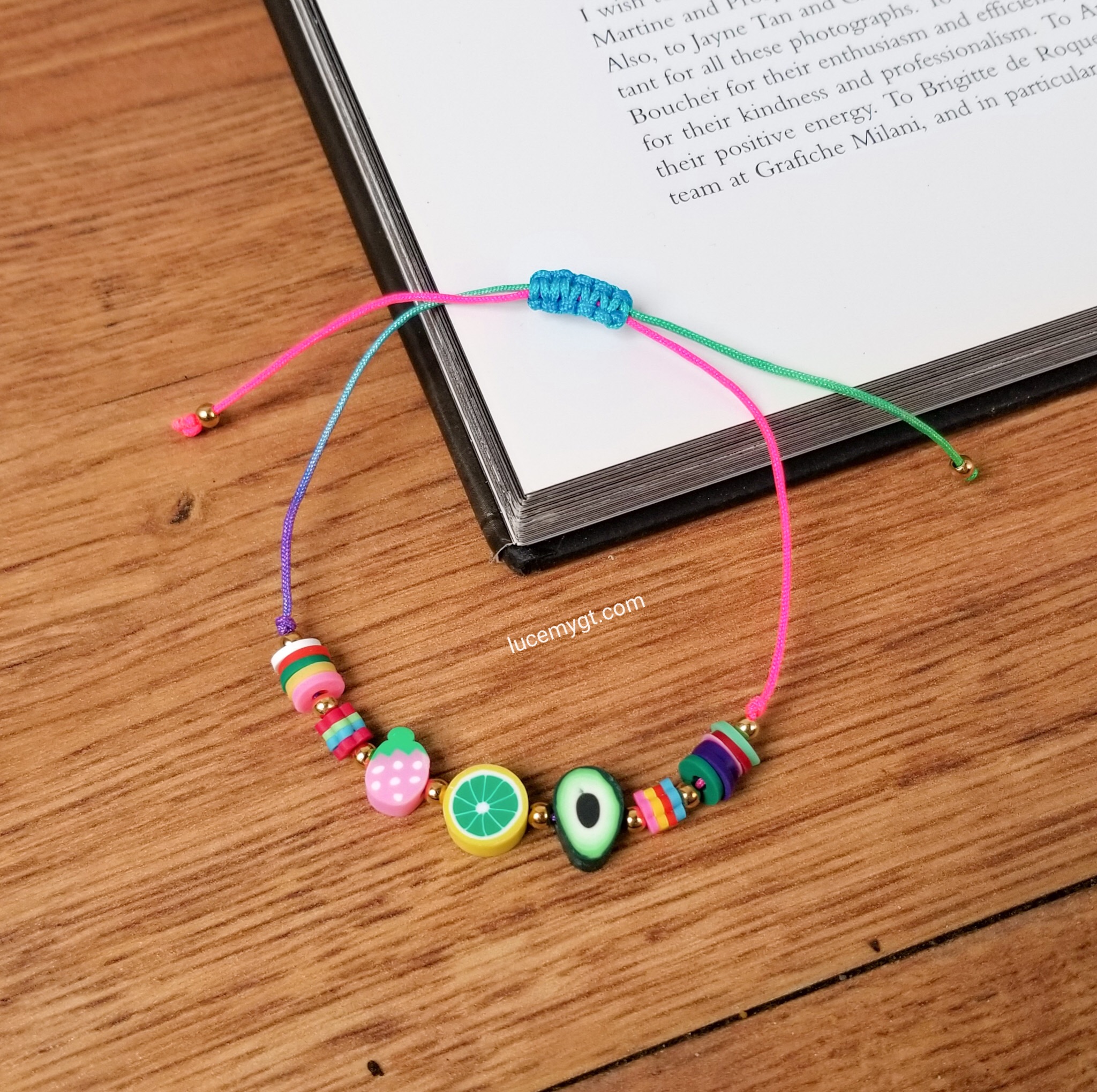 Pulsera de Hilo, con diseño de frutas