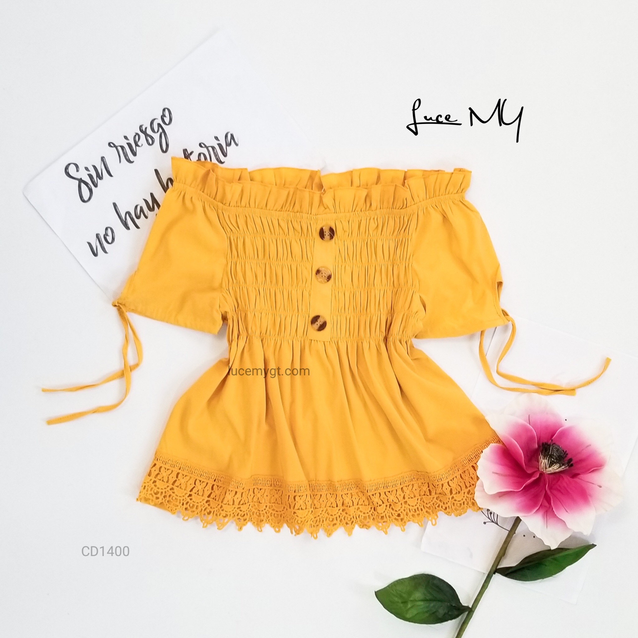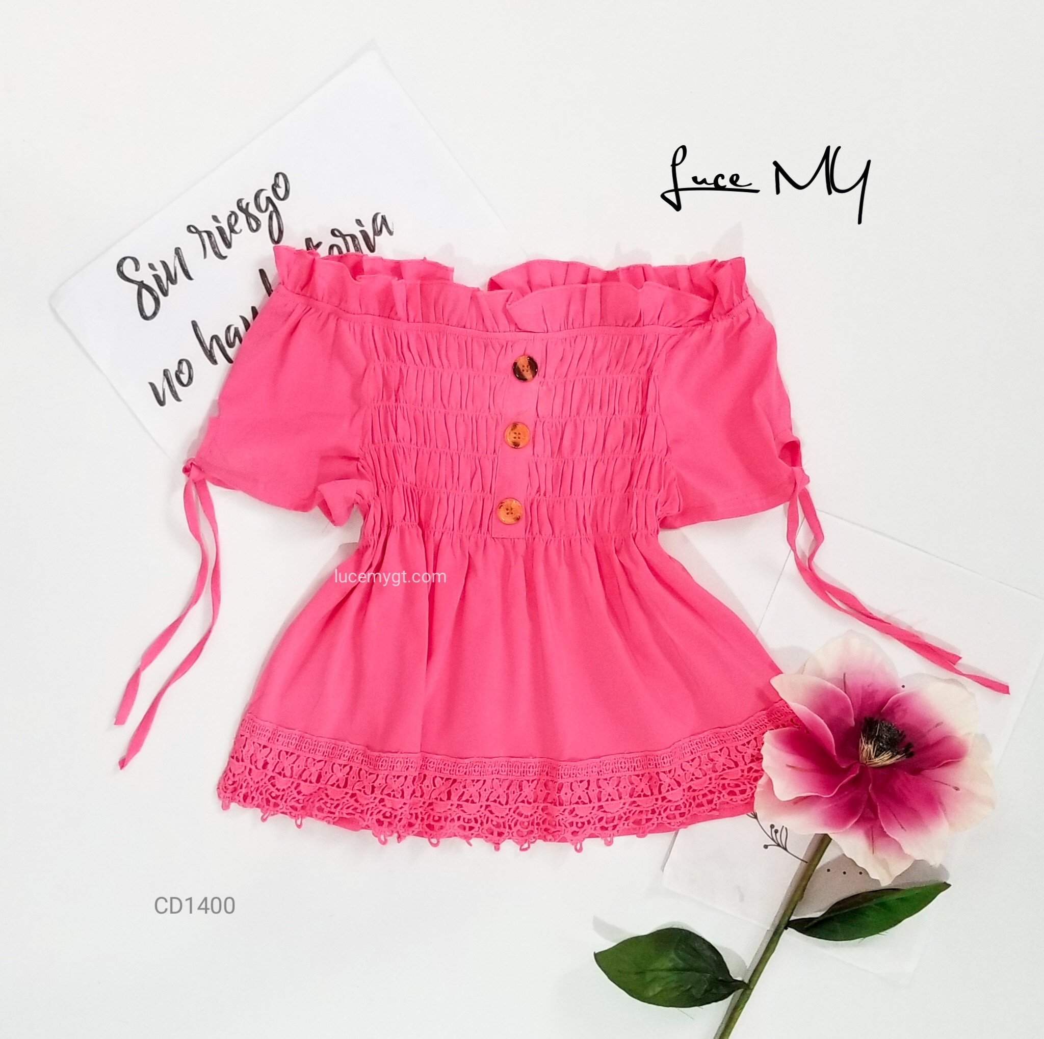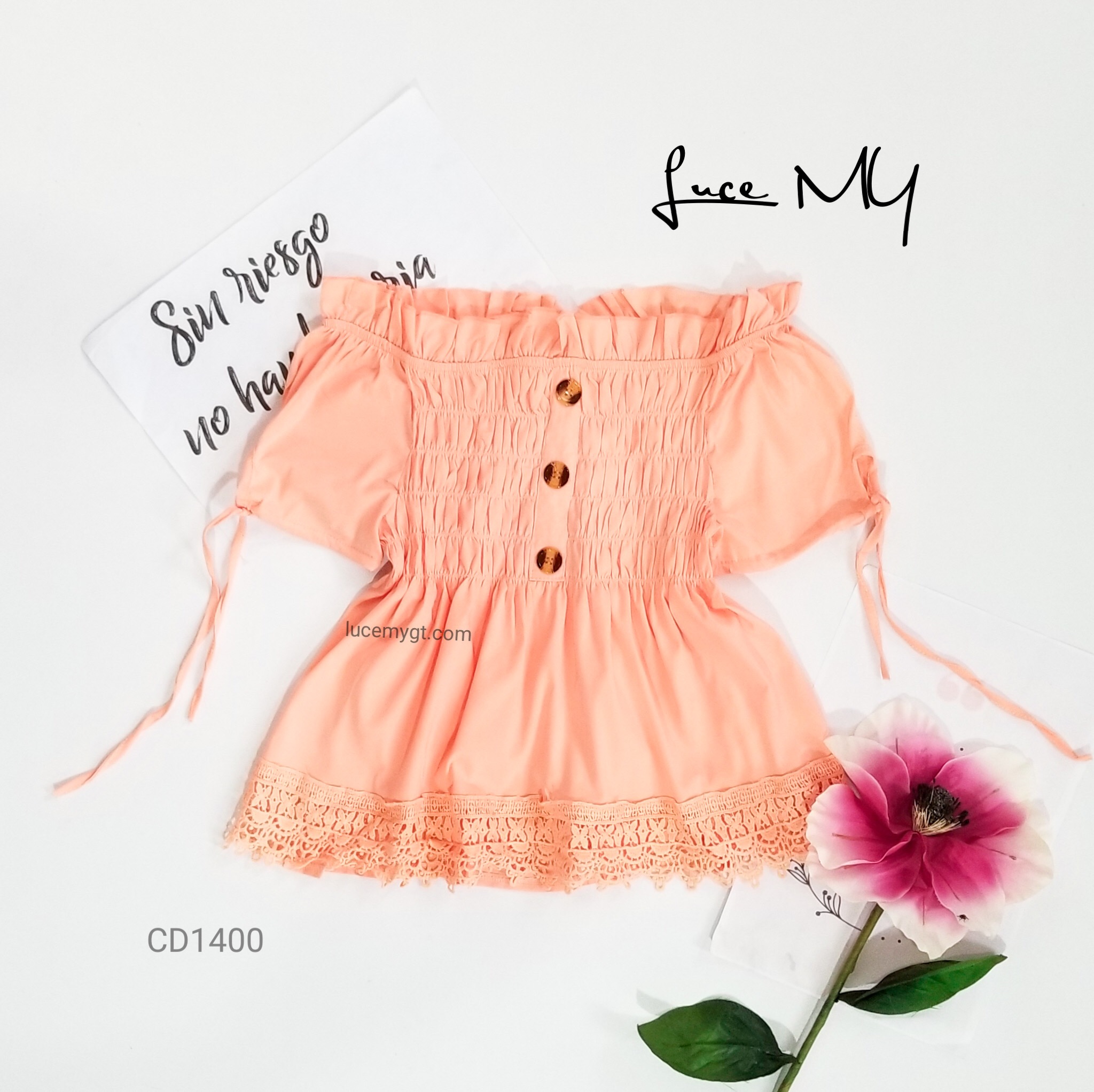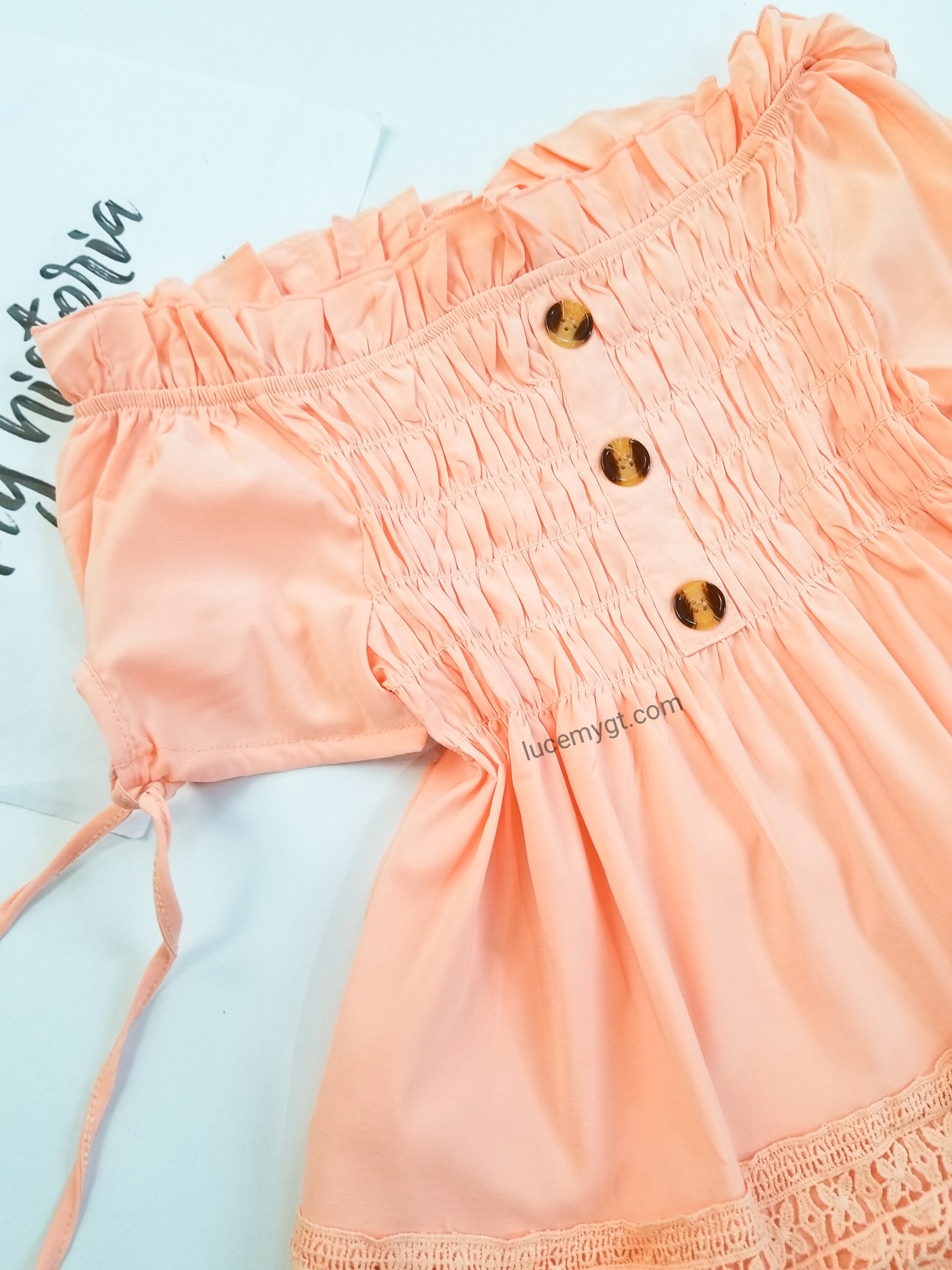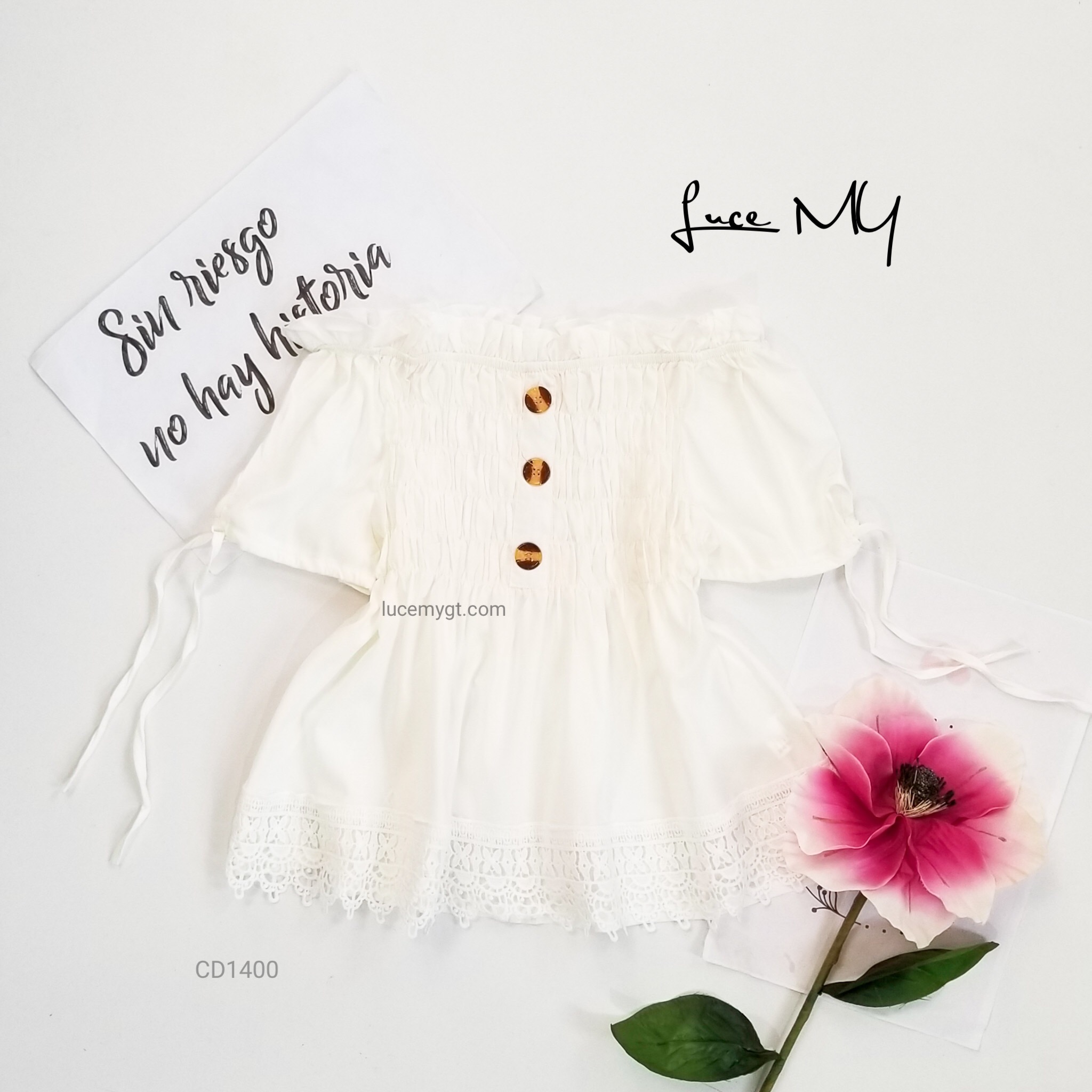 Descripción: Blusa Fruncida, off shoulder, manga corta, botones en la parte de enfrente, encaje en la parte de abajo. Promoción si llevas dos blusas a solo por Q185.00