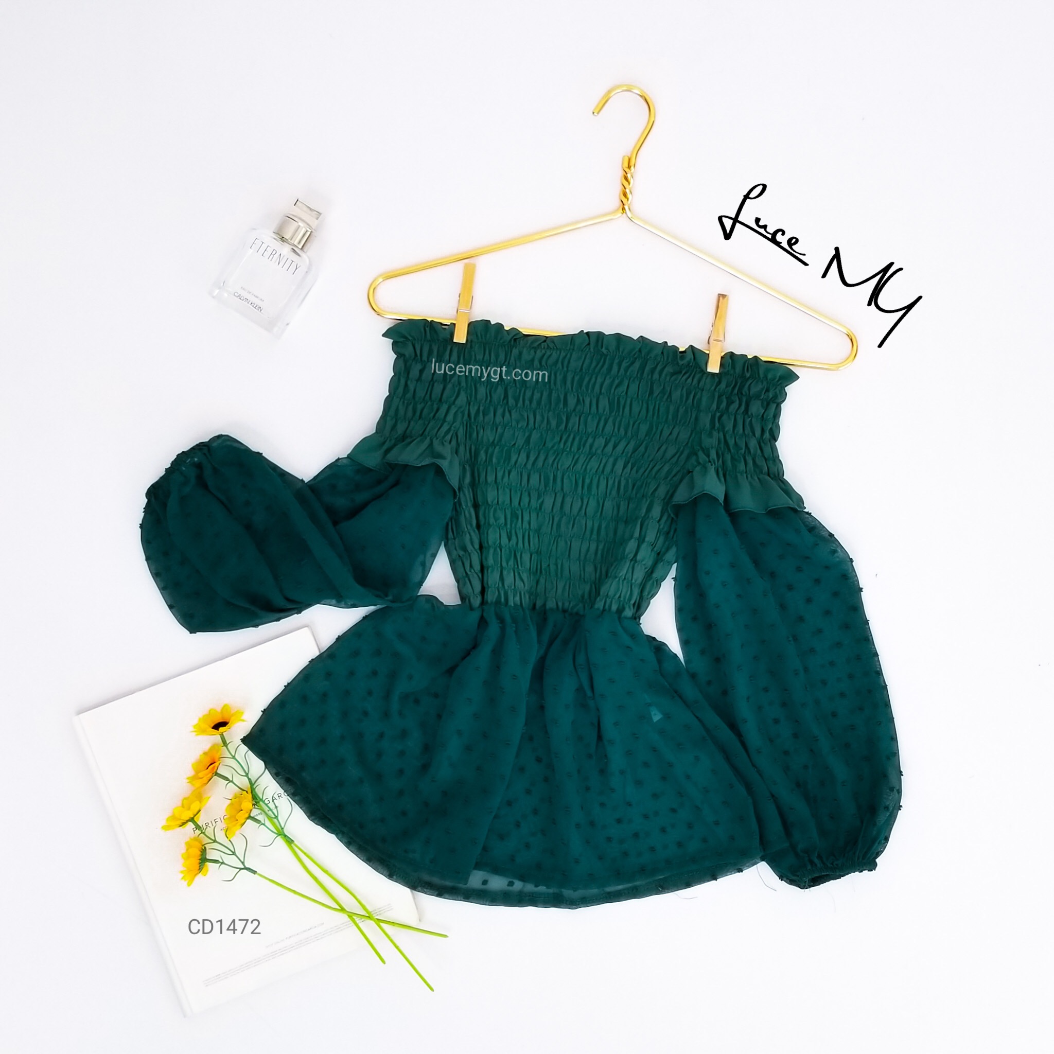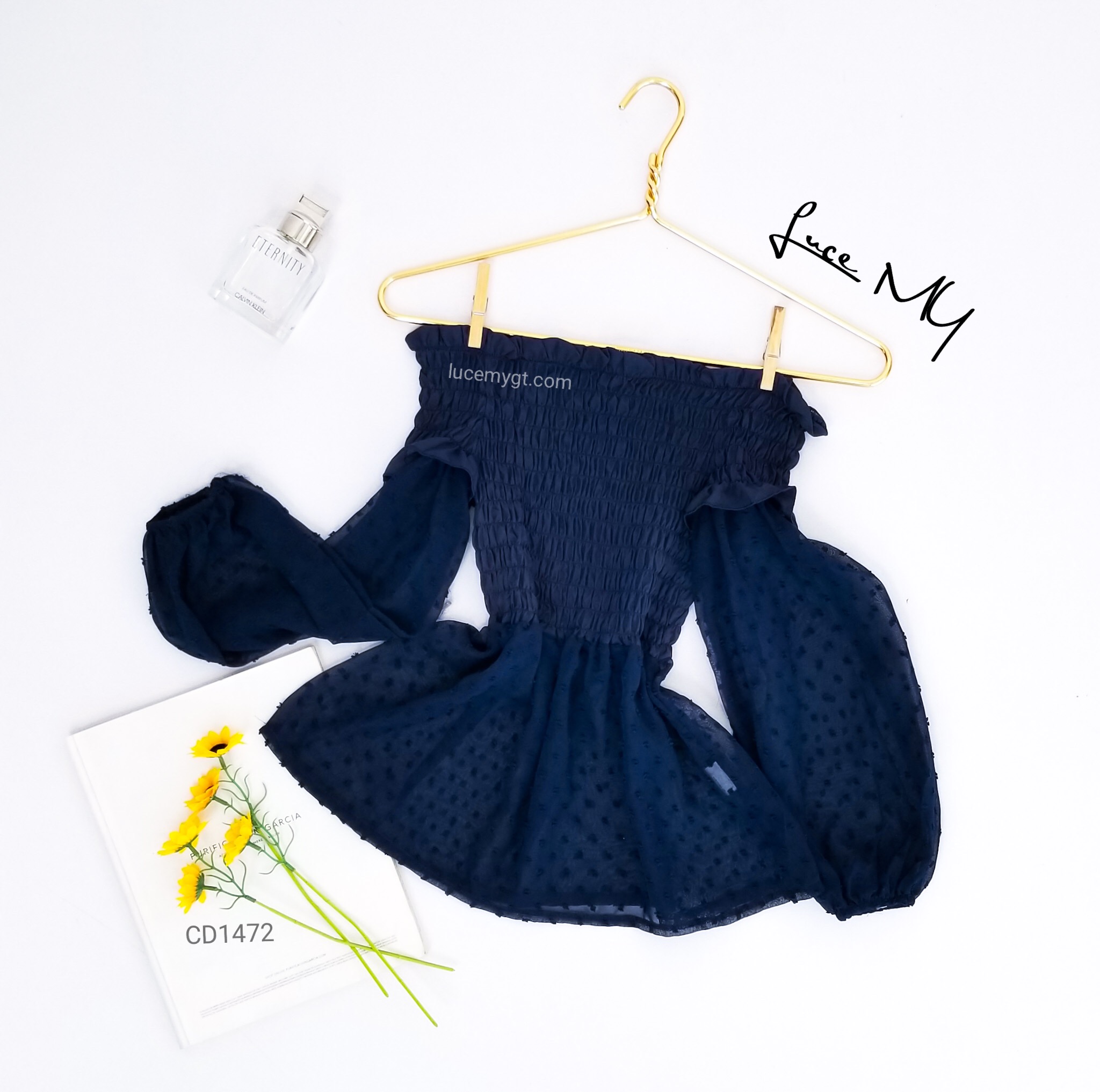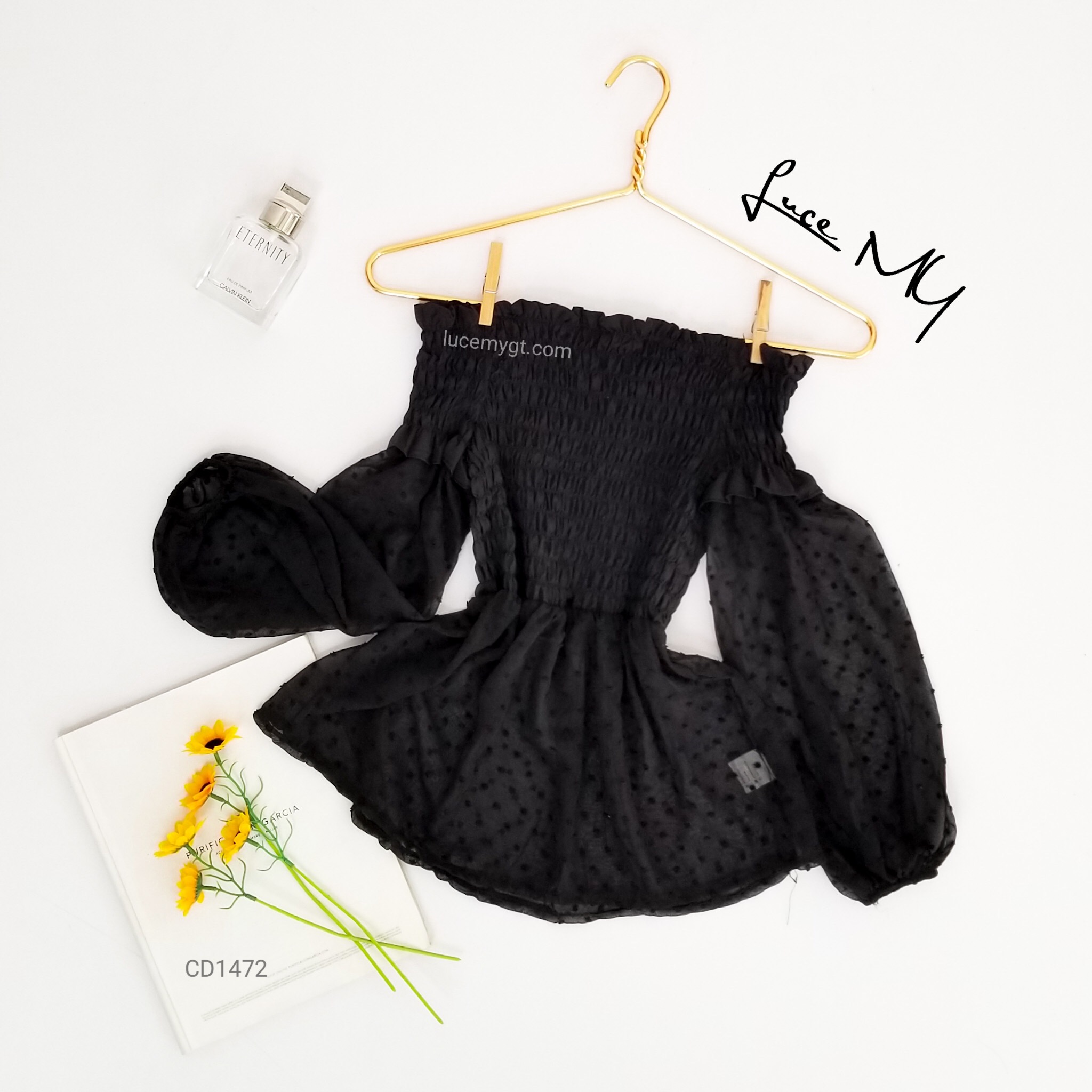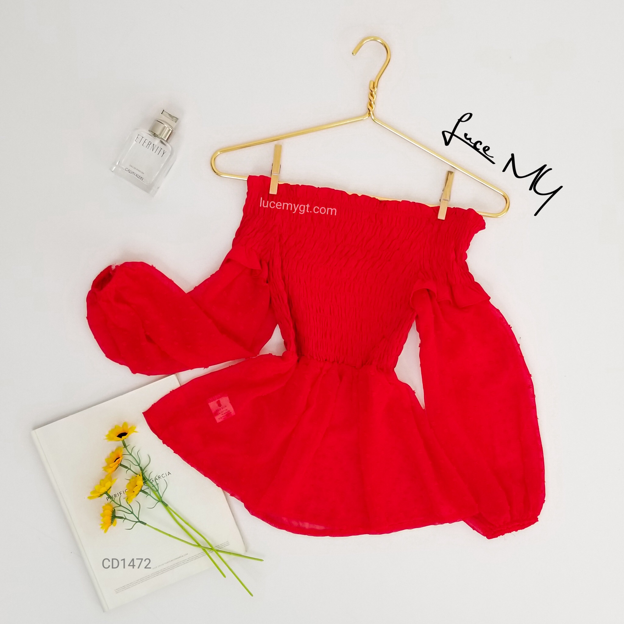 Descripción: Blusa Off Shoulder, fruncida en la parte de arriba, manga larga.