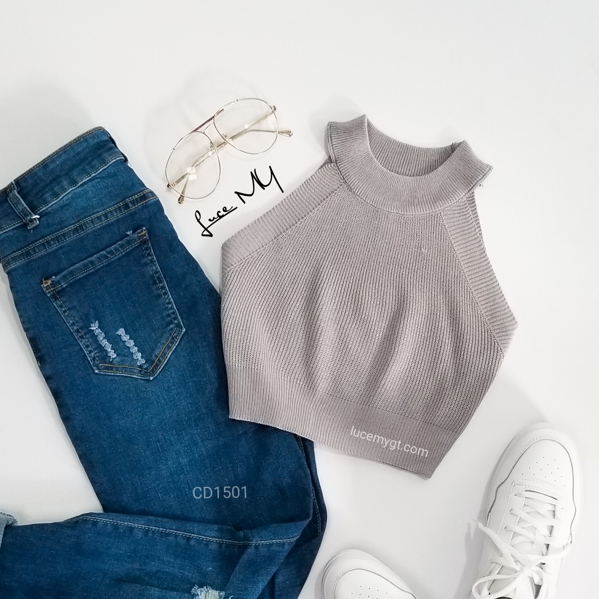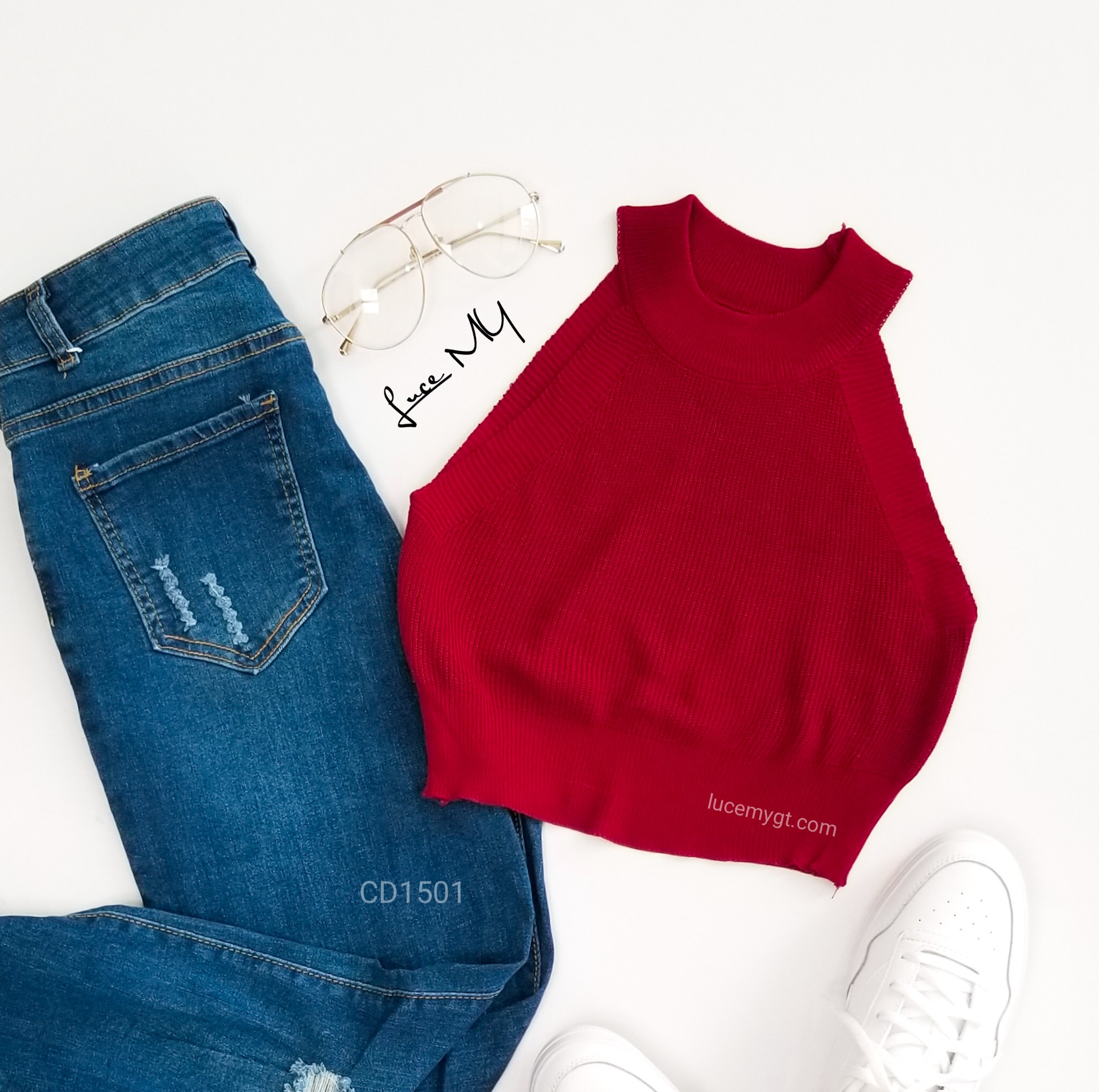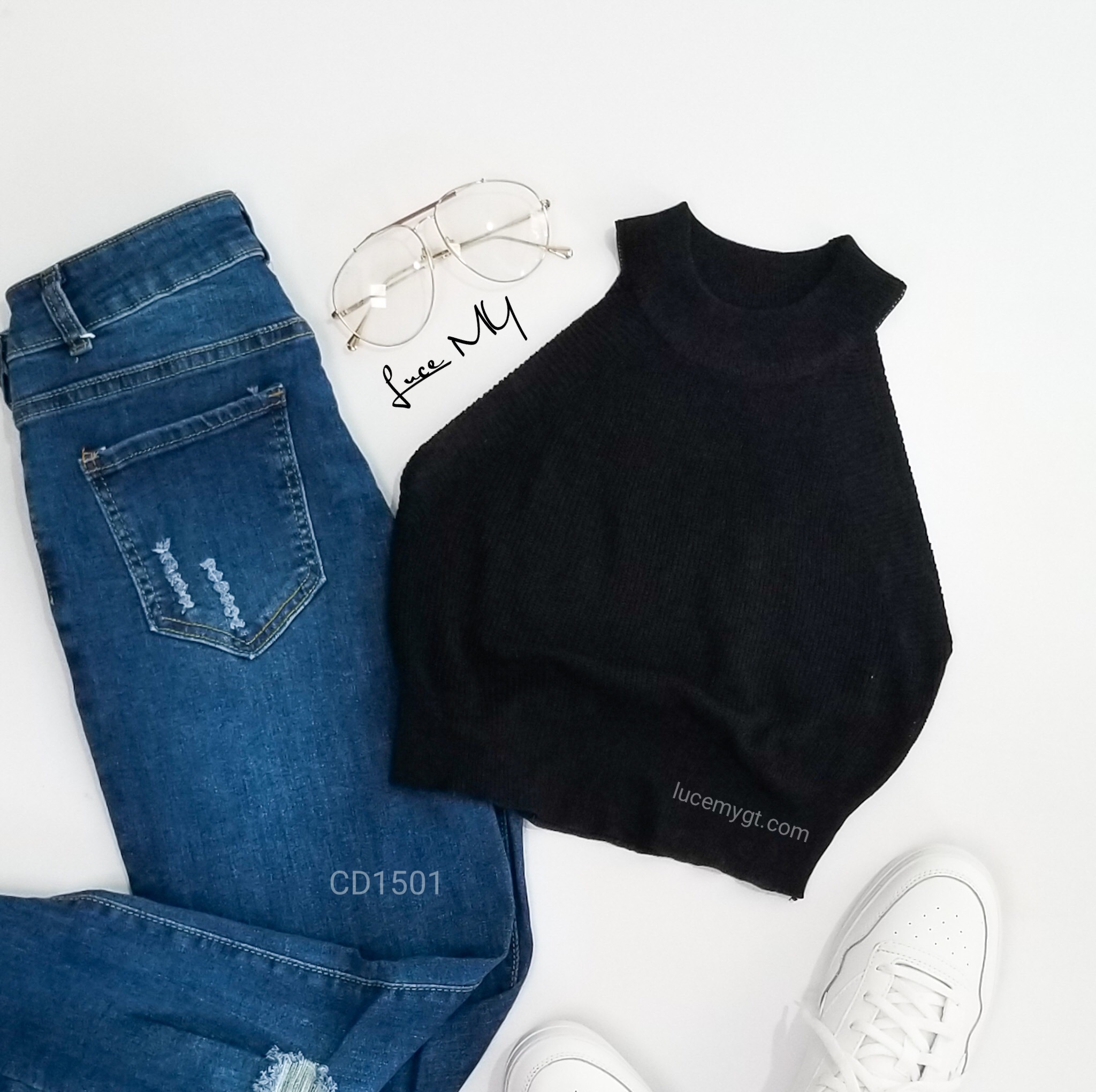 Descripción: Blusa top canalada, cuello medio alto, sin manga, muy cómoda de usar