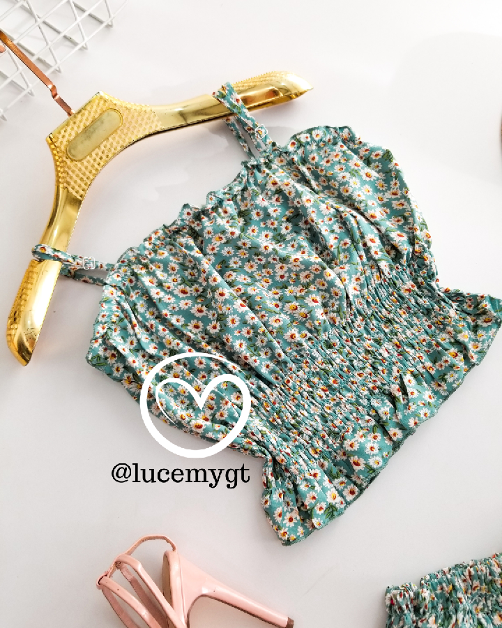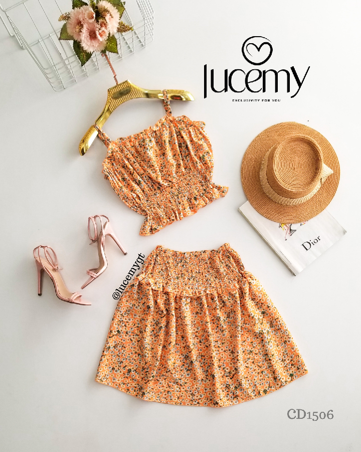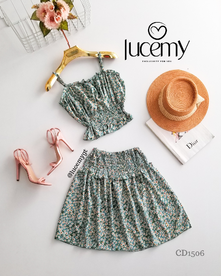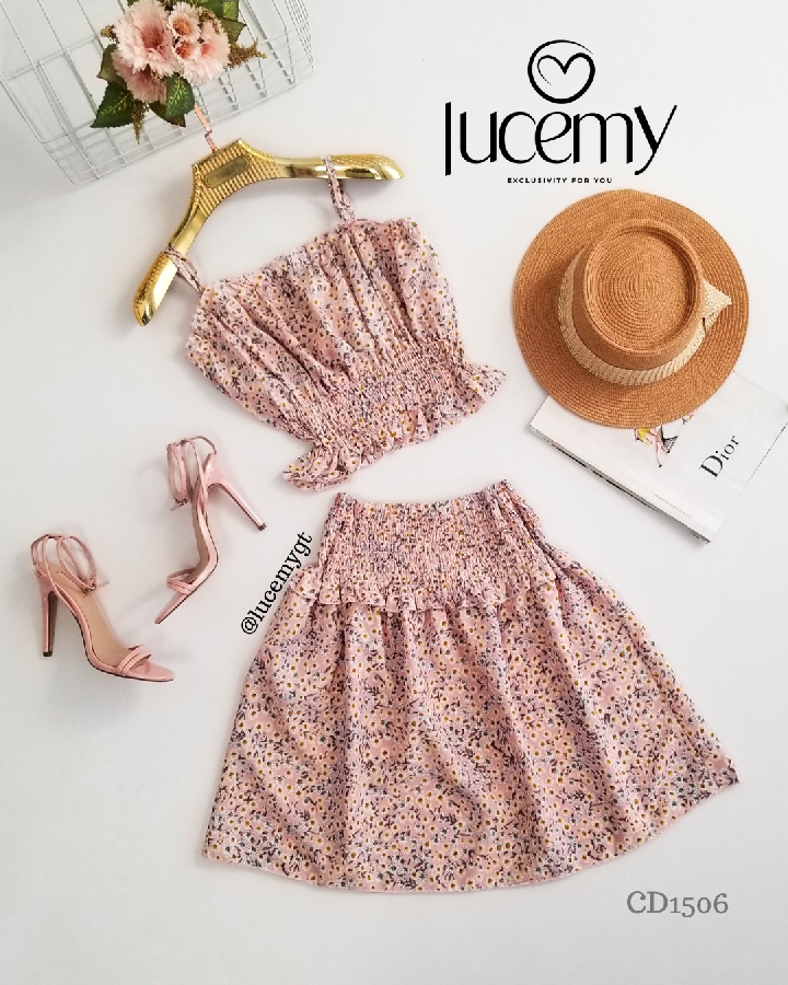 Descripción: La blusa es un clásico, pero también lo son los tirantes ajustables que pueden llevarse de múltiples maneras. La falda fruncida en la cintura mantendrá tu look completamente moderno y fresco.