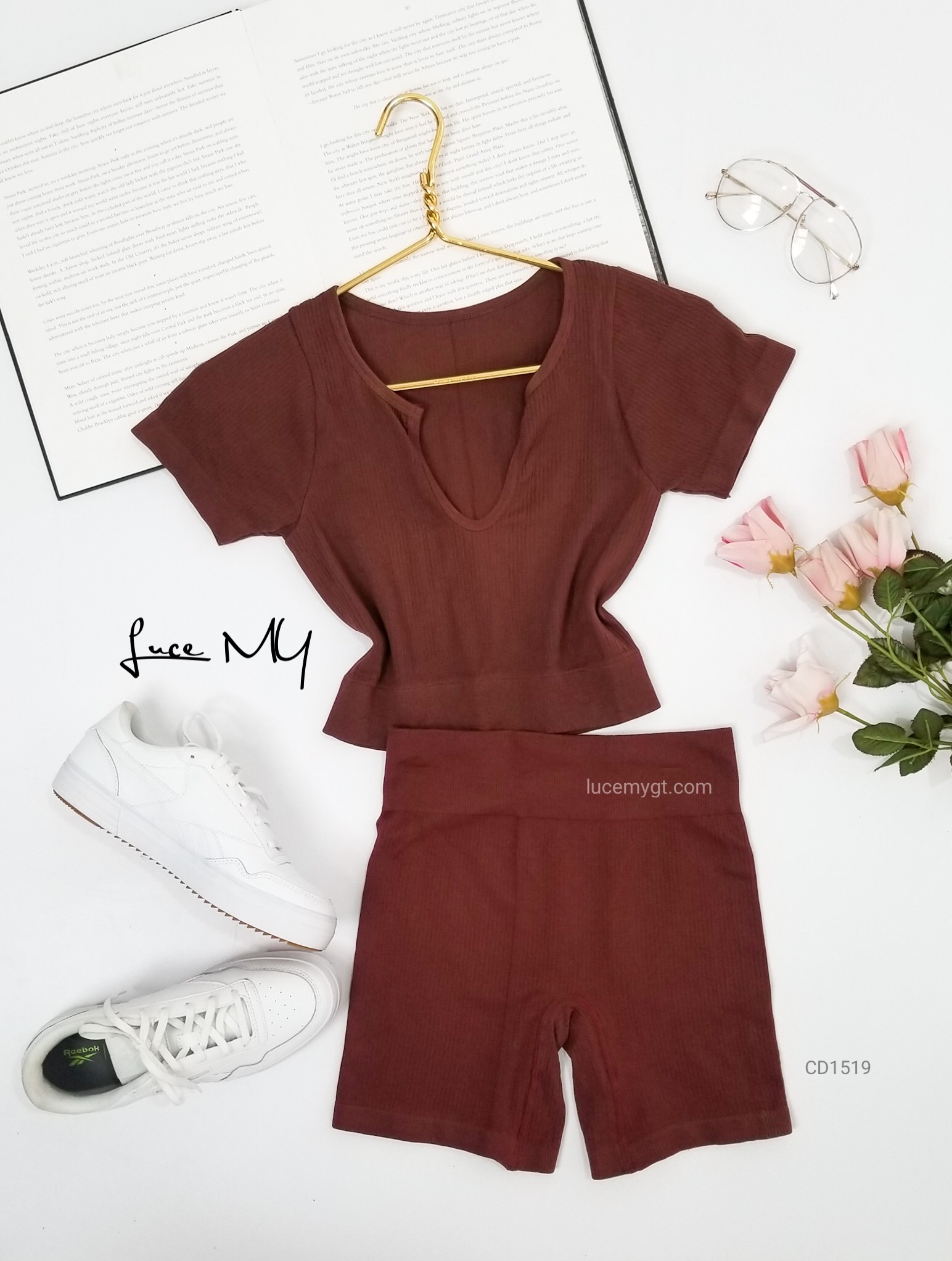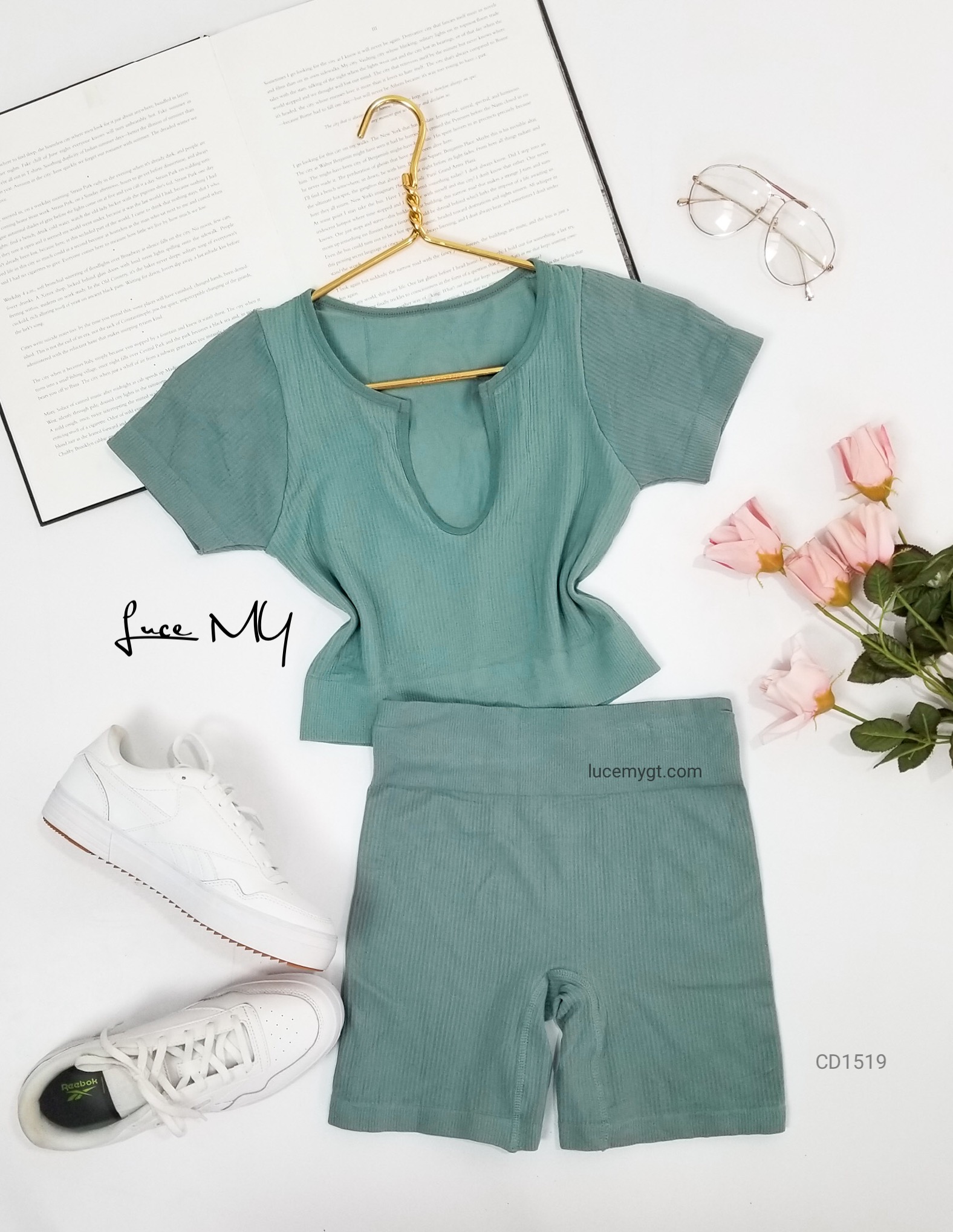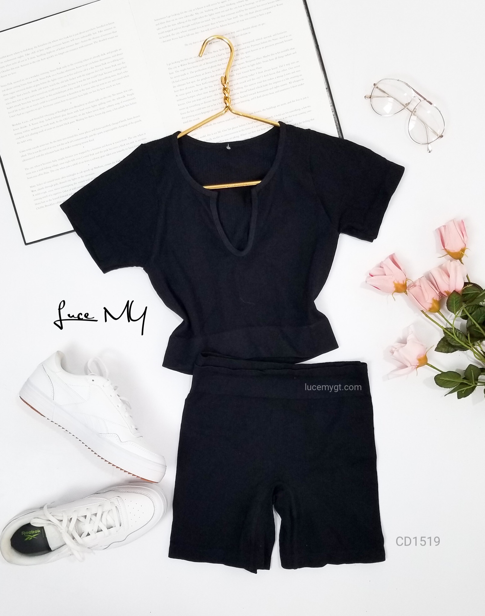 Descripción: Conjunto Biker, blusa escote U, manga con mangas y short cintura media, tela acanalada strche. Promoción si llevas dos conjuntos a solo por Q125.00