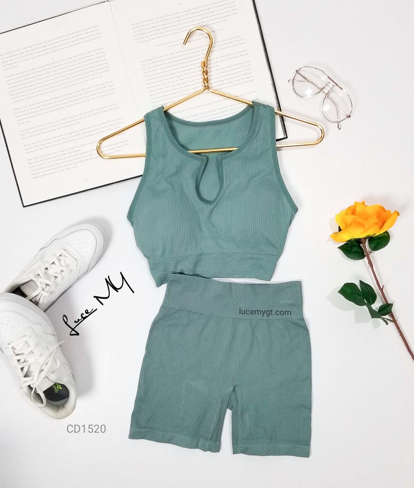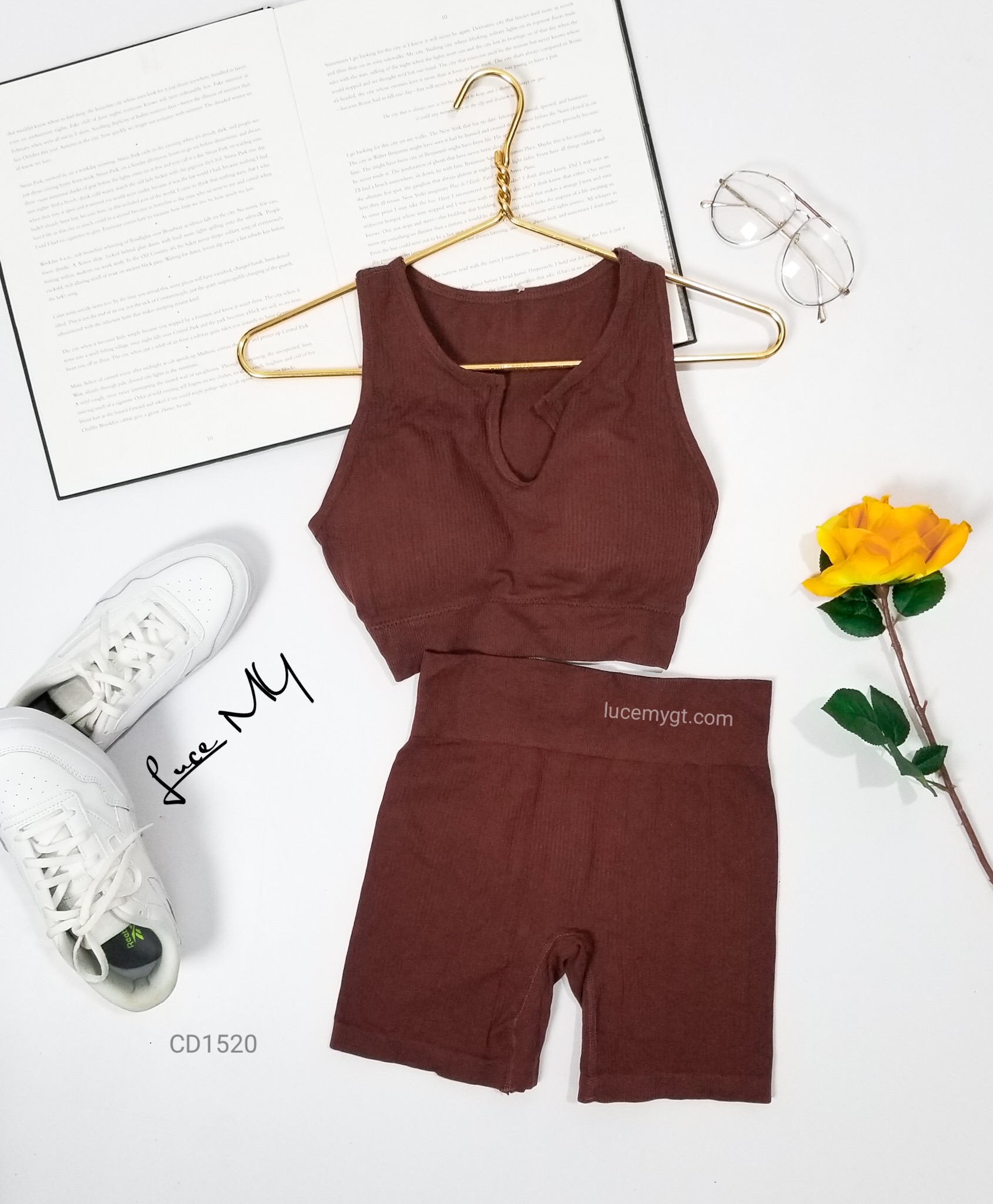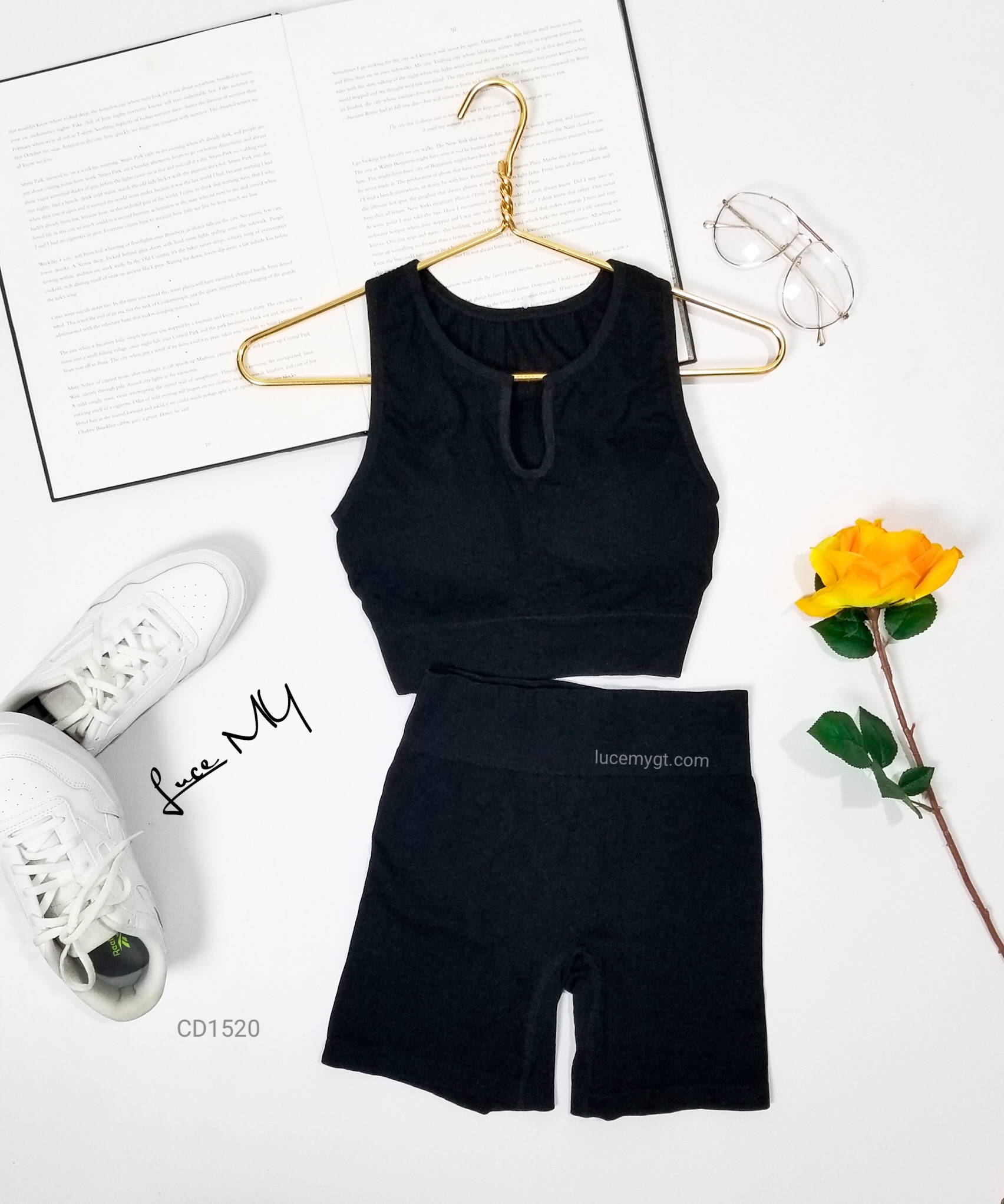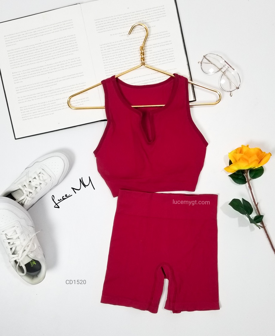 Descripción: Conjunto Biker, blusa escote U, sin mangas y short cintura media, tela acanalada strche. Promoción si llevas dos conjuntos a solo por Q125.00
