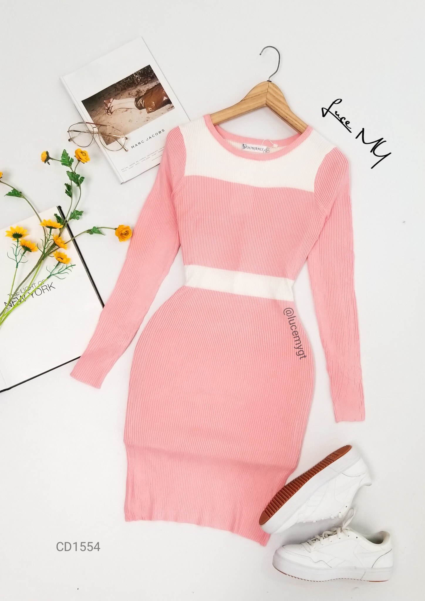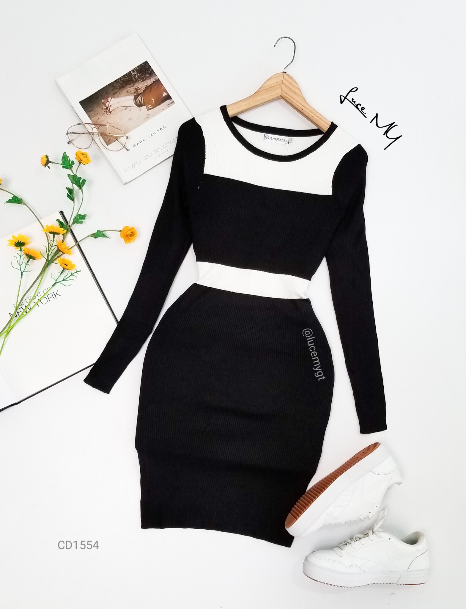 Descripción: Vestido Casual, escote redondo, manga larga, con franjas blancas, textura acanalado. Promoción si llevas dos vestidos a solo por Q225.00