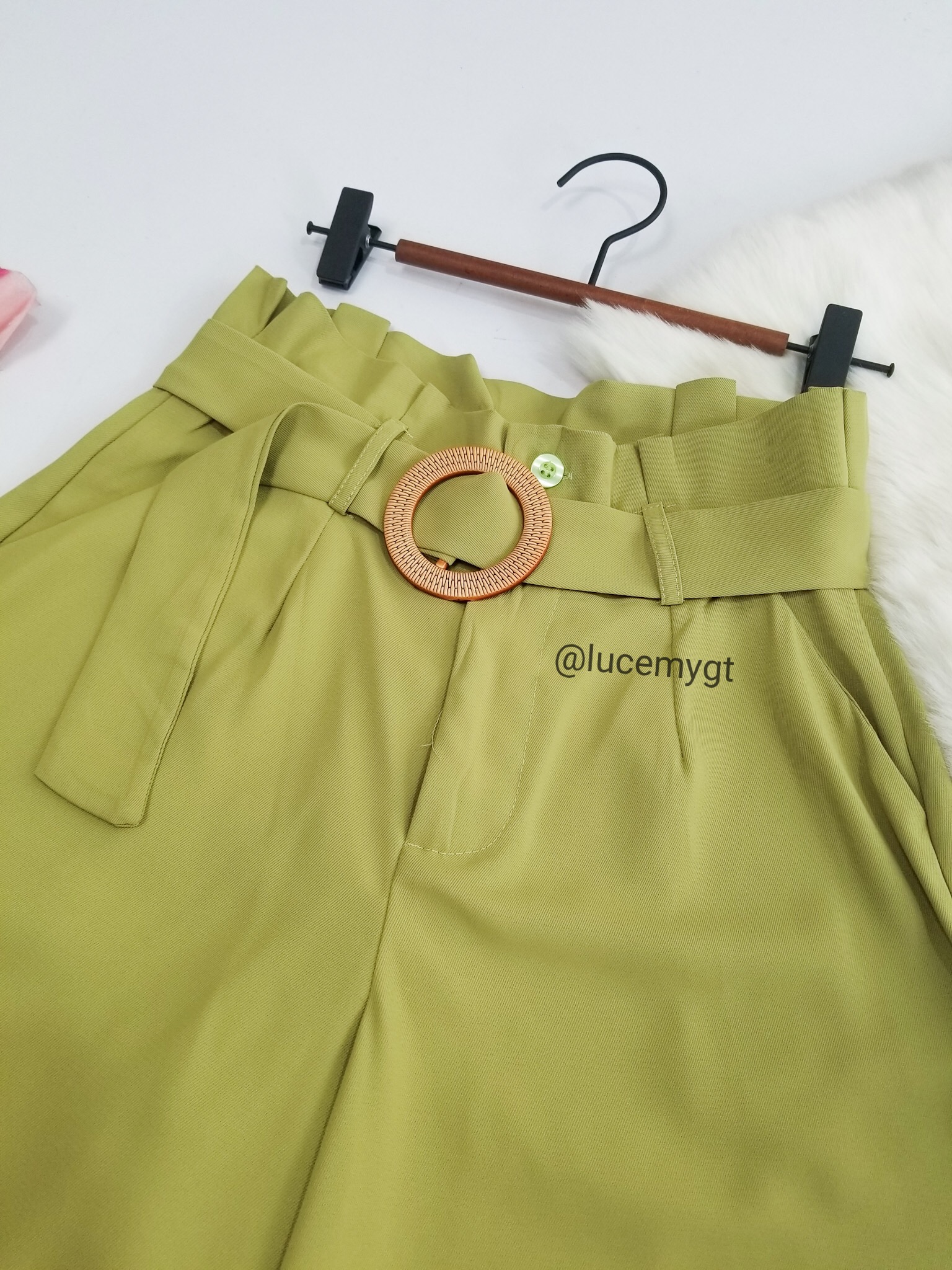 Descripción: Falda Pantalón, cintura alta, bolsillos a los lados, botones en la parte de enfrente, incluye su cincho de la misma tela.