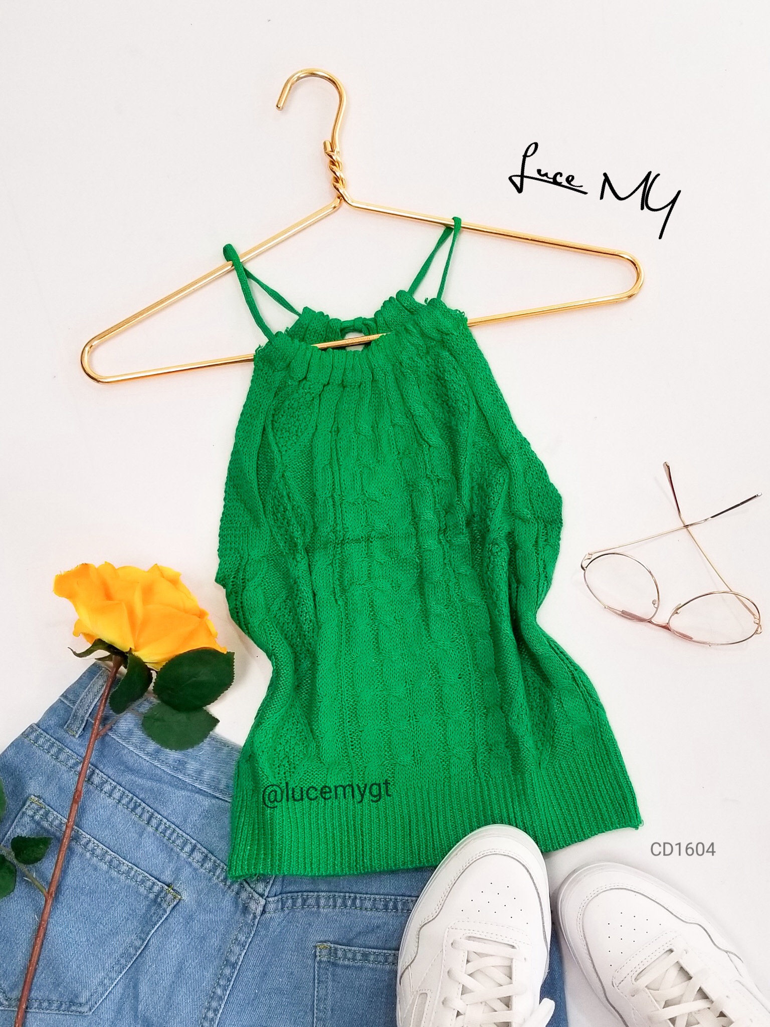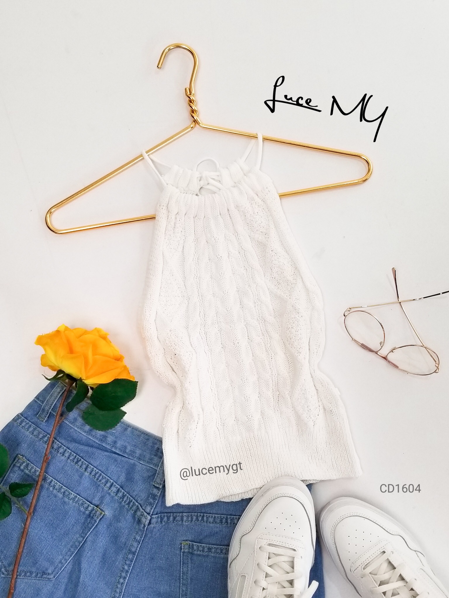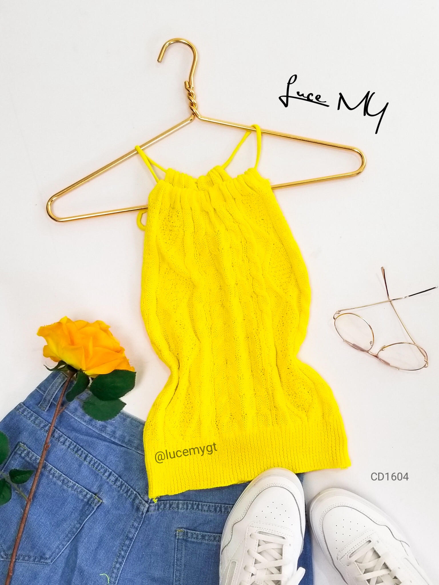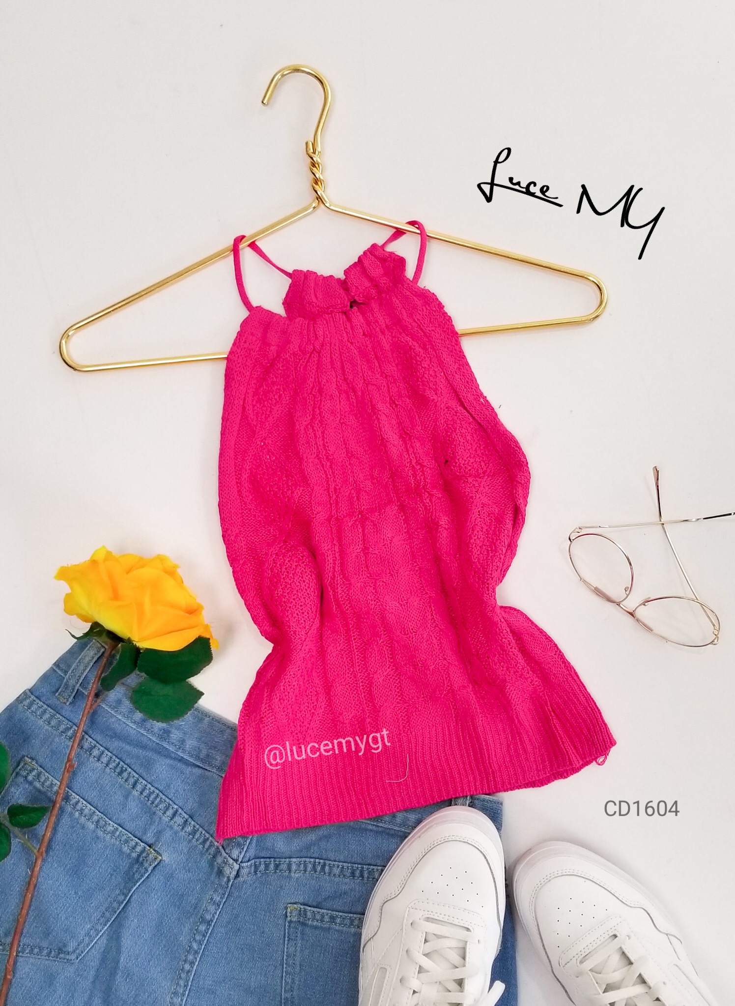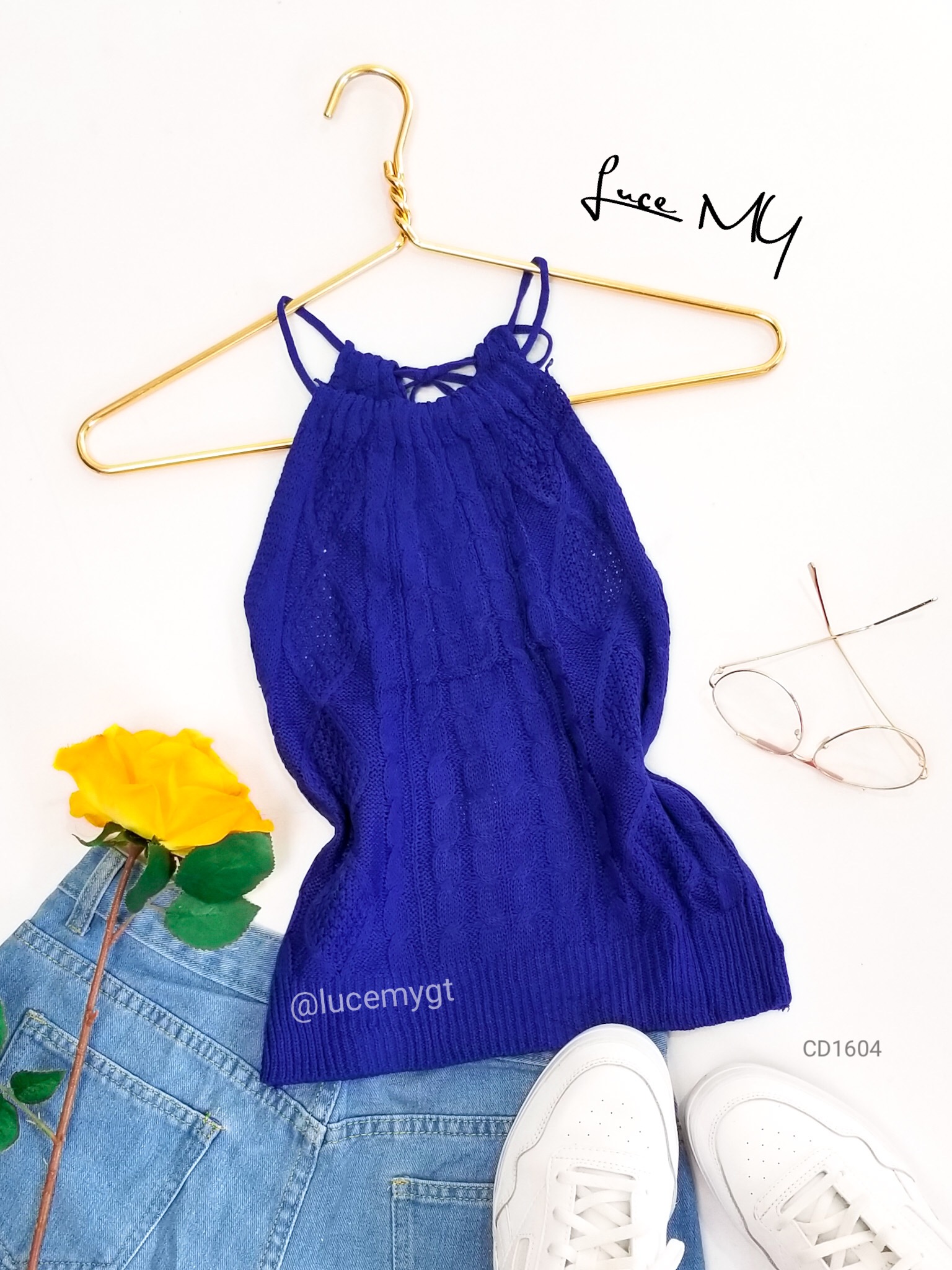 Descripción: Blusa tejida, sin mangas, cuello redondo, cinta ajustable al cuello, muy cómoda de usar