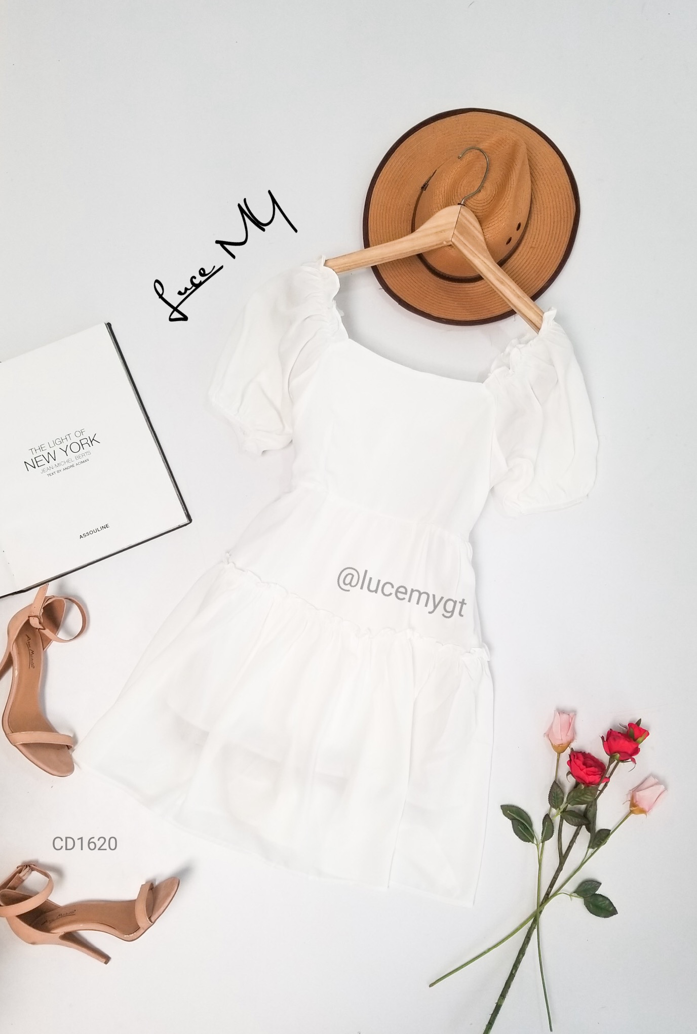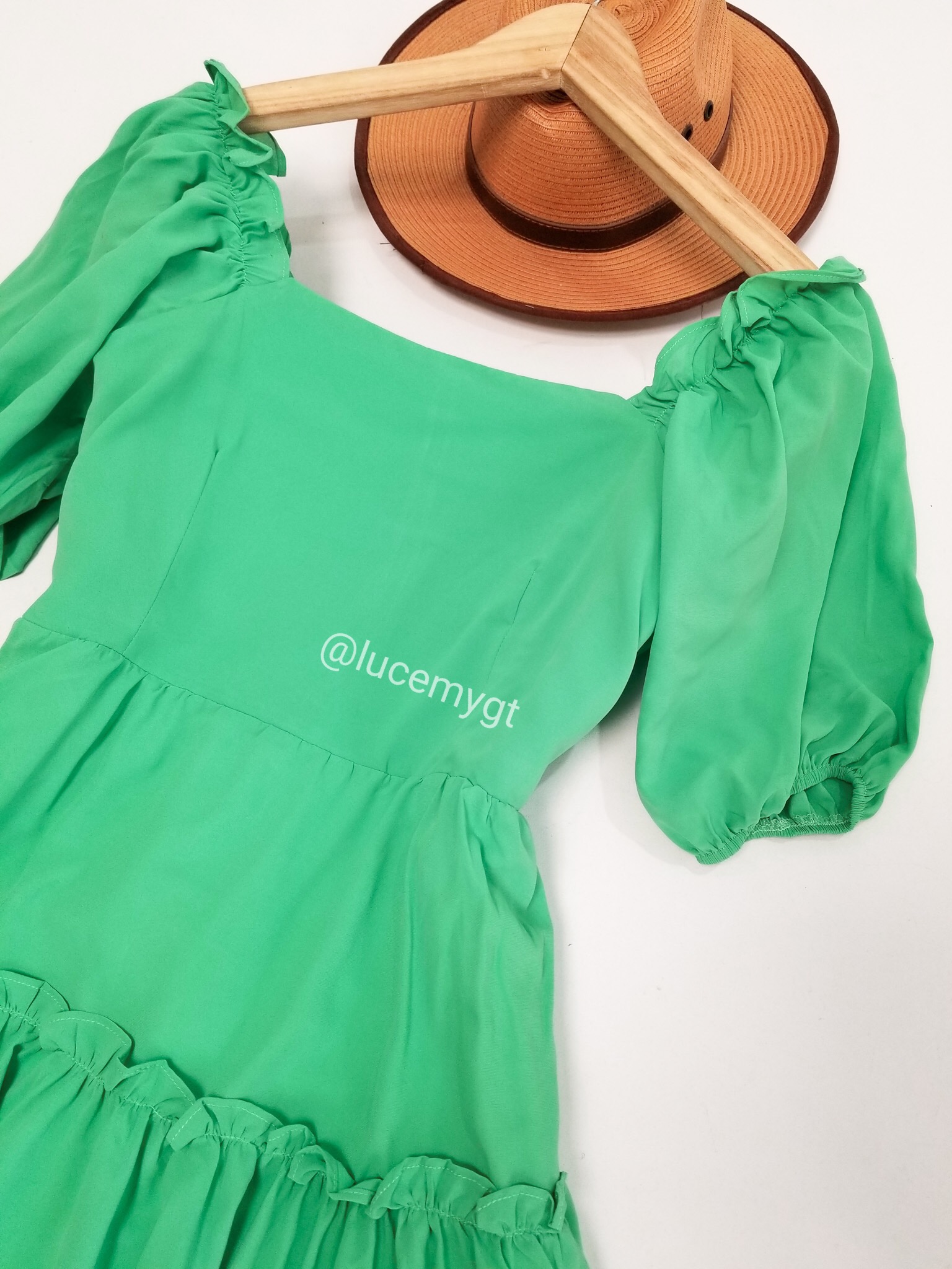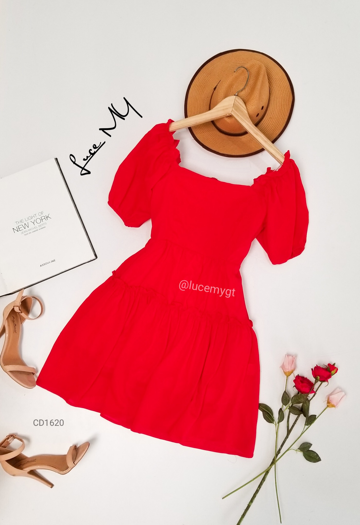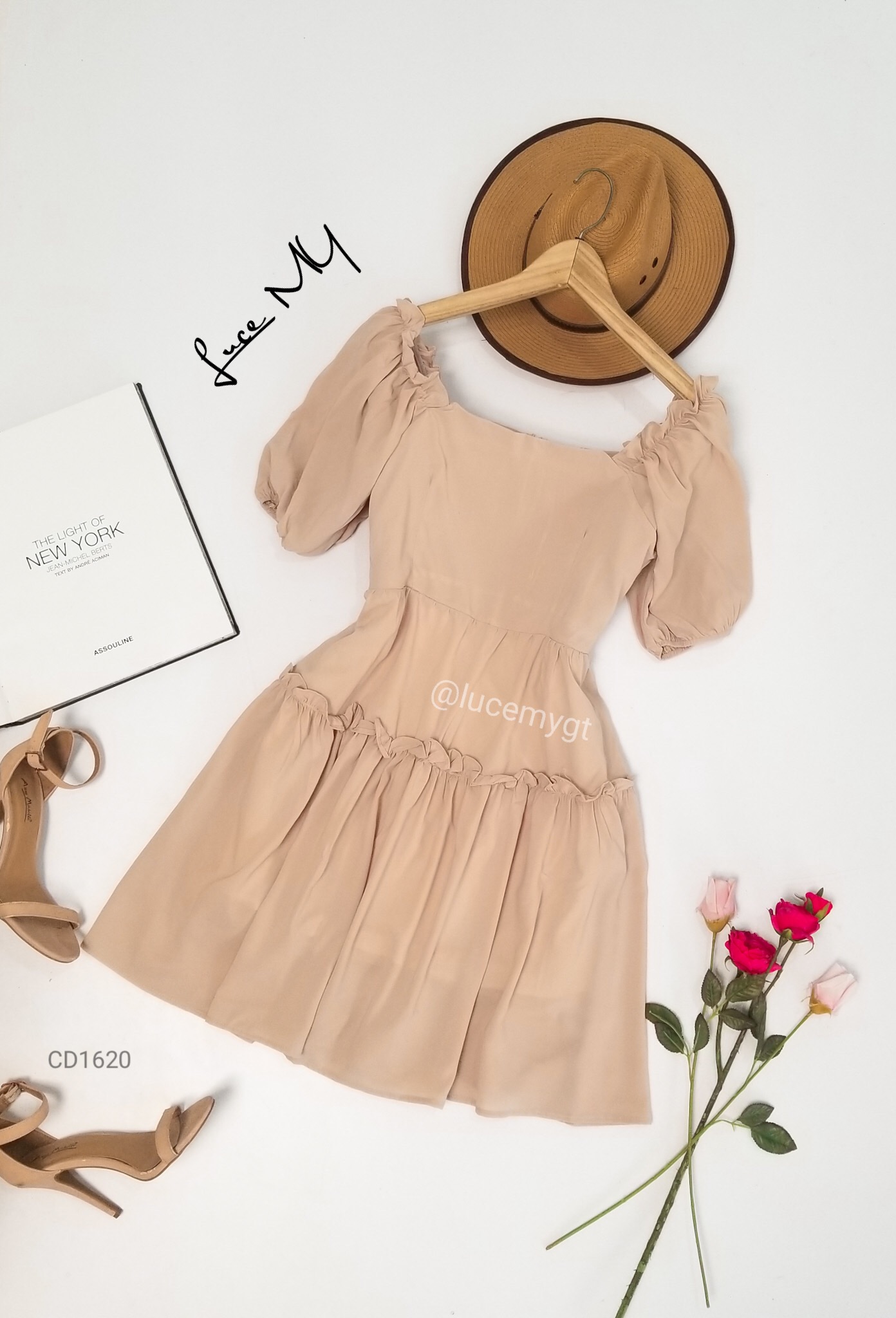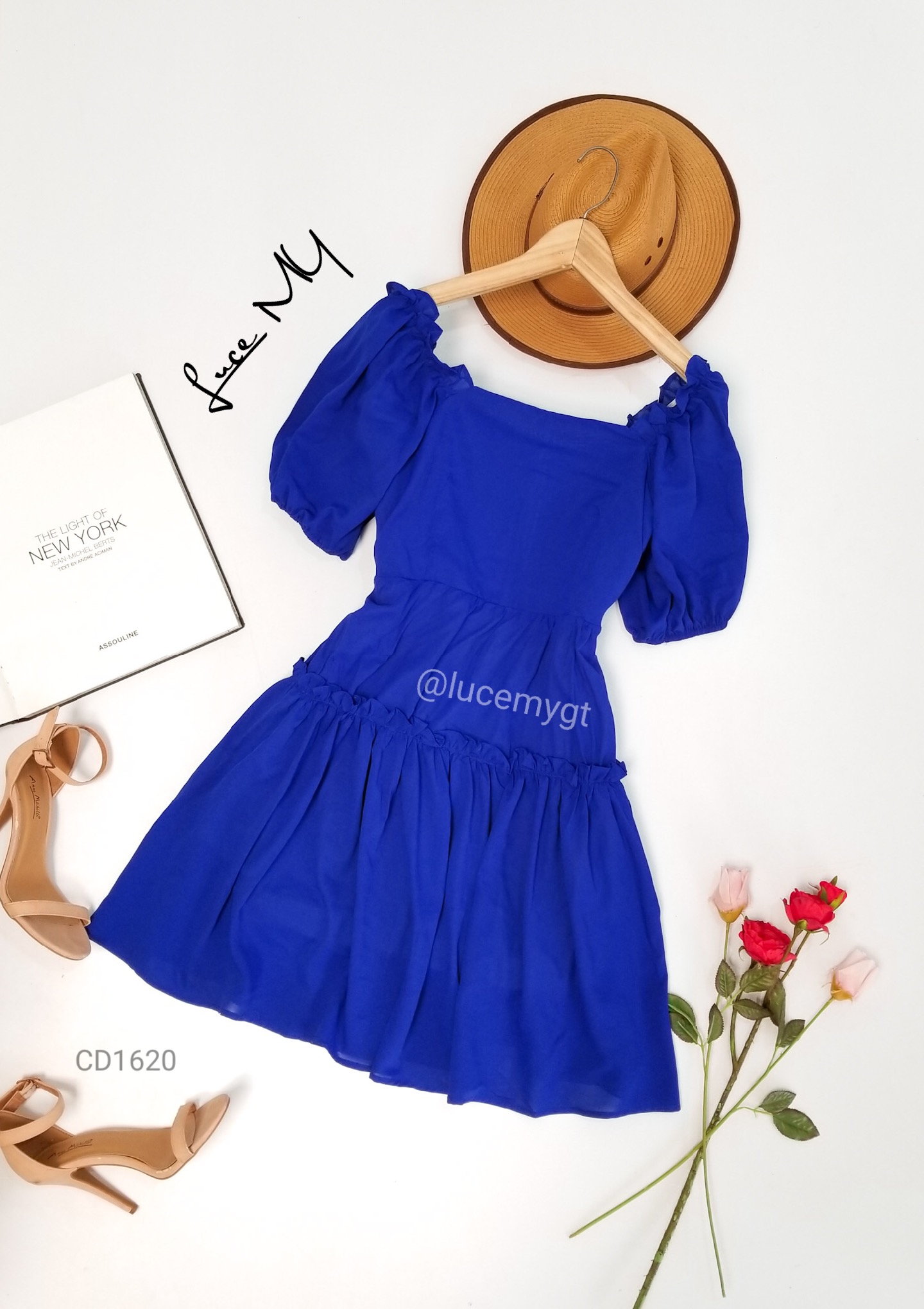 Descripción: Vestido Casual, escote cuadrado, manga corta elástico en las mangas y parte del escote, cremallera invisible en la parte de atrás
