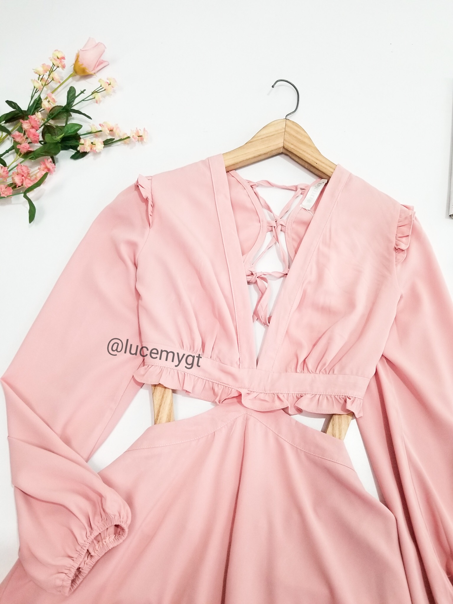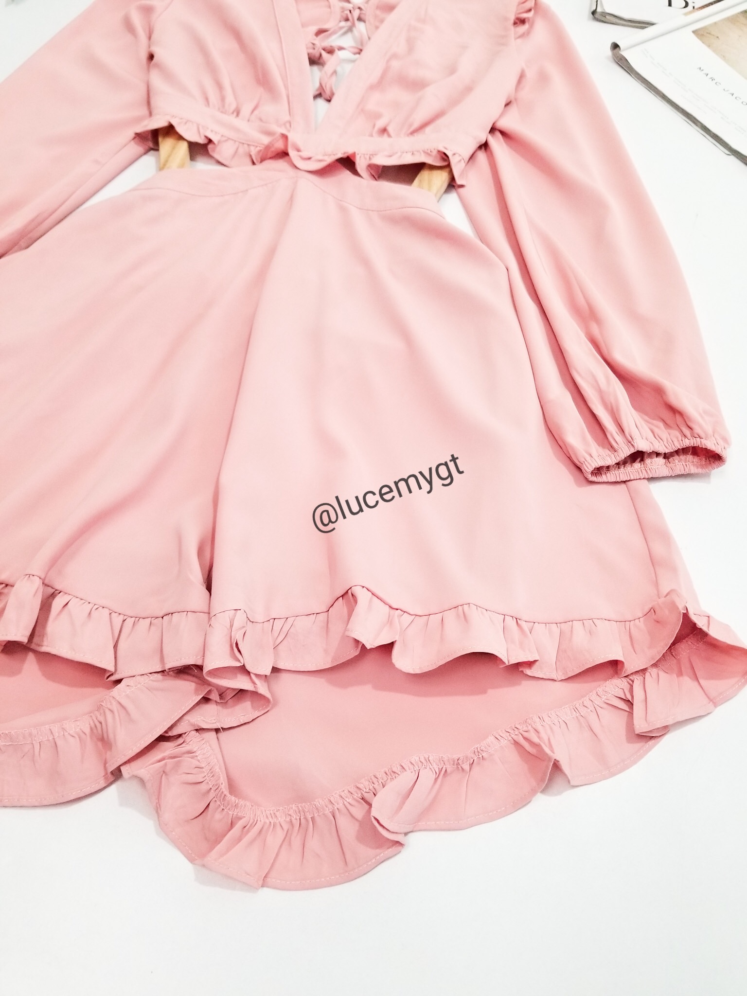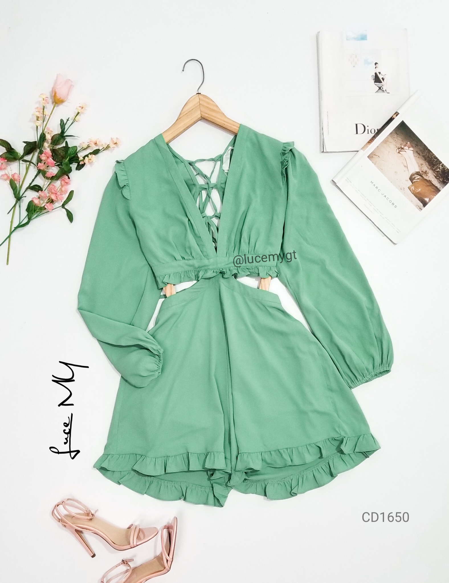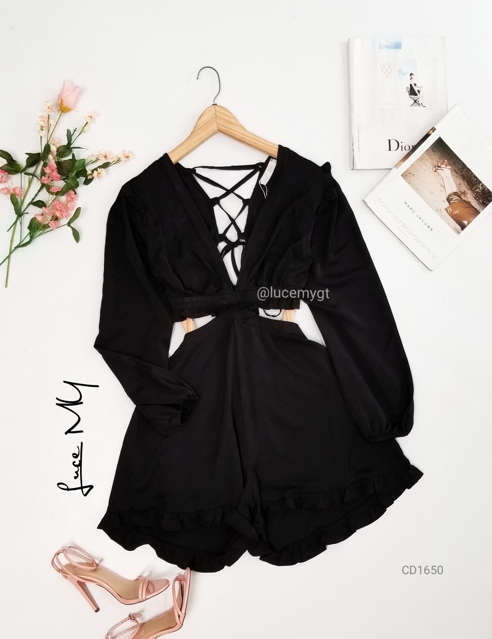 Descripción: Romper Casual, escote V profundo, manga larga en la muñequera con elástico, en la parte de atrás tiene cintas ajustables, y cremallera.