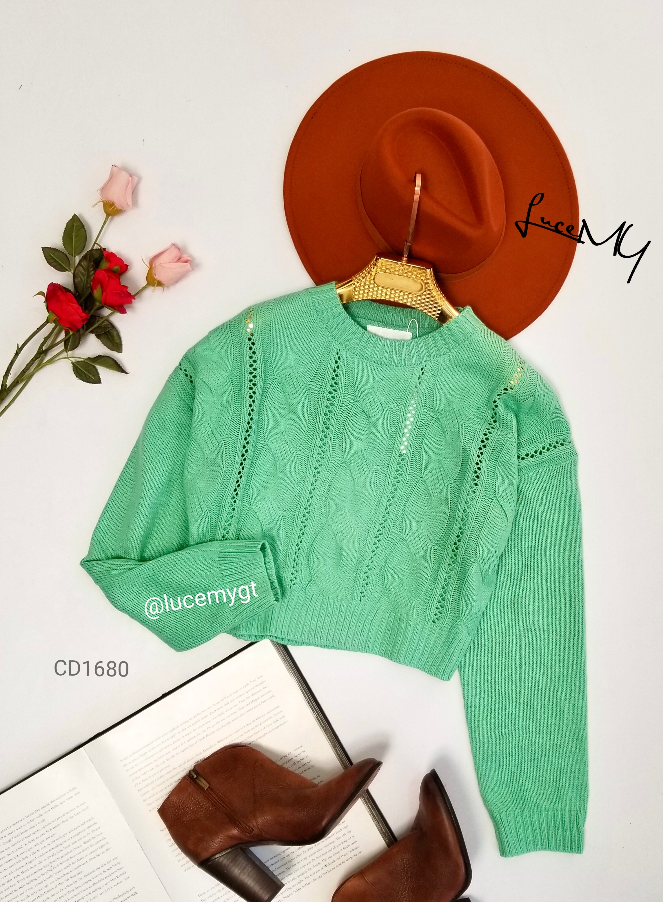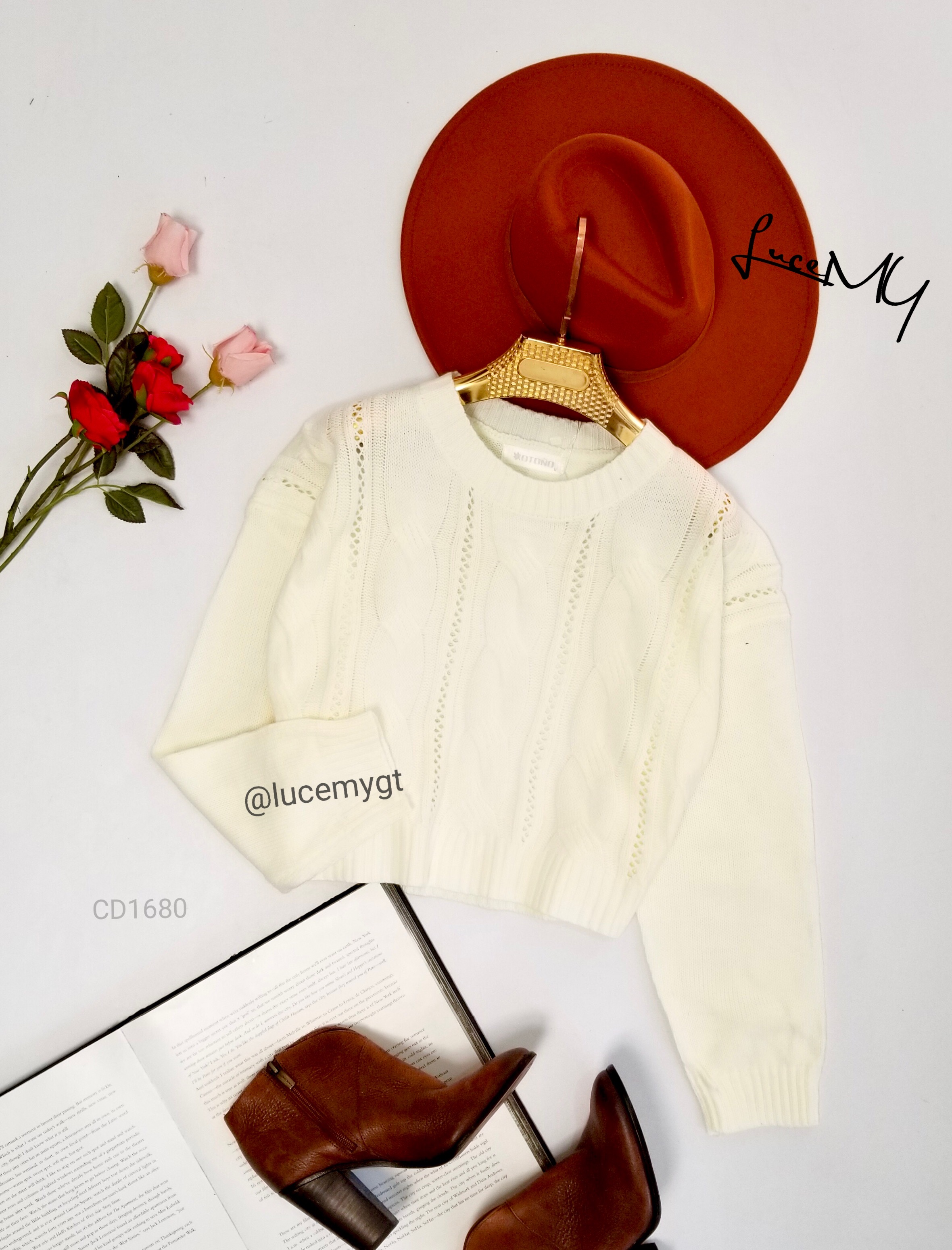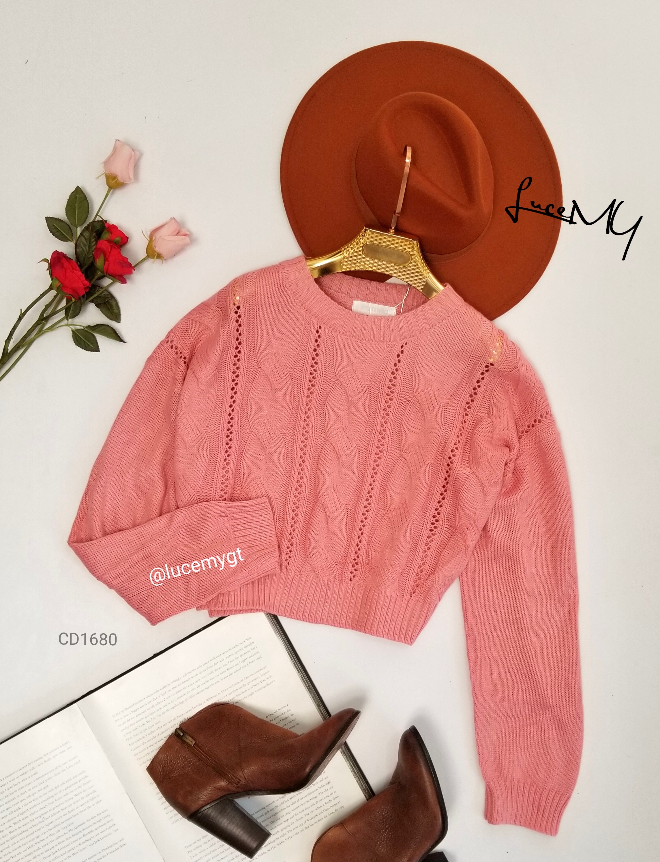 Descripción: Pullover Liviano, cuello redondo, manga larga, bello diseño de trenza y calado.