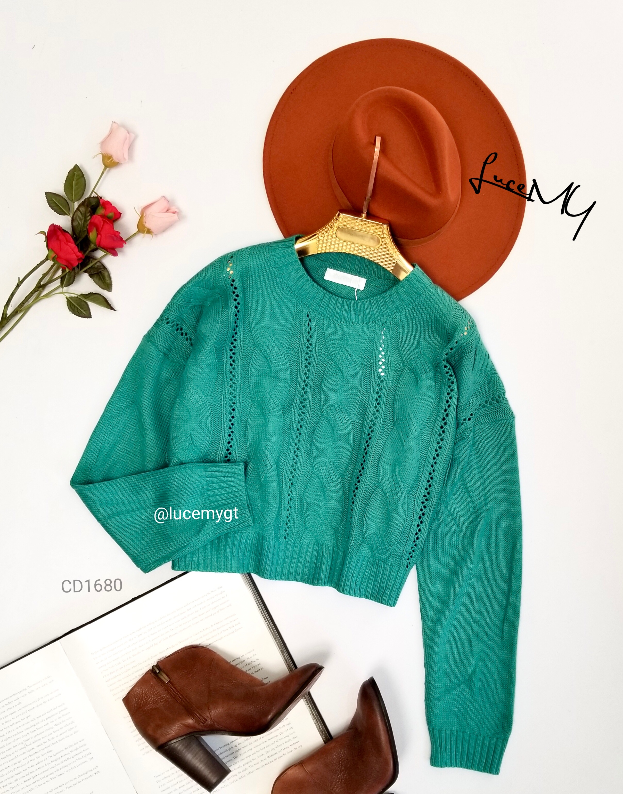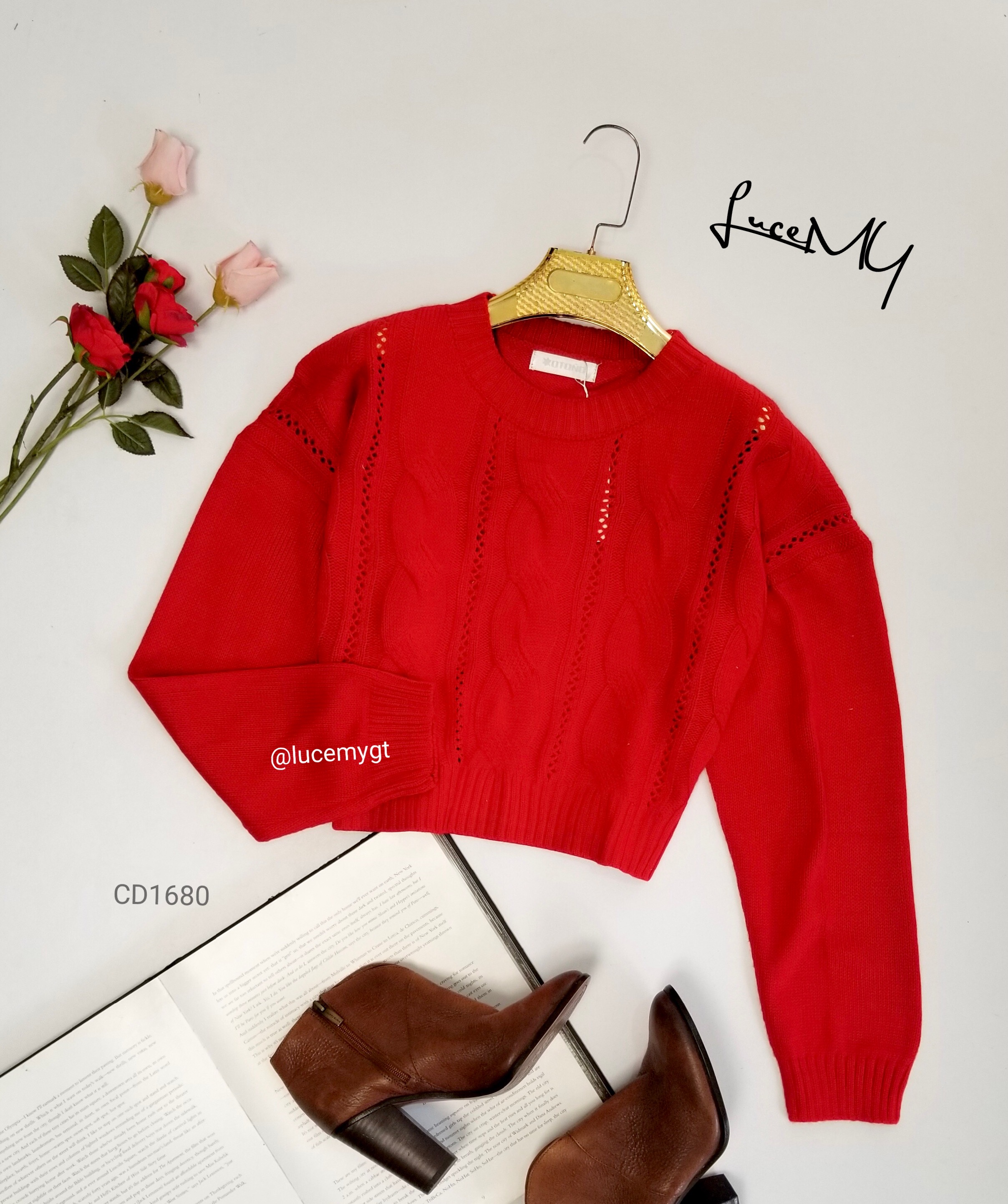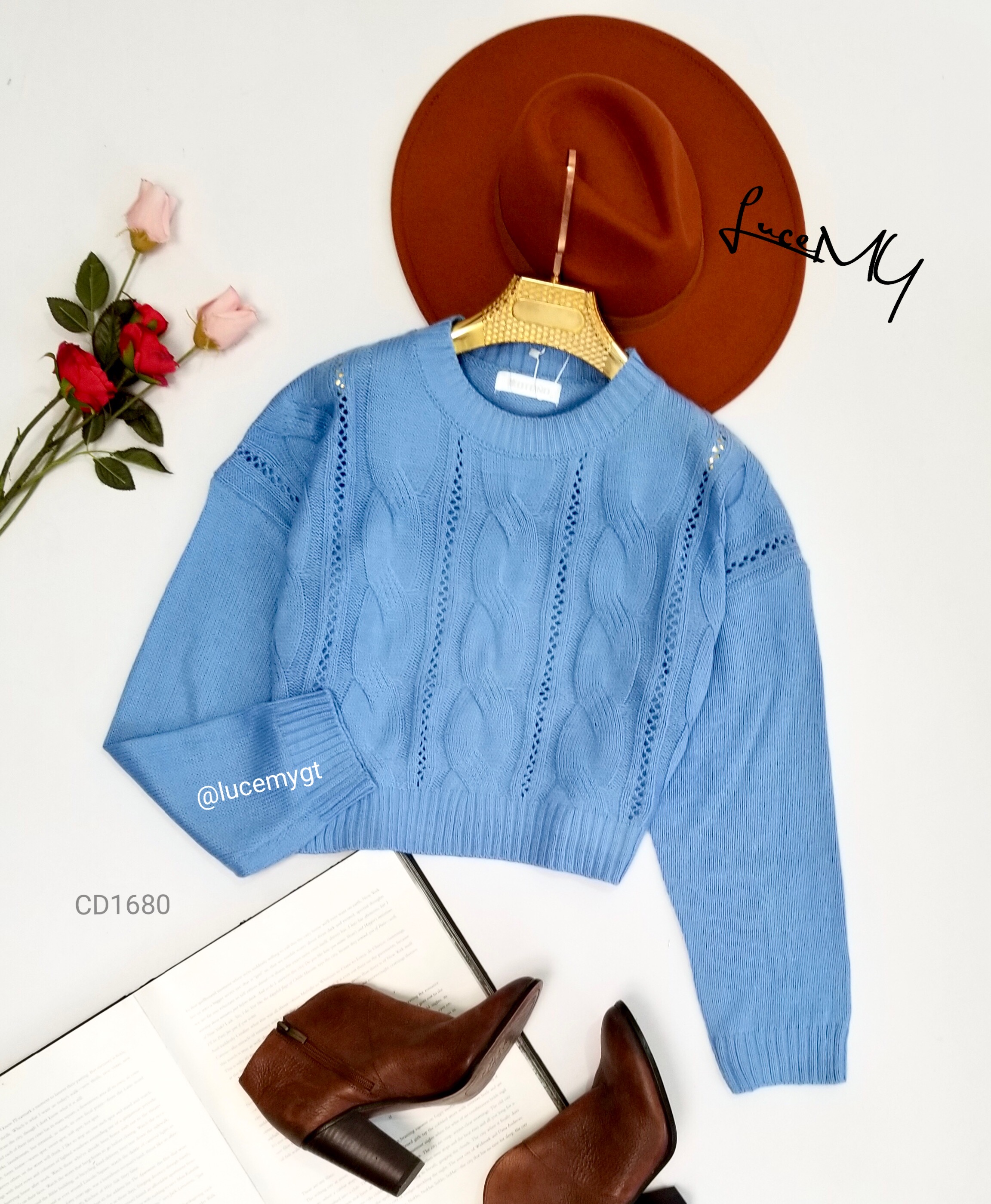 Descripción: Pullover Liviano, cuello redondo, manga larga, bello diseño de trenza y calado.