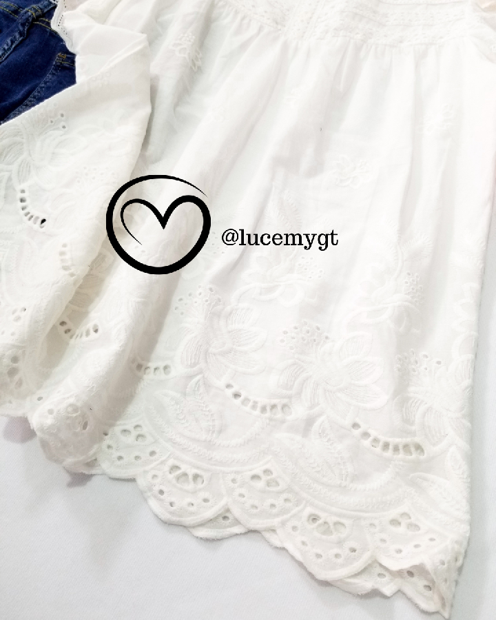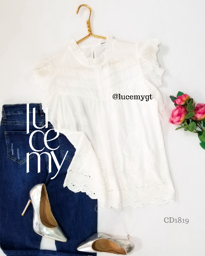 Descripción: Blusa Casual, sin mangas de ribete, cuello redondo plisa dito, calado floral en la blusa muy fresca y cómoda
