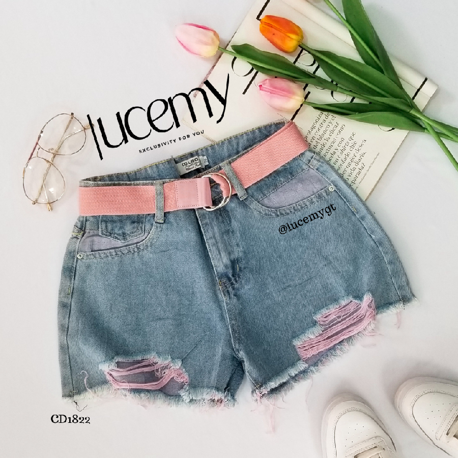 Descripción: Short de Mezclilla, cintura media, incluye su cincho, muy como y practico de usar