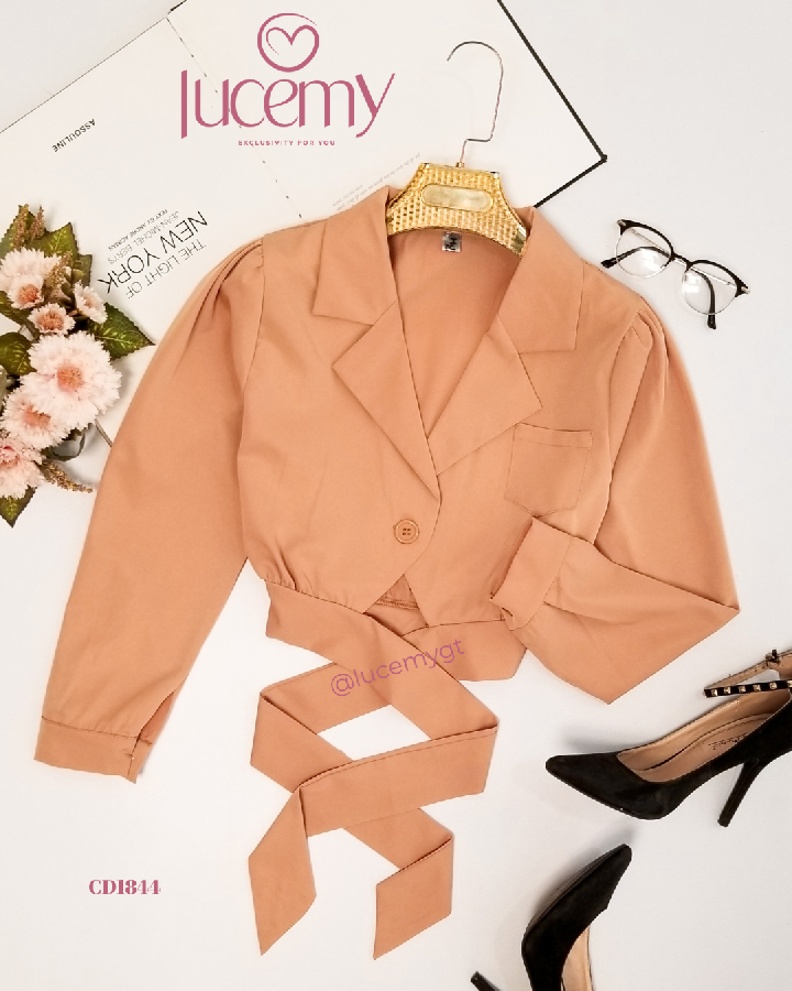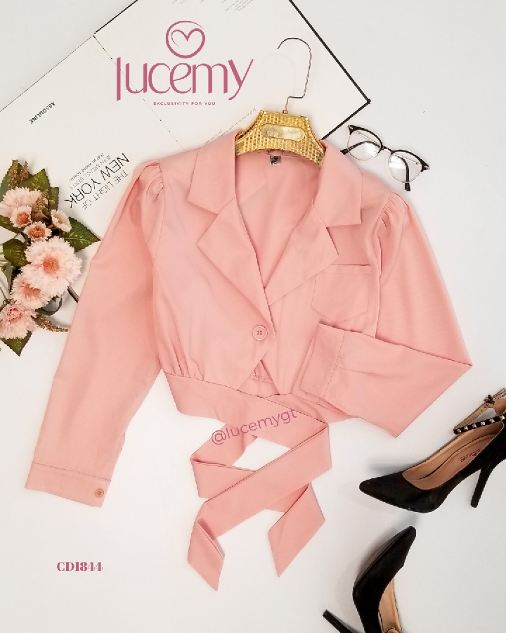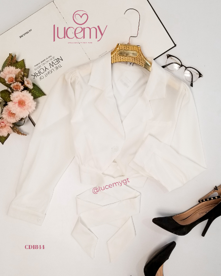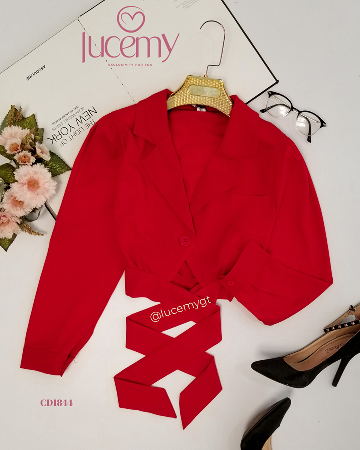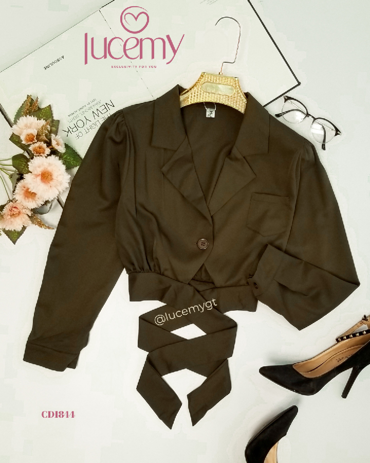 Descripción: Blusa Casual, escote de solapa, manga larga, agujetas ajustable a la cintura