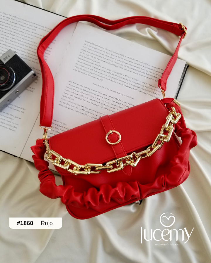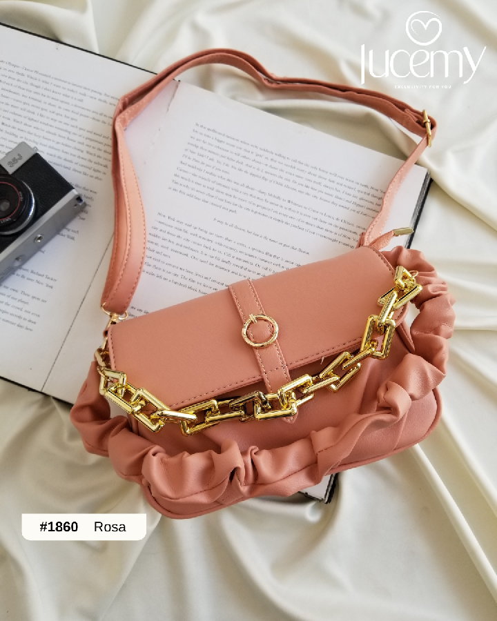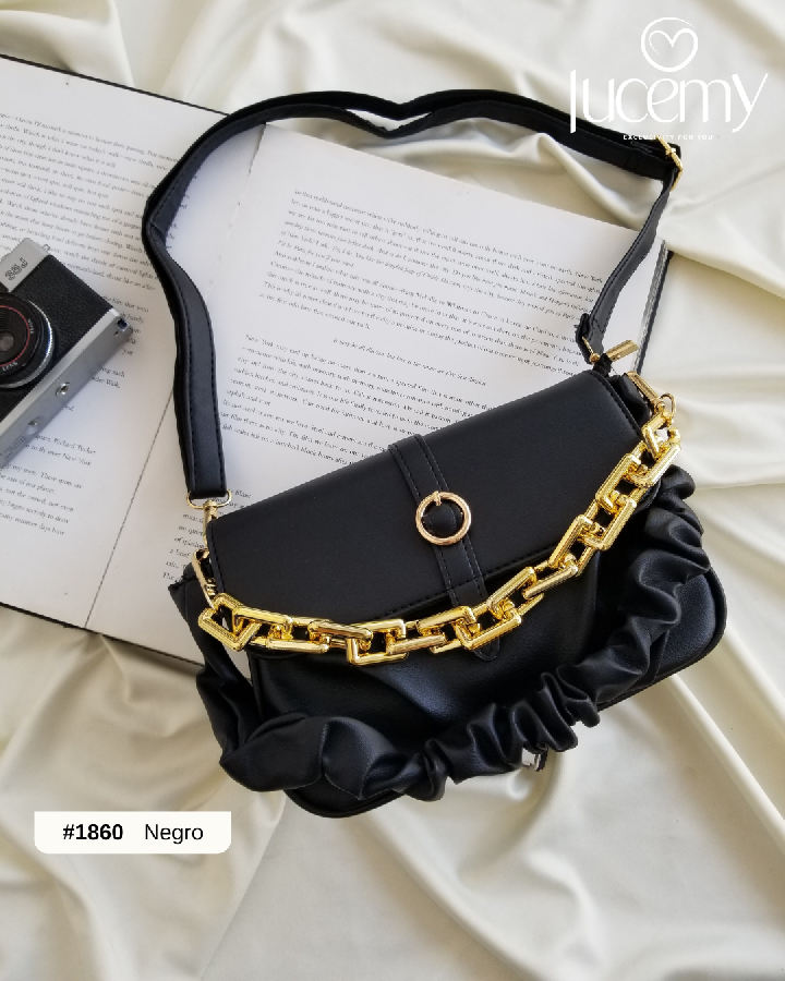 Descripción: Bolso Casual, decorativo una cadena dorada, agarradera forrada del mismo material, cincho ajustable, muy bella y fácil de combinar