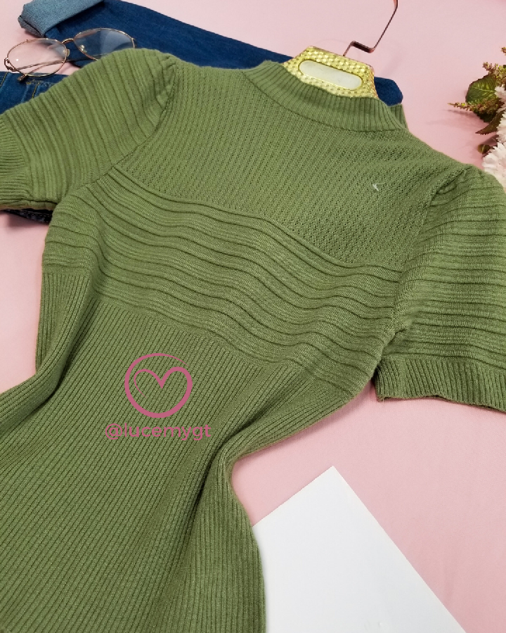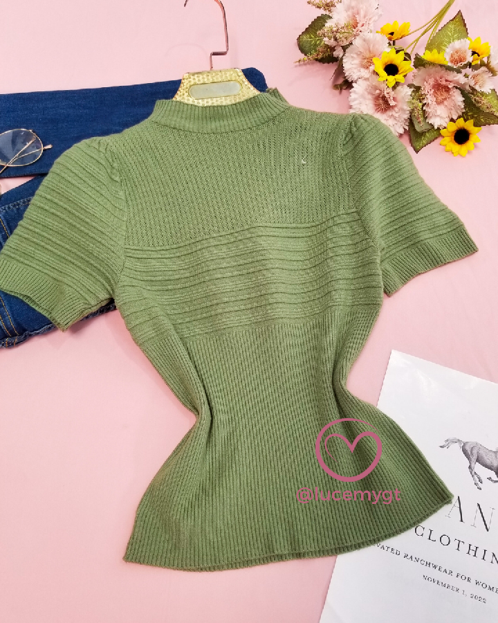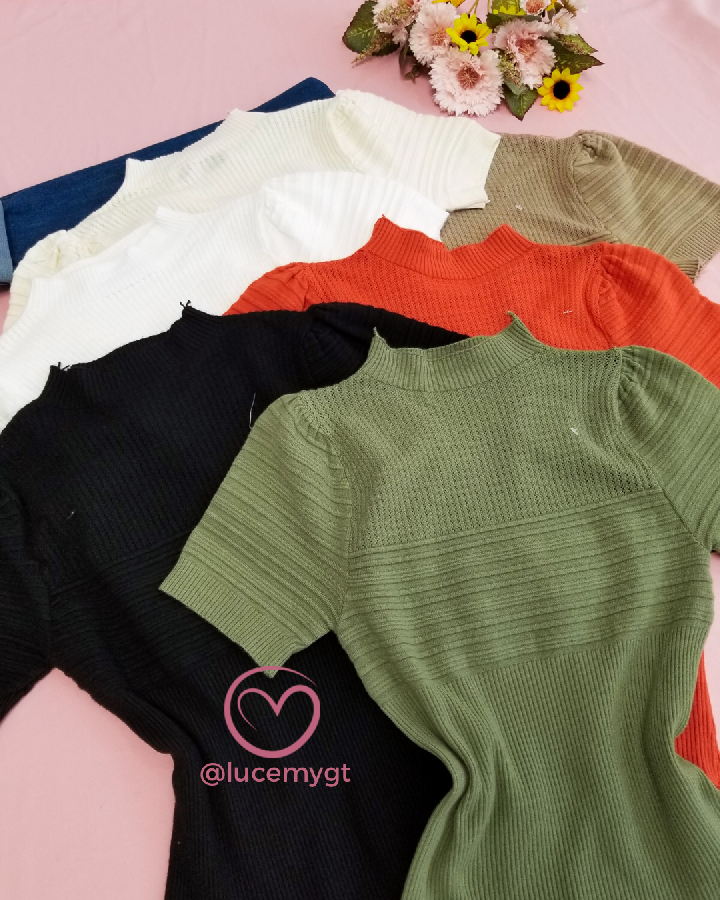 Descripción: Blusa Acanalada, cuello medio alto, manga corta y la puedes usar como manga larga, está en todo no puede faltar a tu closet esta bella blusa