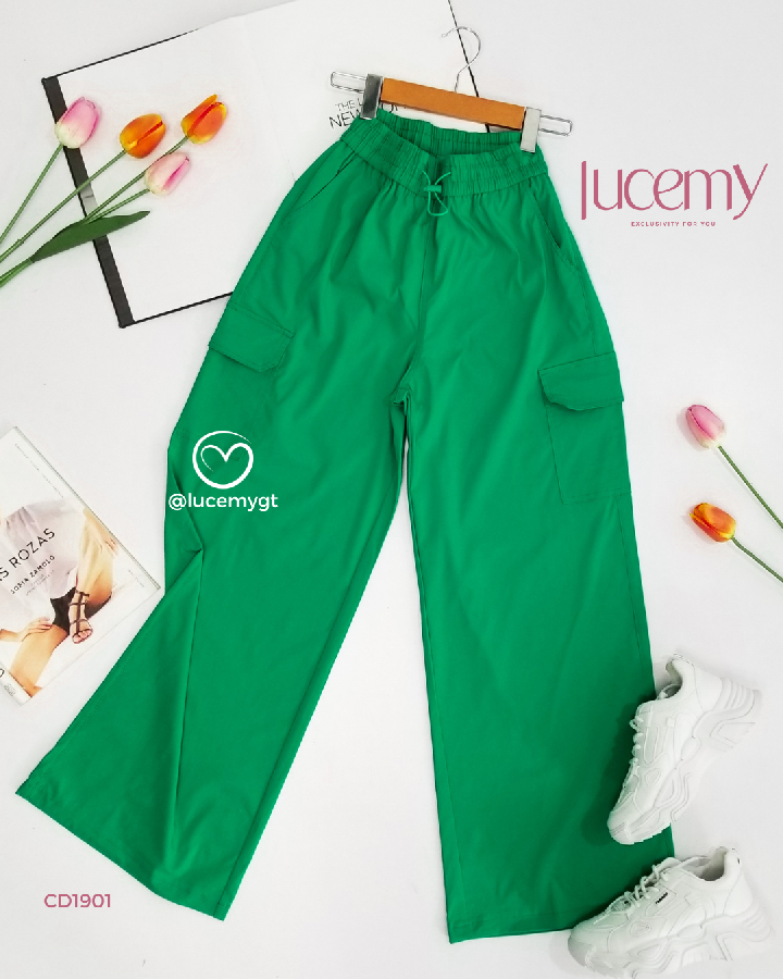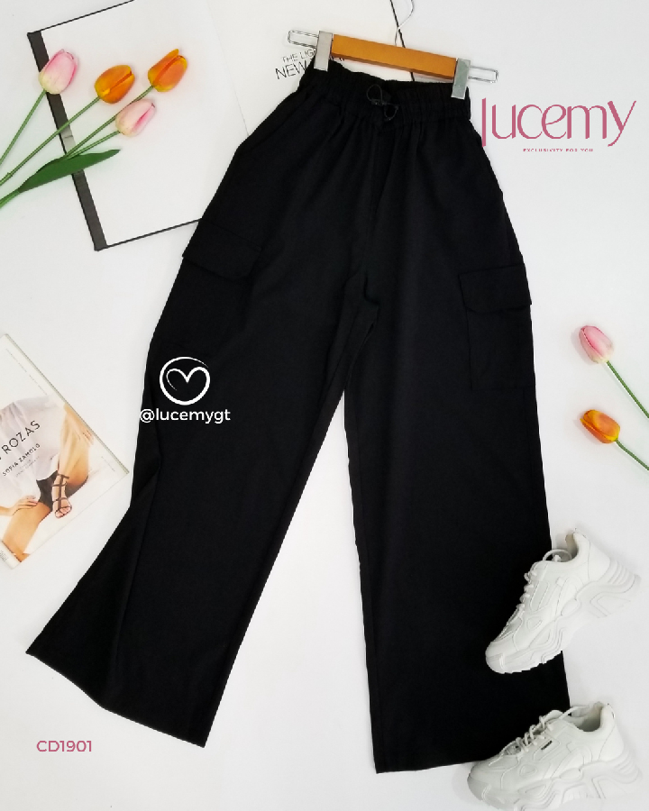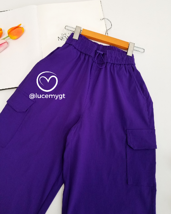 Descripción: Pantalón cargo, cintura alta con elástico, bolsillos a los lados