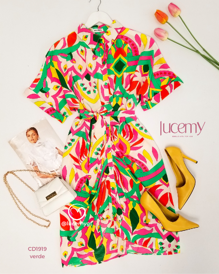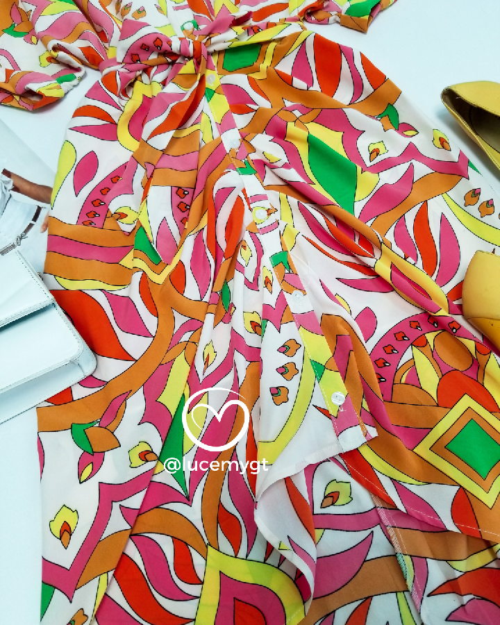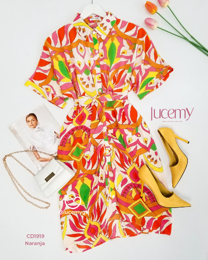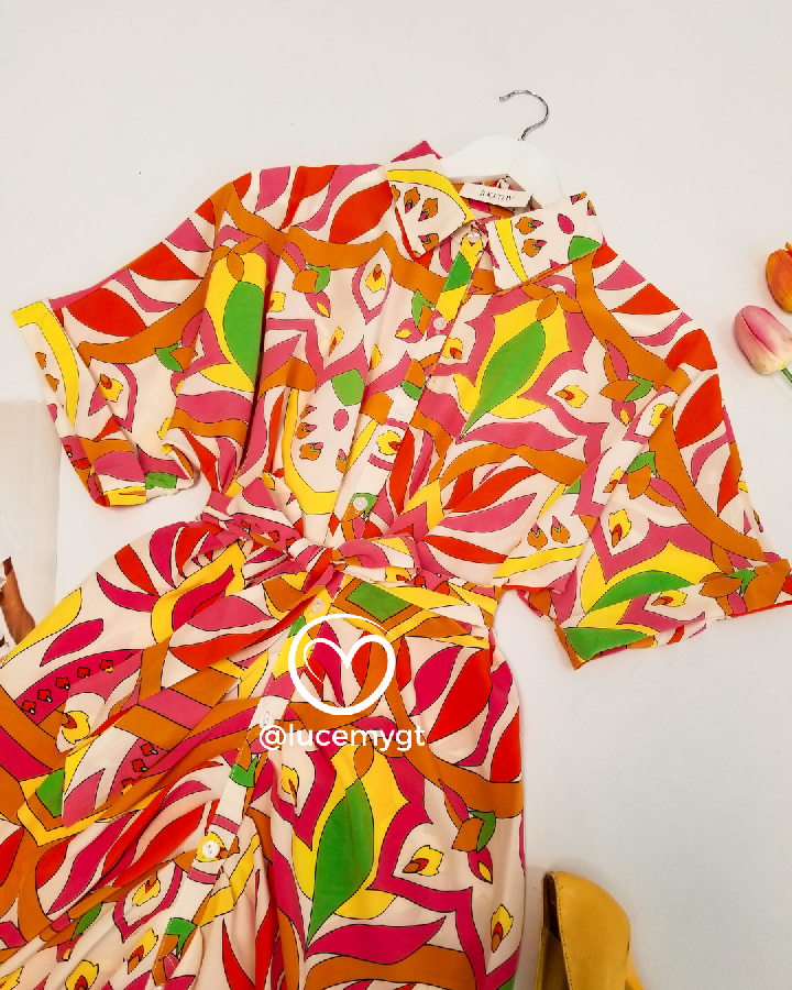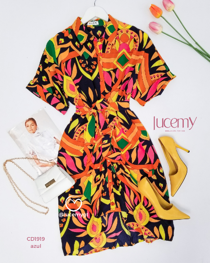 Descripción: Vestido Camisero, botones en la parte de enfrente, manga corta, cinta ajustable.