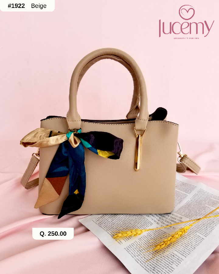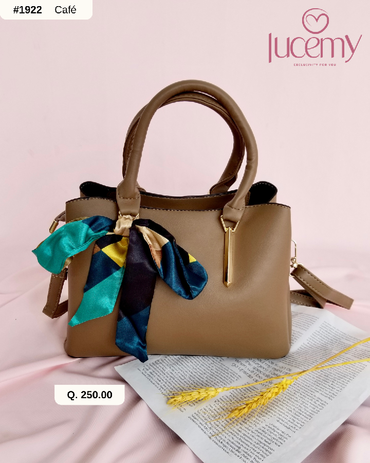 Descripción: Bolso semi rectangular con detalles dorados. Asas de hombro ajustable y asas de mano. 3 divisiones con cierre mediante cremallera y cierre mediante imán. Liston como accesorio.