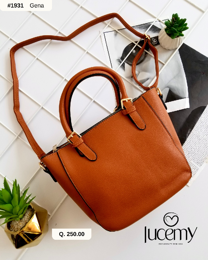 Descripción: Bolso semi cuadrado, cuerpo de piel abatanada. Asa de hombro ajustable y asa de mano ajustable. Cierre mediante cremallera.