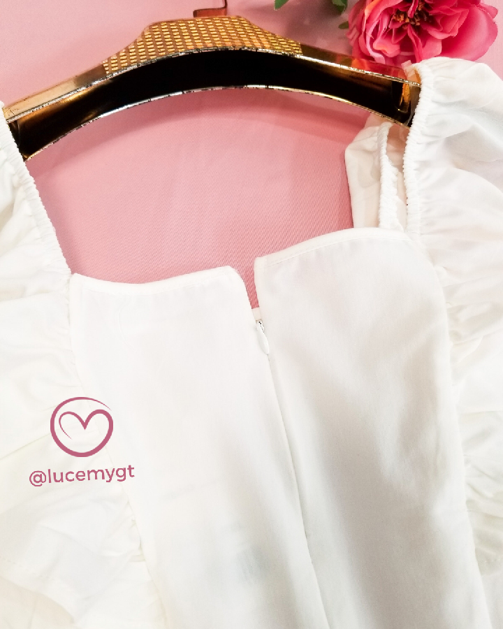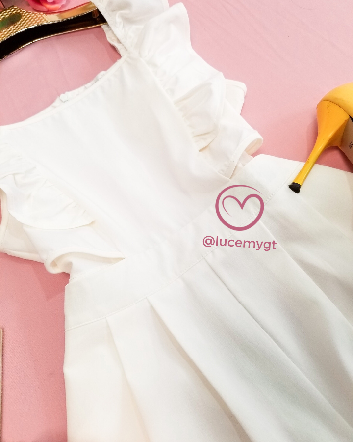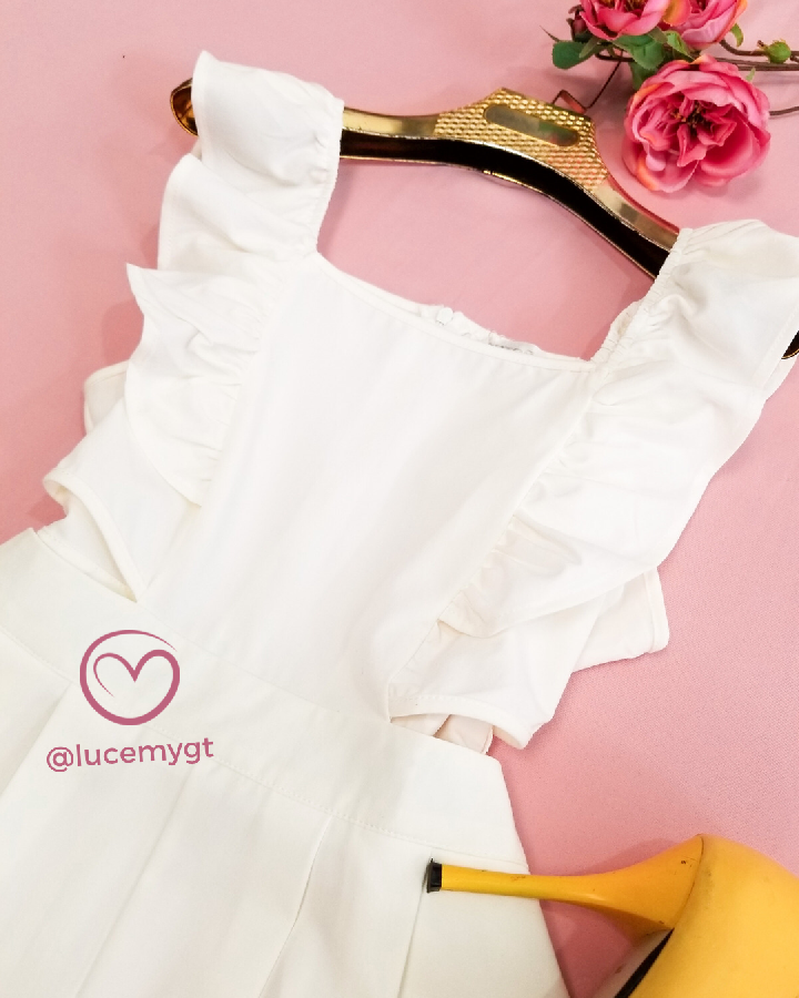 Descripción: Romper Casual, sin mangas de vuelitos, tiene abertura en la cintura de los lados, bolsillos a los lados, cremallera en la parte de atrás.