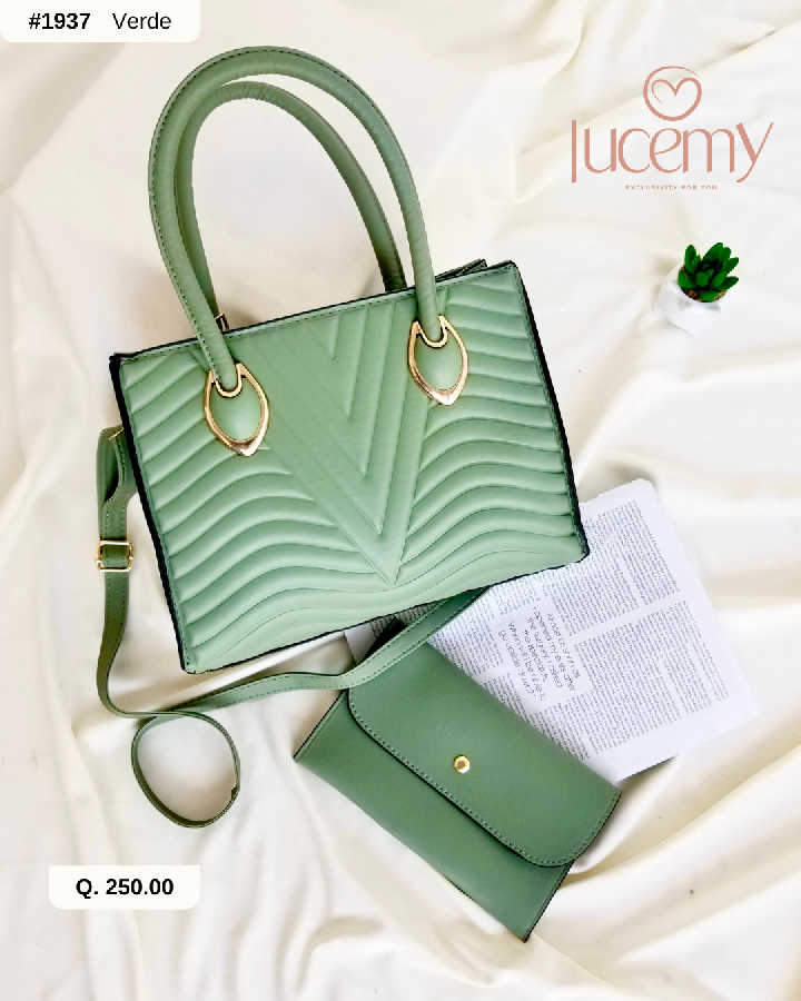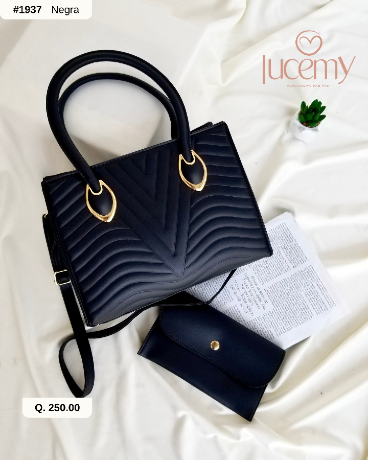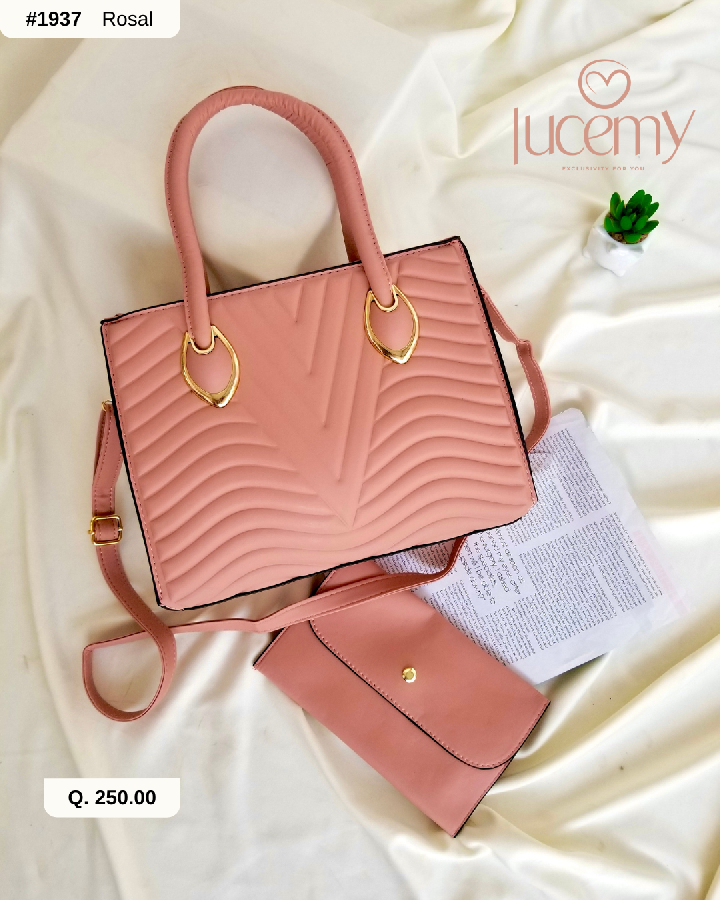 Descripción: Bolso Mediano, agarrador de mano, cincho ajustable, cremallera, cuenta con tres divisiones, tiene un diseño de ondulaciones muy hermosa, cuenta con una bolsa pequeña de mano
