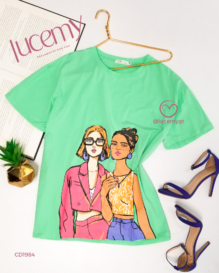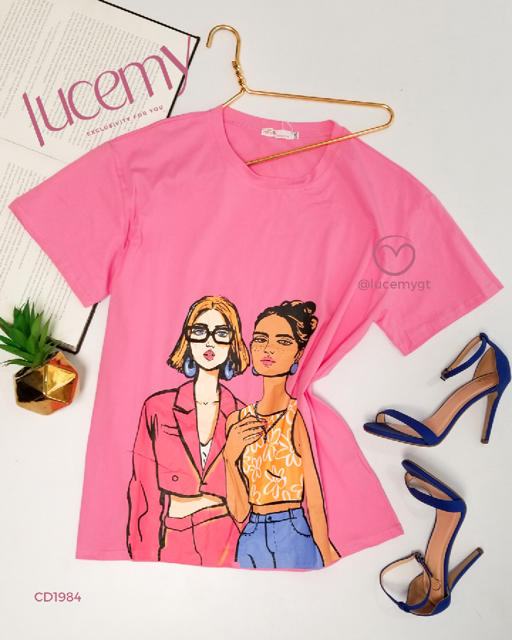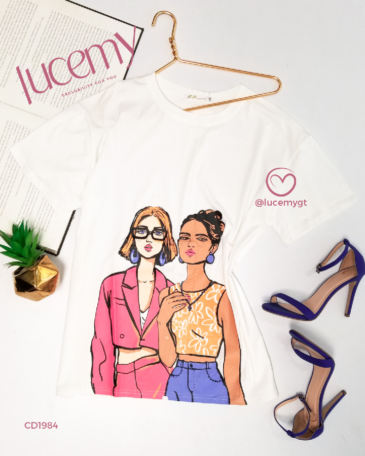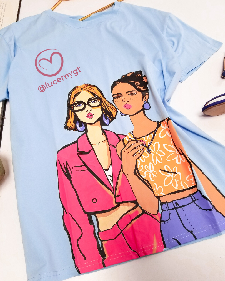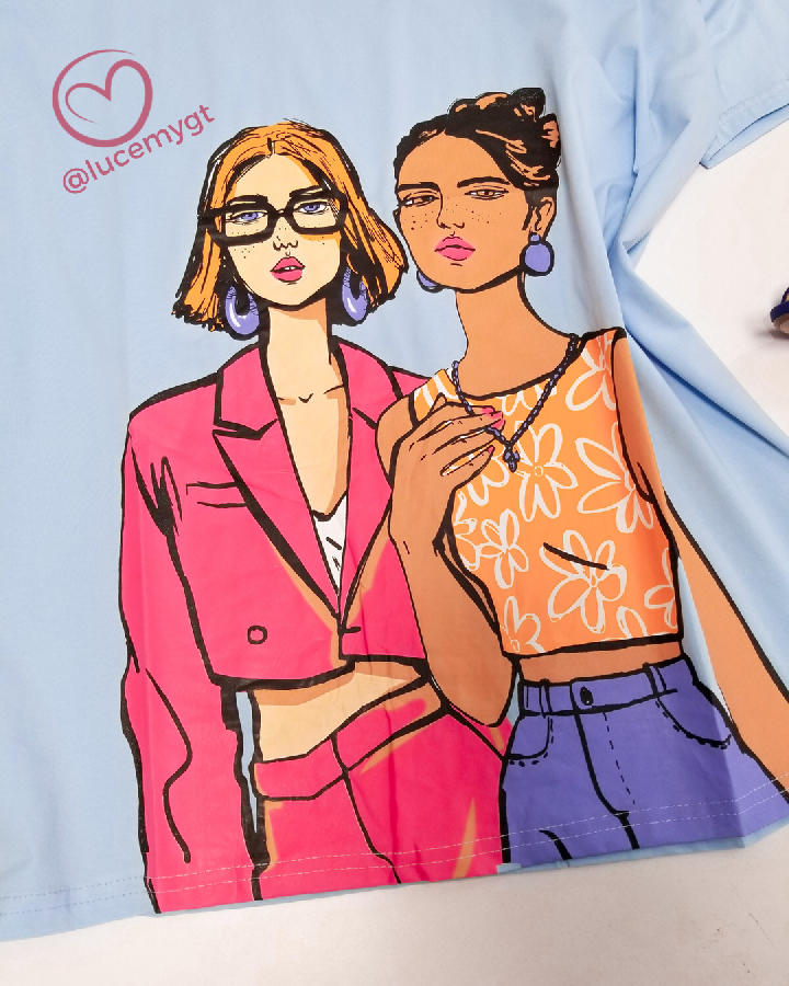 Descripción: T-Shirts Girls, cuello redondo, manga corta, con un bello de diseño de chicas Fashionistas