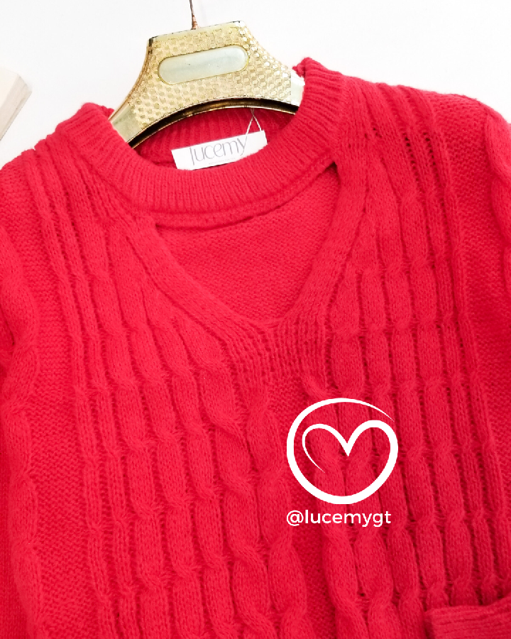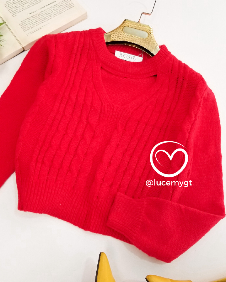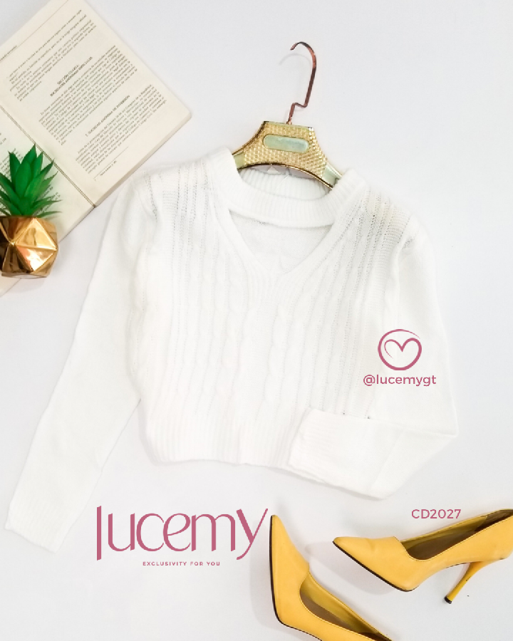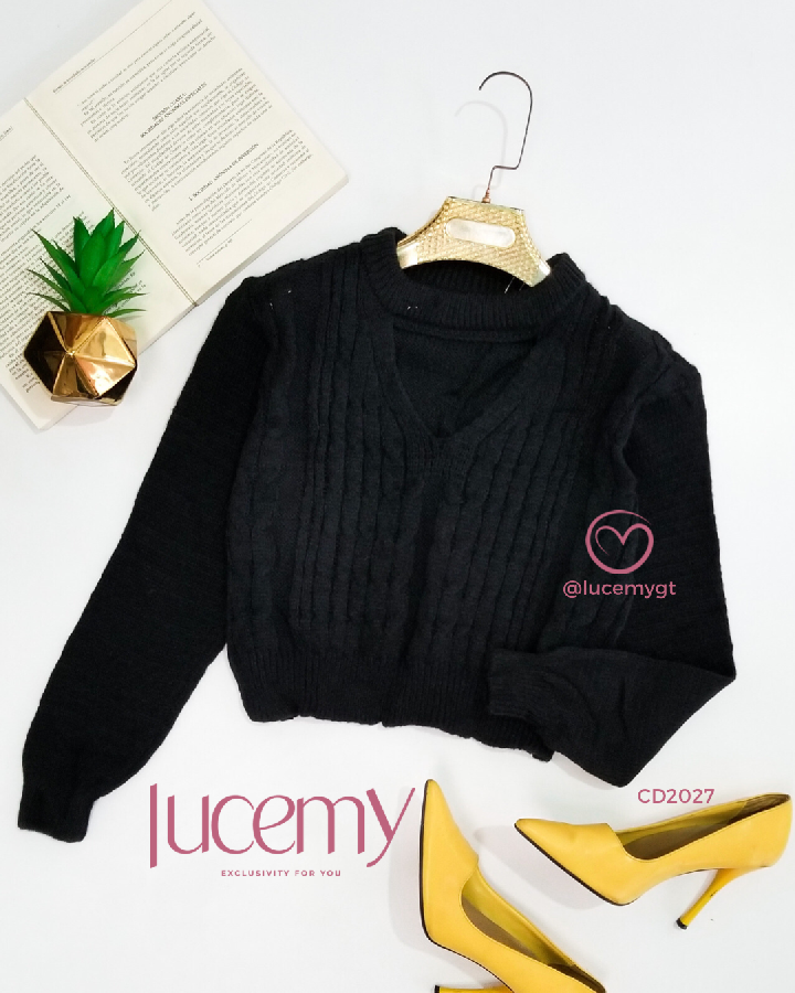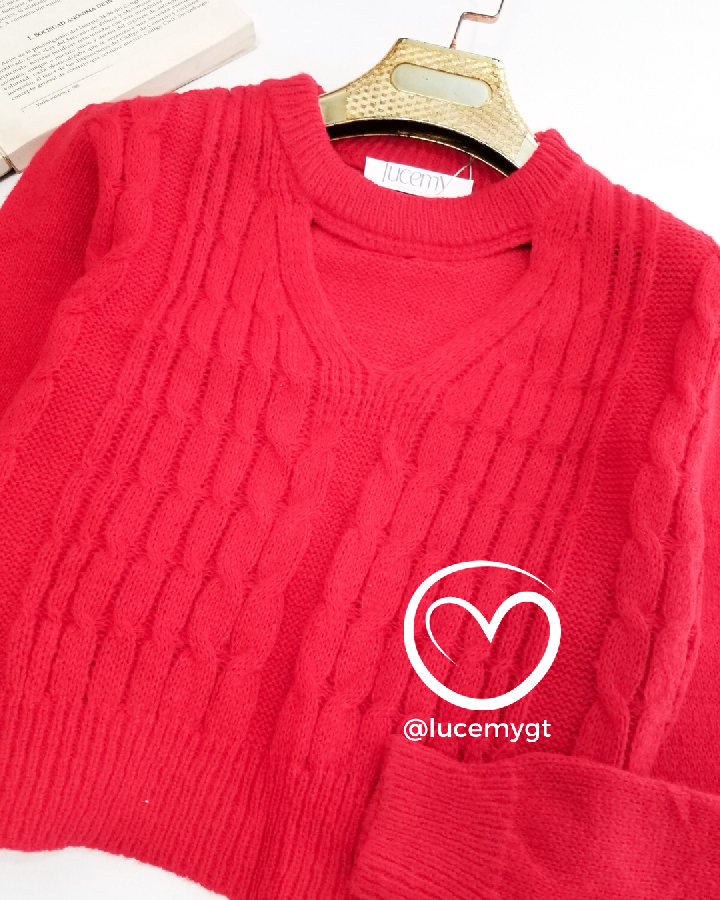 Descripción: Suéter, con abertura V, manga larga.