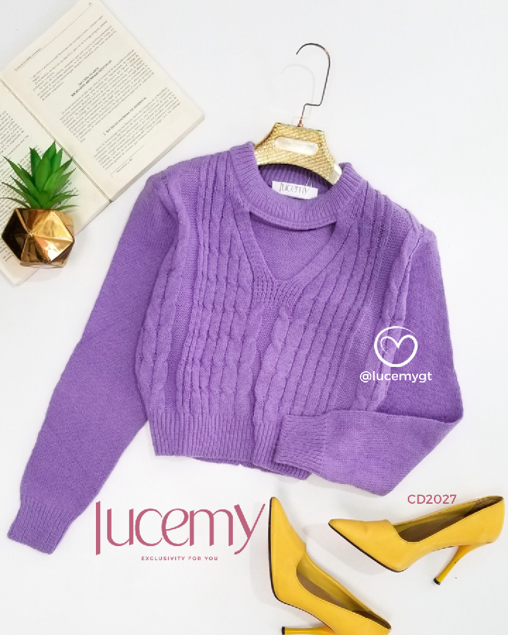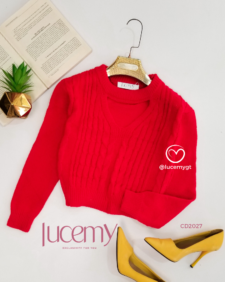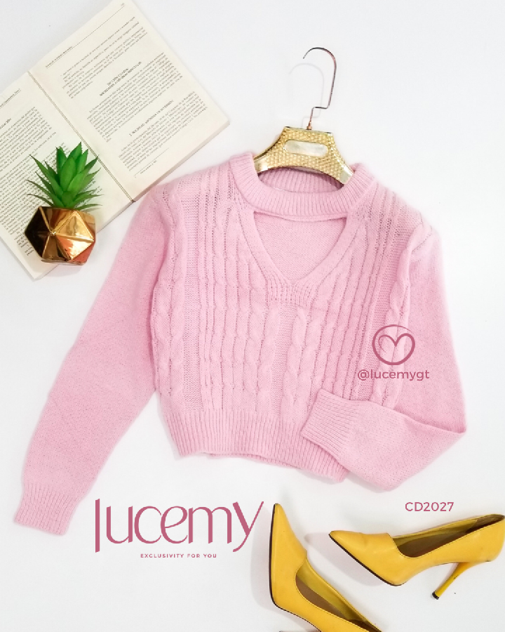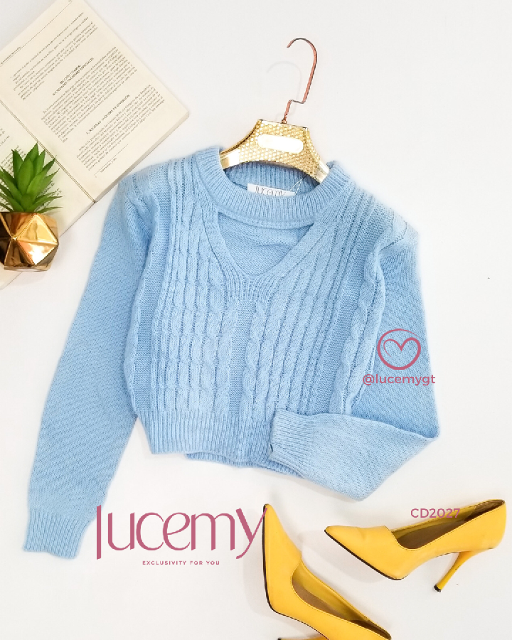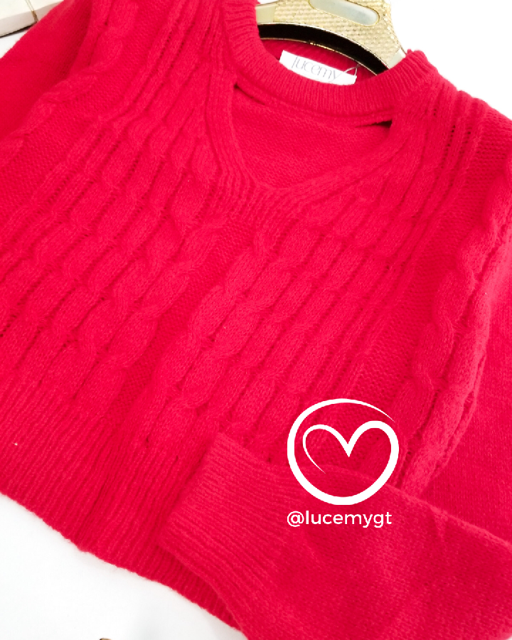 Descripción: Suéter, con abertura V, manga larga.