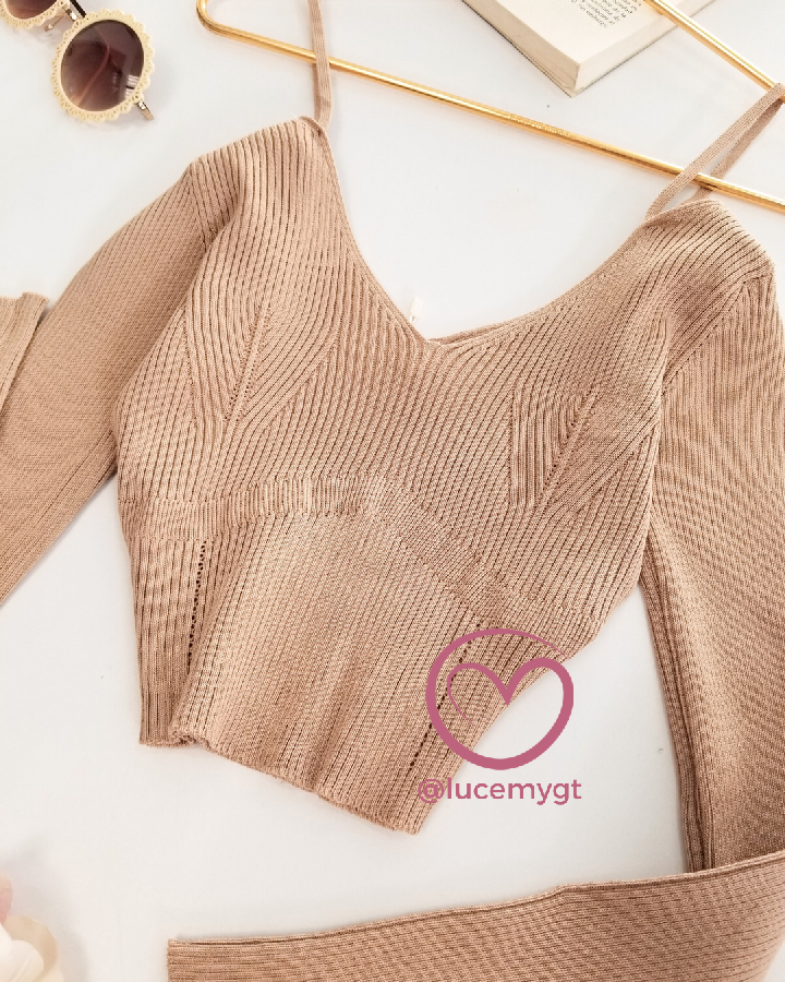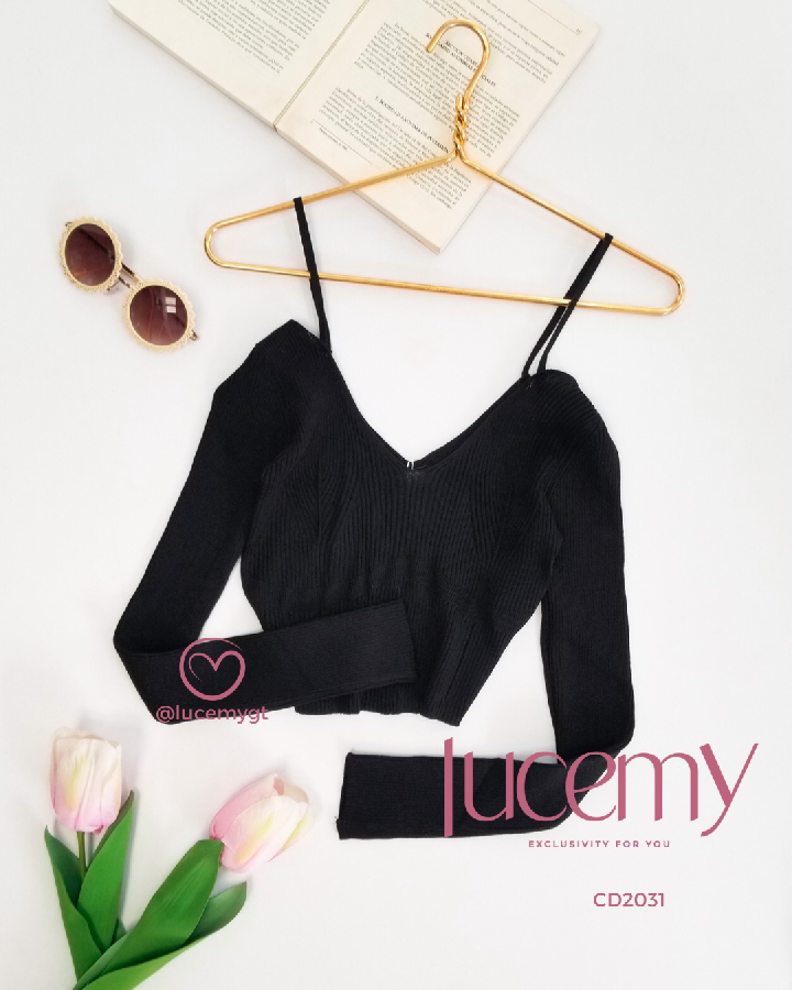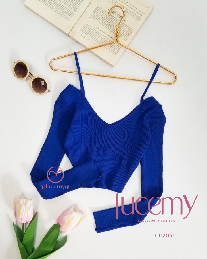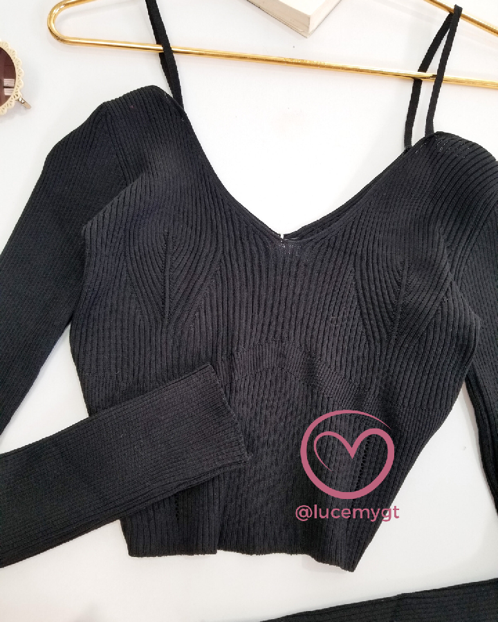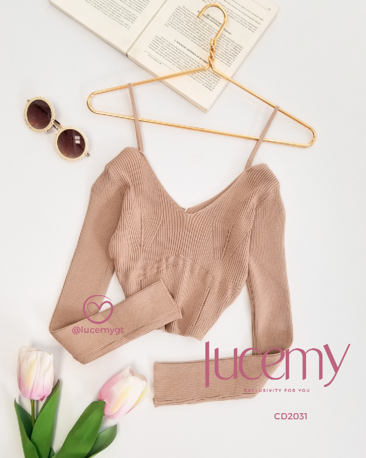 Descripción: Blusa acanalada, manga larga, con escote V, con tirantes