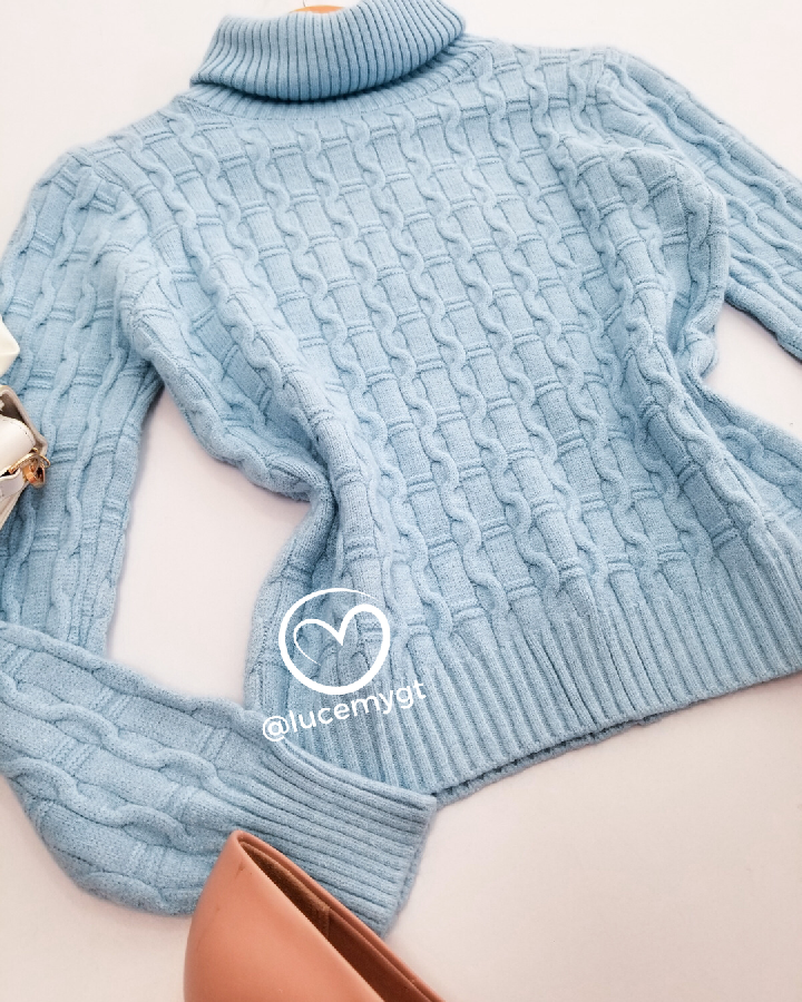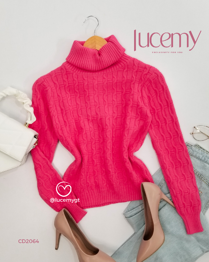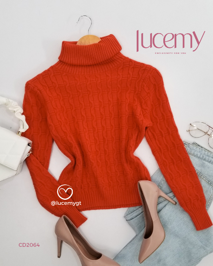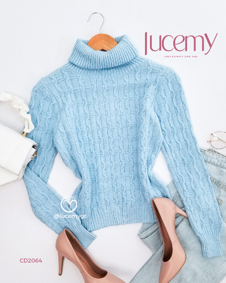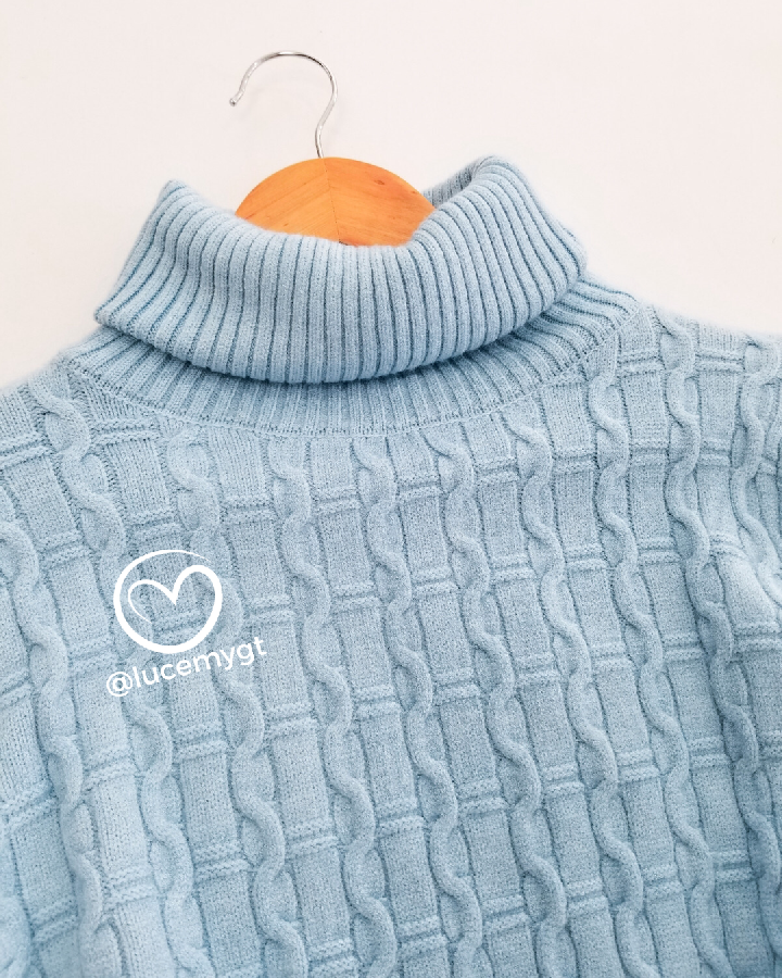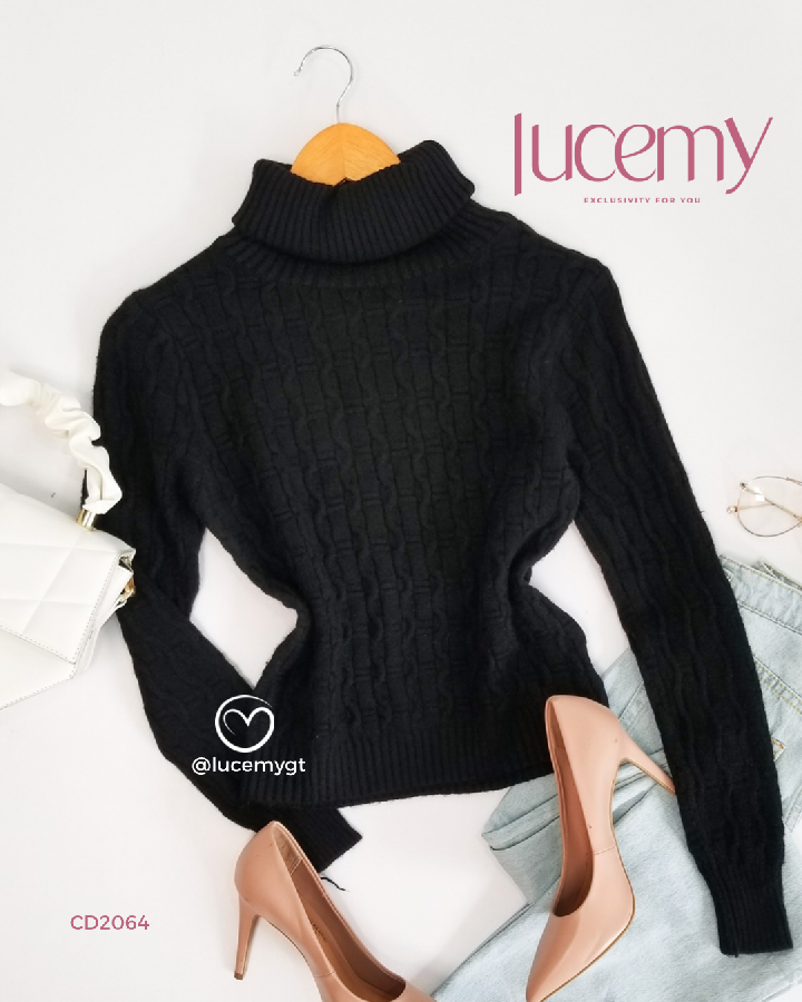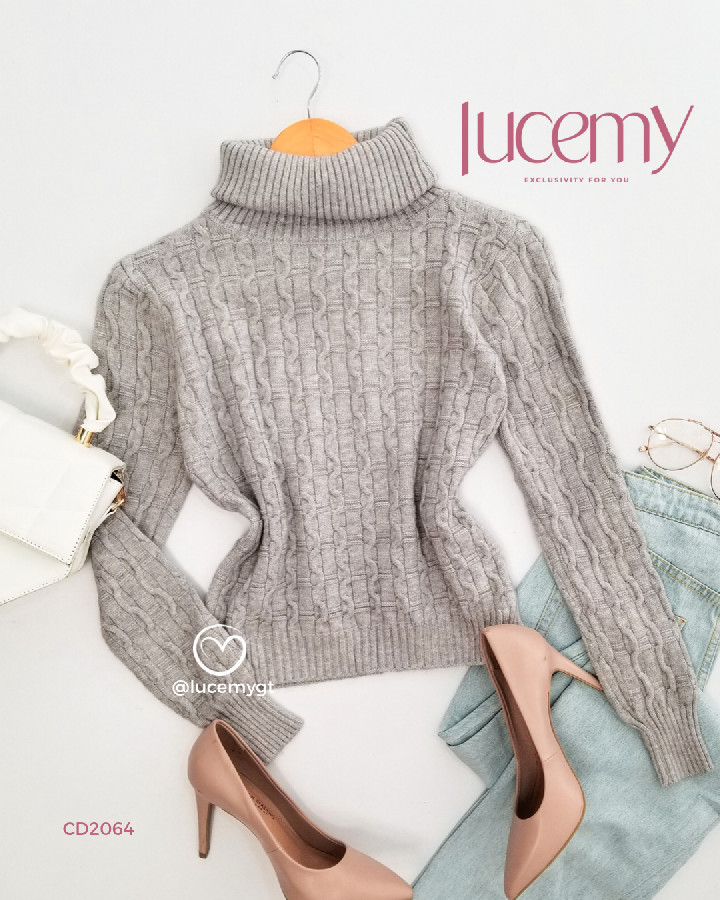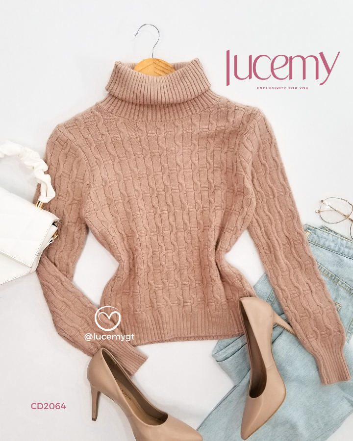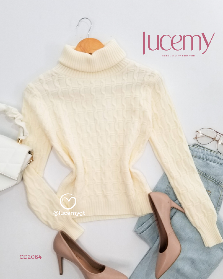 Descripción: Suéter Liviano, cuello alto, manga larga, textura de hondas